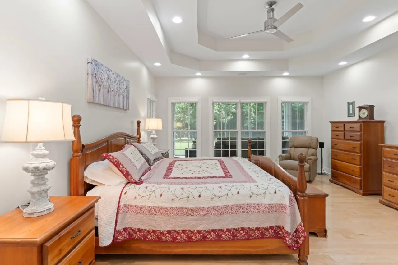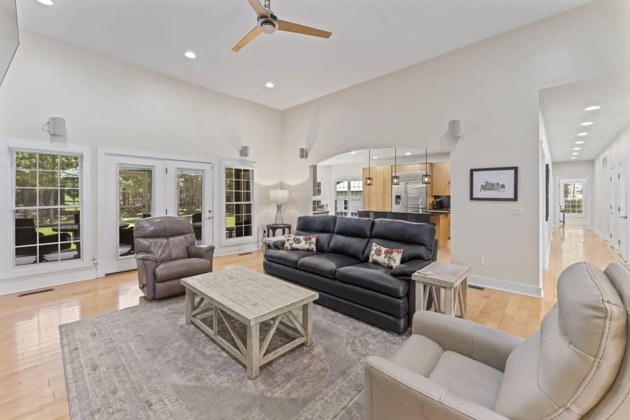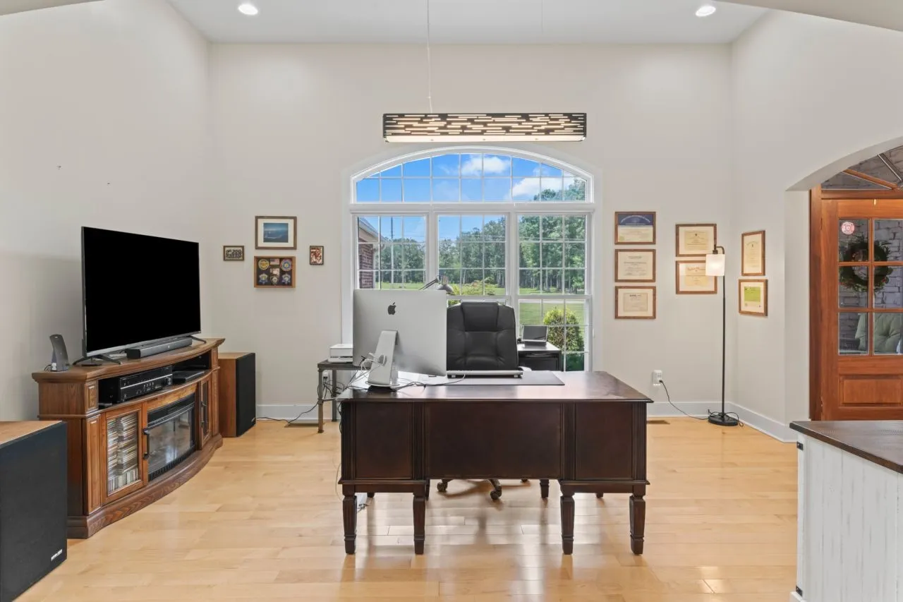 Top-Quality custom built home on 5.19 acres with lush privacy. This stunning home has the perfect floor plan with three bedrooms (including the spacious Primary Bedroom) on the main level. Beautiful maple hardwood floors. Chief kitchen is ideal with high-end Monogram appliances, granite counter tops, custom maple cabinetry and extra large walk-in pantry. Primary suite is complete with enormous 8×24 walk-in closet and primary bathroom spa feel. Current owners added screened-in porch and a heated two-car garage valued at $53,100. Room for all your needs, a 30×30 detached garage. Kitchen refrigerator, washer and dryer can remain. This home is top of the line throughout, with whole home surge protector, encapsulated crawl space with dehumidifier, security system with six cameras and spray foam insulation. Enjoy year round living within 9 miles to Tim Fords Lake.