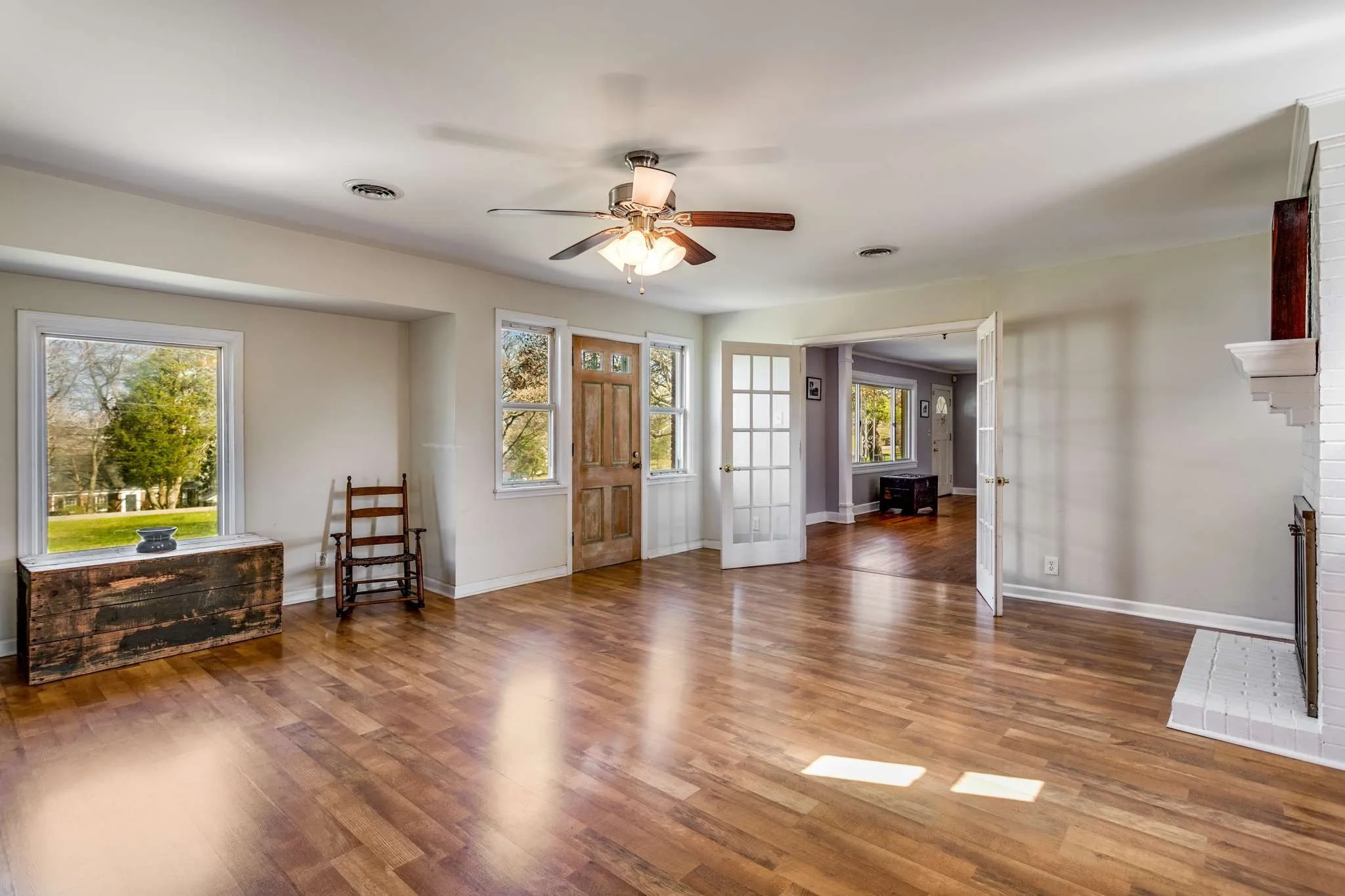 Beautiful 3-bedroom, 2-bath ranch located on a quiet street in Inglewood. Situated on a flat 0.52-acre lot with a large, fully fenced backyard and beautiful views of the Opryland Hotel across the river. Hardwood floors throughout have been recently sanded and refinished, with original hardwood also under the new kitchen flooring. Additional highlights include two carports, a covered front porch, a generous laundry room, and a floored attic that offers potential for future expansion or conversion. The oversized lot makes it easy to add a garage, pool, or home addition, offering flexibility for future plans. Interior is freshly painted in neutral tones. Walk to Shelby Bottoms Greenway, Airport Park and enjoy nearby Riverside Village restaurants and shops. Convenient access to Briley Parkway, Downtown Nashville, and major interstates. Zoned for Dan Mills Elementary. Home is being sold as-is. Fireplace is not warranted. Street is high on a bluff overlooking the river. Buyer and buyer’s agent to verify all information. MLS data is not guaranteed and should be independently verified.