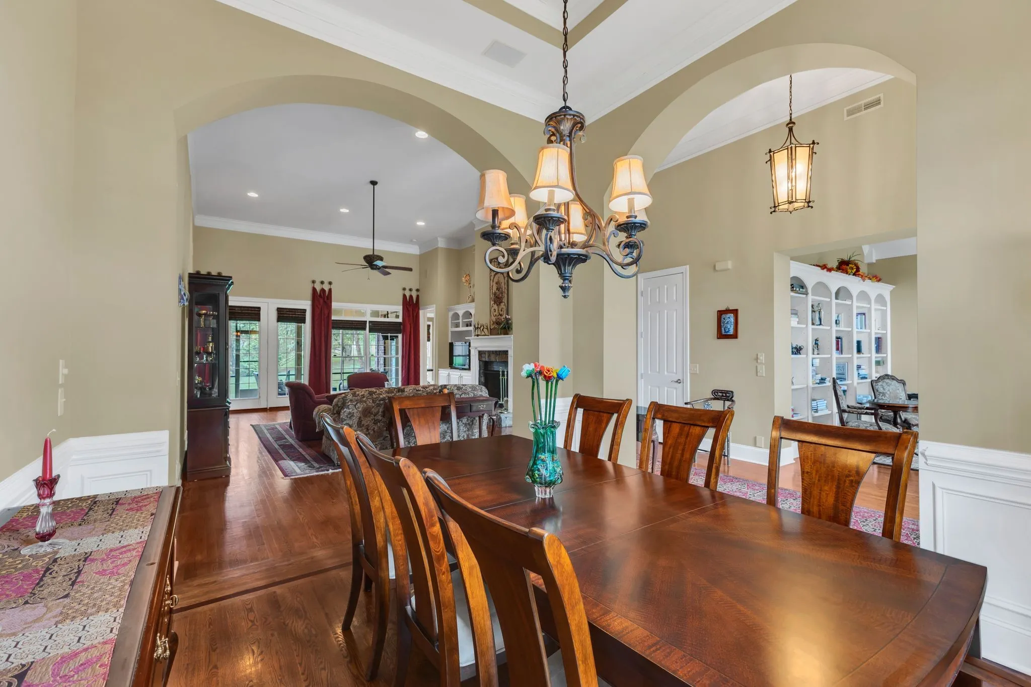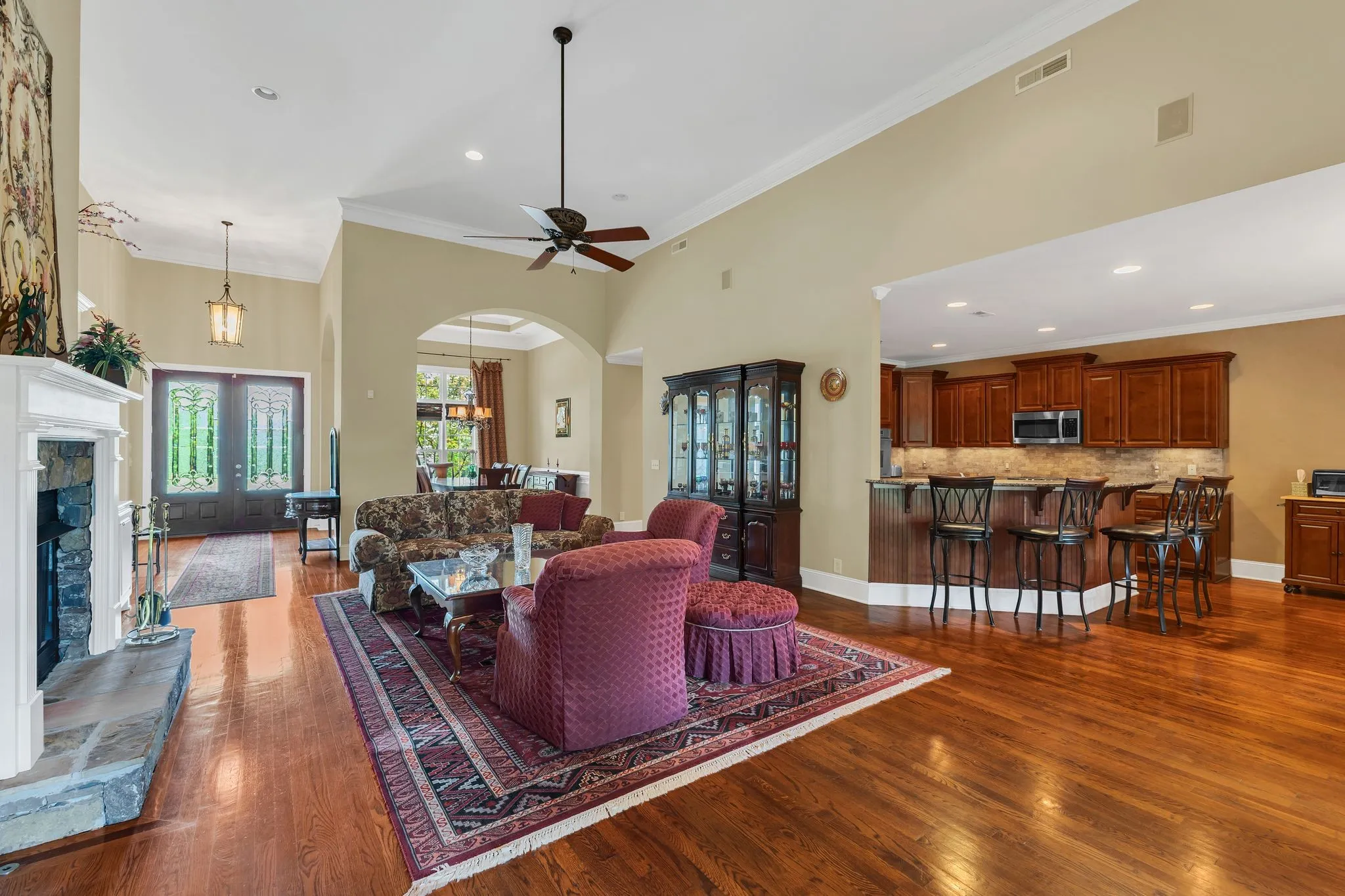 Interior Features Open Floorplan, Walk-In Closet(s), High Ceilings, Built-in Features, Pantry, Wet Bar, Entrance Foyer, Bookcases, Ceiling Fan(s), Central Vacuum, Extra Closets