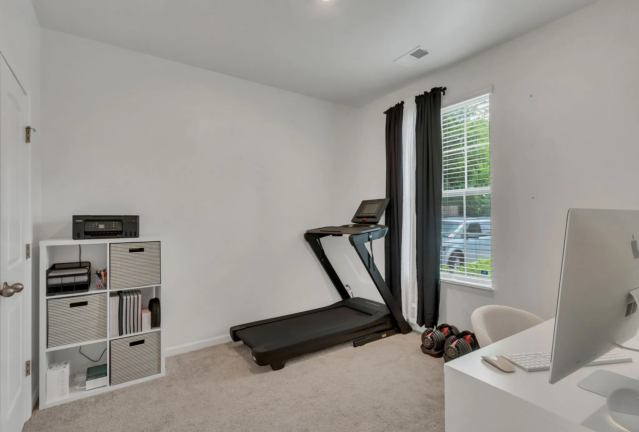 One bedroom is conveniently located on the main level alongside a powder bath—perfect for guests or a home office setup. The kitchen features granite countertops, a tiled backsplash, and modern fixtures, opening to a spacious living area and private covered patio. All appliances to stay. Upstairs, you’ll find two additional bedrooms, including a generously sized primary suite with dual closets and an en-suite bath. A second full bathroom provides flexibility for family or guests.