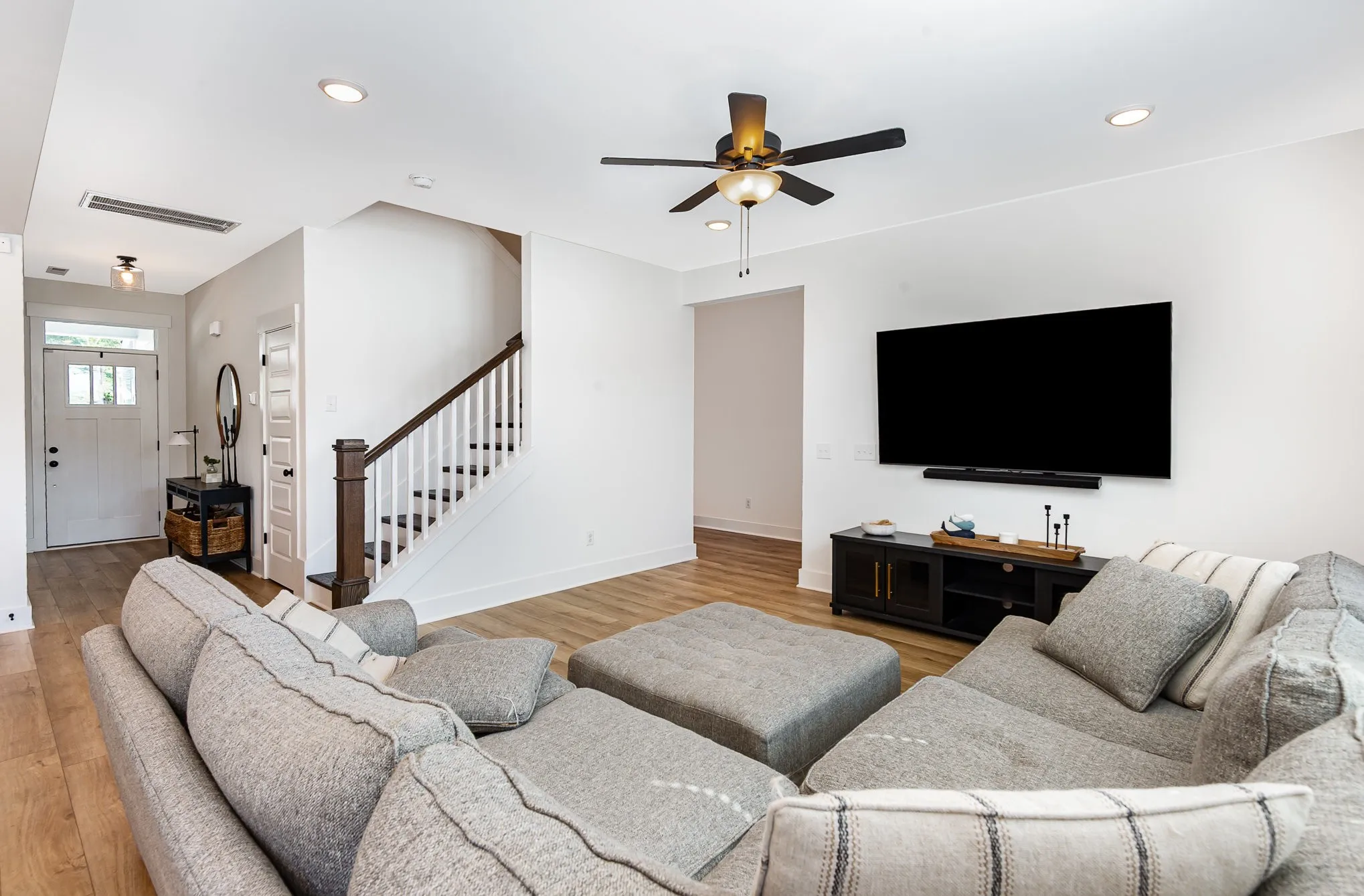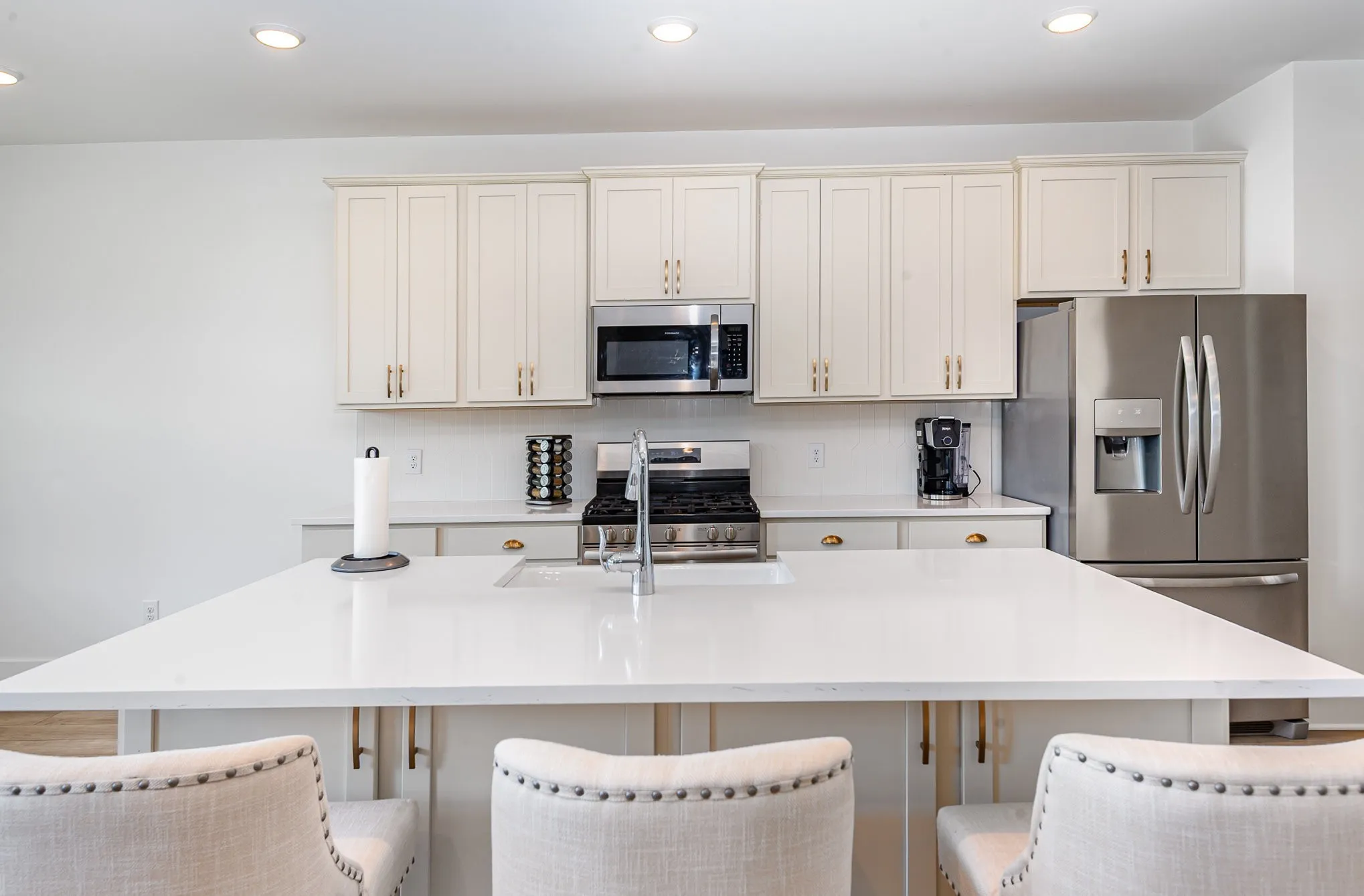 Welcome home to this beautiful 4 bedroom, 3 bath modern home in the sought-after Carellton subdivision, zoned for all Liberty Creek schools. Step inside to an open and airy layout with recessed lighting throughout. The spacious living room flows into the eat-in kitchen, featuring a large island with breakfast bar seating, a tile backsplash, and a walk-in pantry. Off the foyer, the formal dining room with wainscoting is perfect for gatherings. A guest suite is conveniently located on the main floor, ideal for visitors or a home office. Upstairs, you’ll find a generous primary suite with a walk-in closet and a bright bathroom with double vanities—alongside a large laundry room with plenty of space for storage and organization.