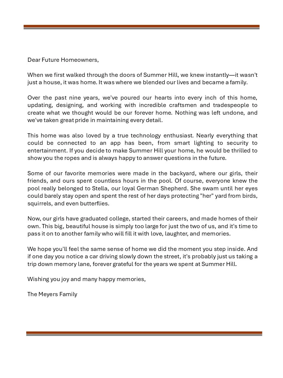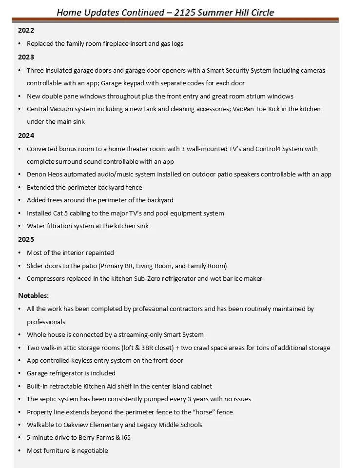 "LongDescription" => "List of the many updates made to the home"