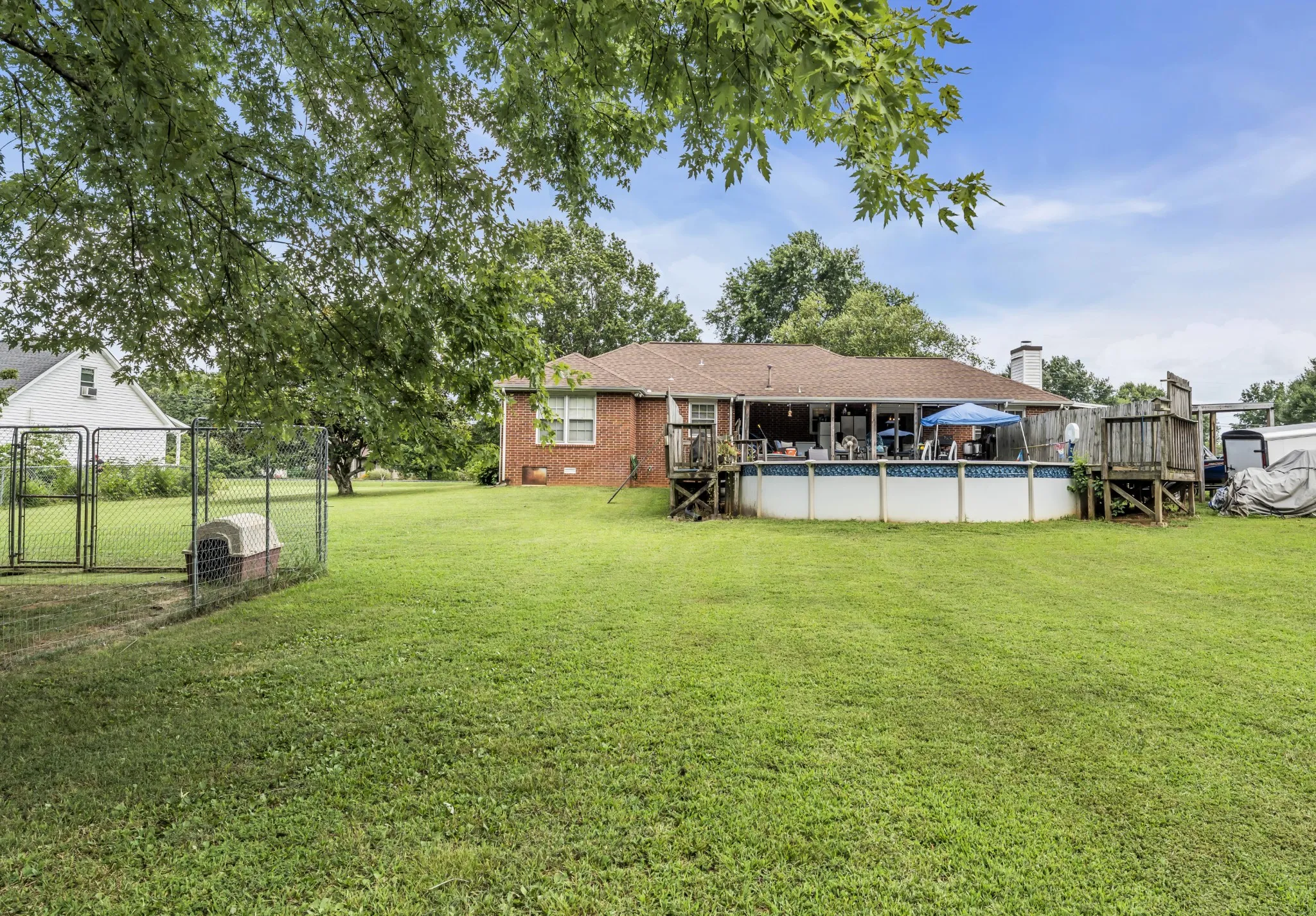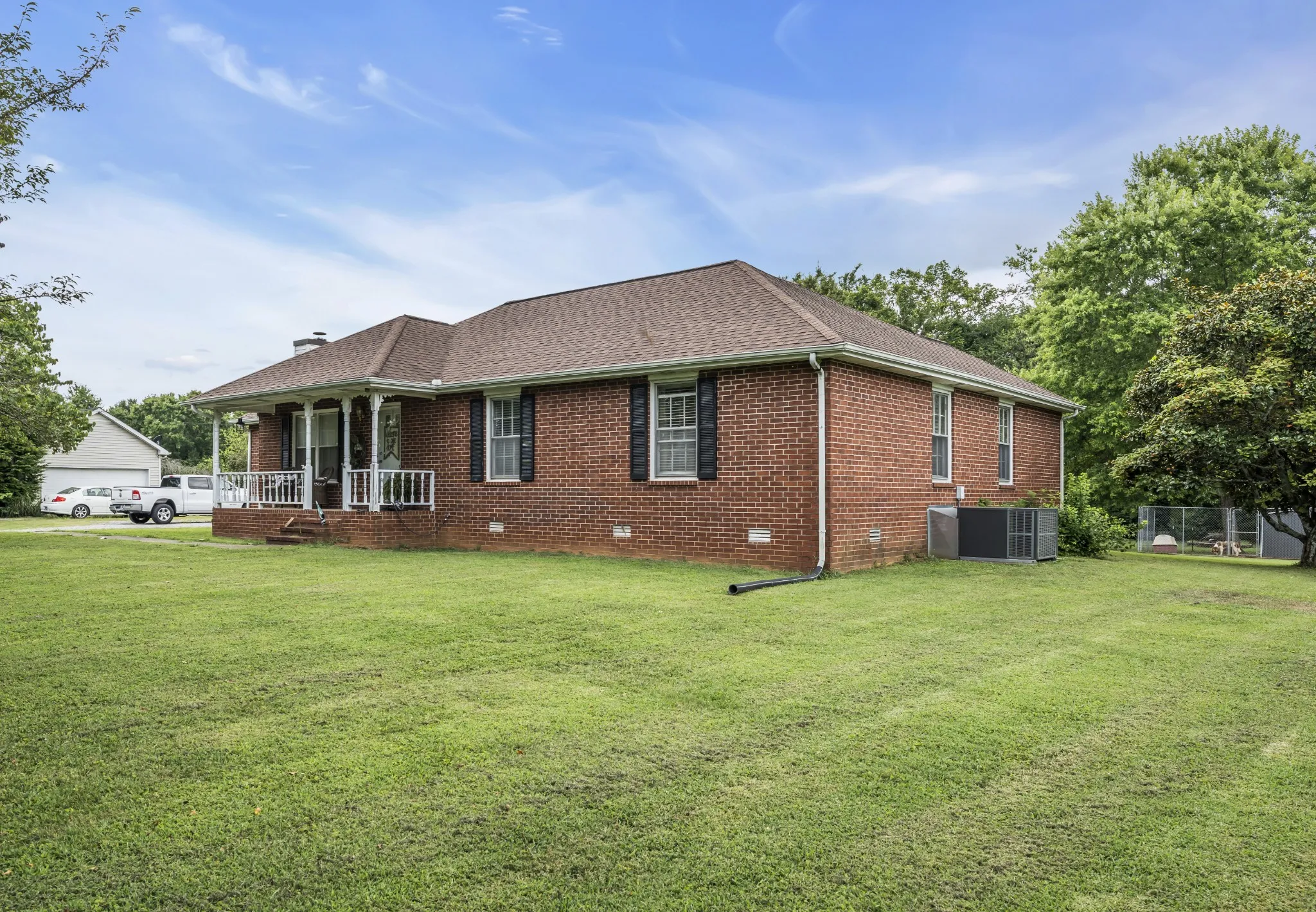 Nestled just 10 minutes from Murfreesboro, this all-brick ranch offers over 1900 square feet of living space, complete with three bedrooms and two bathrooms. The home features eat in kitchen with breakfast bar, living room and additional family room with a warm wood-burning fireplace that would be prefect for family gatherings or a cozy night in. The primary bedroom boasts an extra spacious walk-in closet, trey ceiling and dual sink vanity in the primary bathroom. Nice sized walk-in laundry room. The nearly one-acre sized lot provides a private peaceful retreat, complete with a storage building, covered front porch, and covered back deck, plus an above-ground pool overlooking the woods, and fenced yard. Ideally located, this property is within a 10-minute radius of the zoned Elementary, Middle, and High Schools, while Nashville International Airport and the city of Nashville are just a 40-minute drive away. No HOA fees or city taxes. Seller offering $5000 towards flooring allowance for buyer. Roof 2 years old, HVAC put in July 2025, water heater 2 years old.