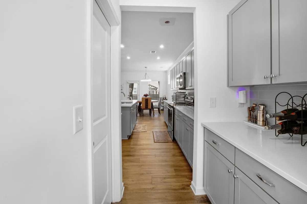 The chef’s kitchen is a dream come true, complete with a beautiful butler’s pantry, upgraded stainless steel appliances and a generous island that invites friends and family to gather. Enjoy the convenience of a downstairs bedroom with an adjoining full bathroom, perfect for guests or family members.