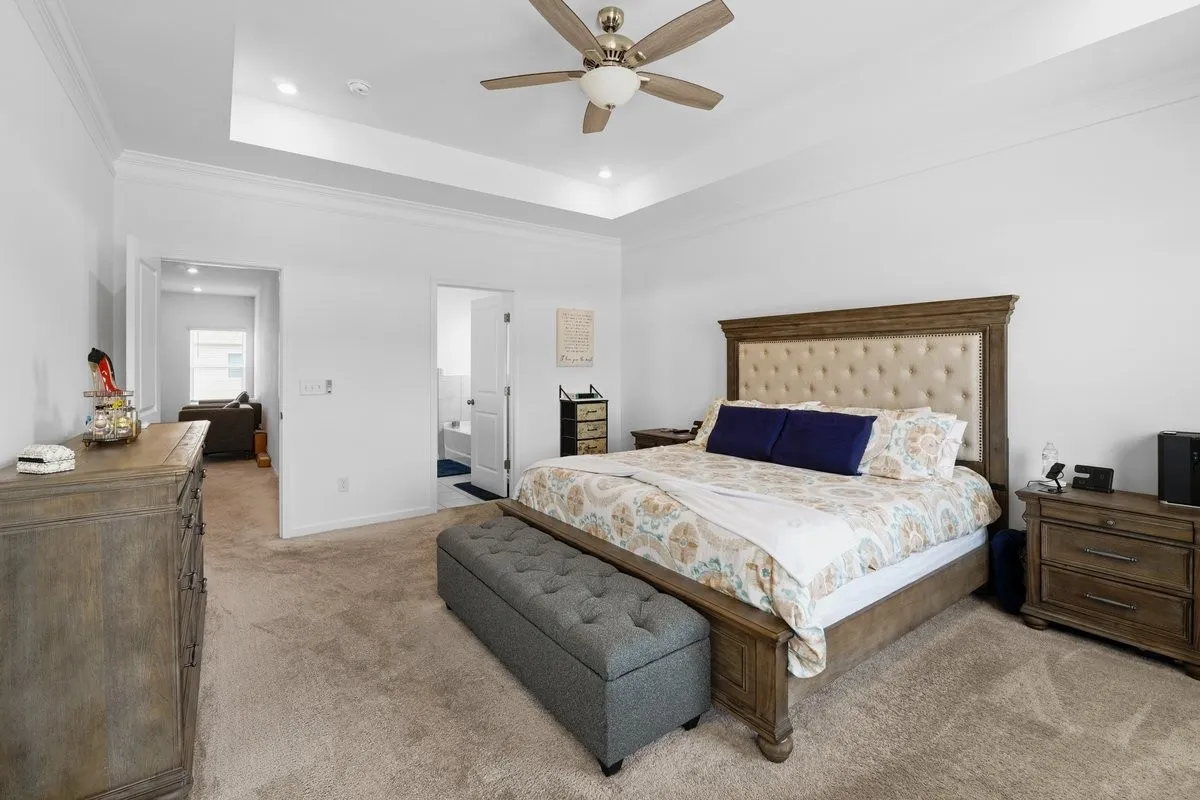 The extra-large mudroom provides ample storage, leading to a two-car garage equipped with an EV charger, ensuring your home is future-ready. Upstairs, you’ll find ample room for laundry, three additional bedrooms and loft all carpeted for comfort, including a luxurious master suite with double French doors. This versatile space can easily serve as a nursery, lounge area or a study.
