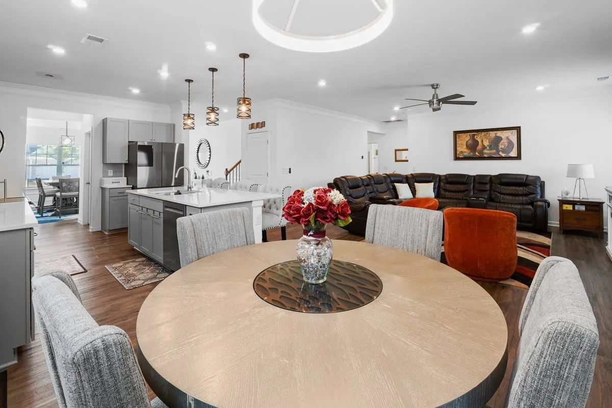 Step inside to a large entryway adorned with beautiful wainscoting, setting the tone for the quality throughout. Natural light floods the open living spaces, creating a warm and welcoming atmosphere. The heart of the home features a spacious living room for fun, laughter and gatherings.