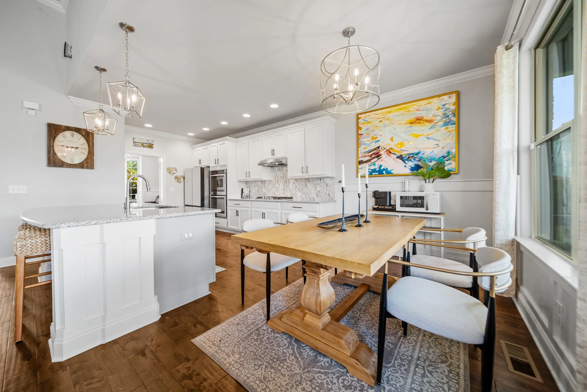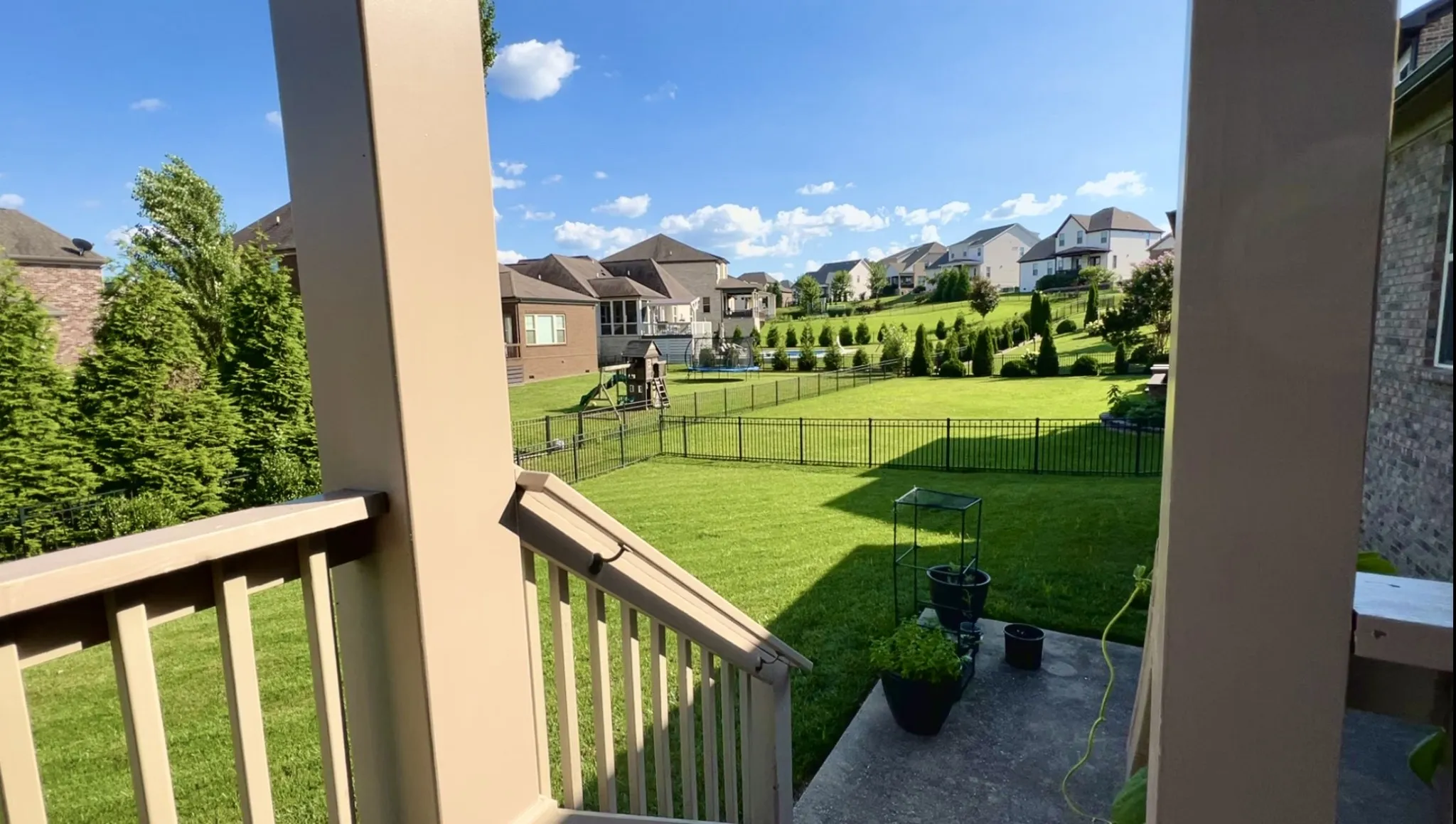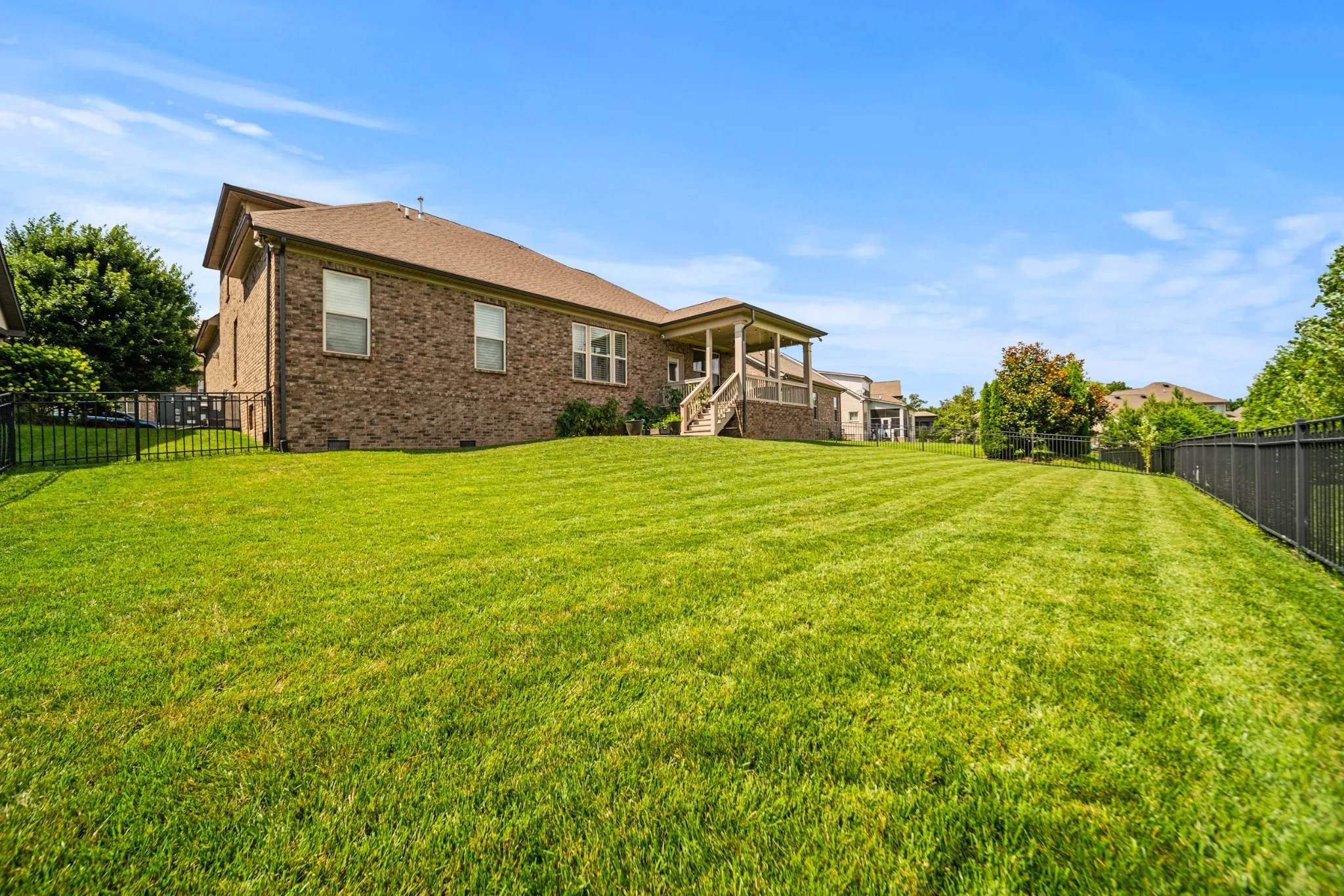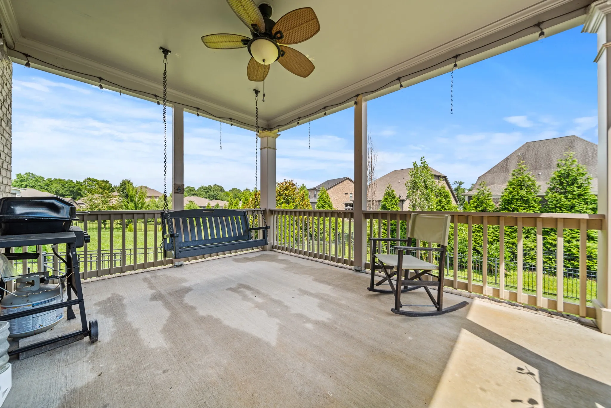 The heart of the home is the bright, expansive kitchen, featuring generous counter space, upgraded finishes, and seamless flow into the main living and dining areas. The privately fenced-in backyard provides an oasis for play, entertaining, or relaxing evenings on the porch swing. (Current owners leveled the lot for what could be your future pool or playground!) The lush, green lawn is kept soft and vibrant thanks to the built-in IRRIGATION system. One of the standout features is the versatile bonus room, perfect for a playroom, home office, or your dream private movie theater.\n
