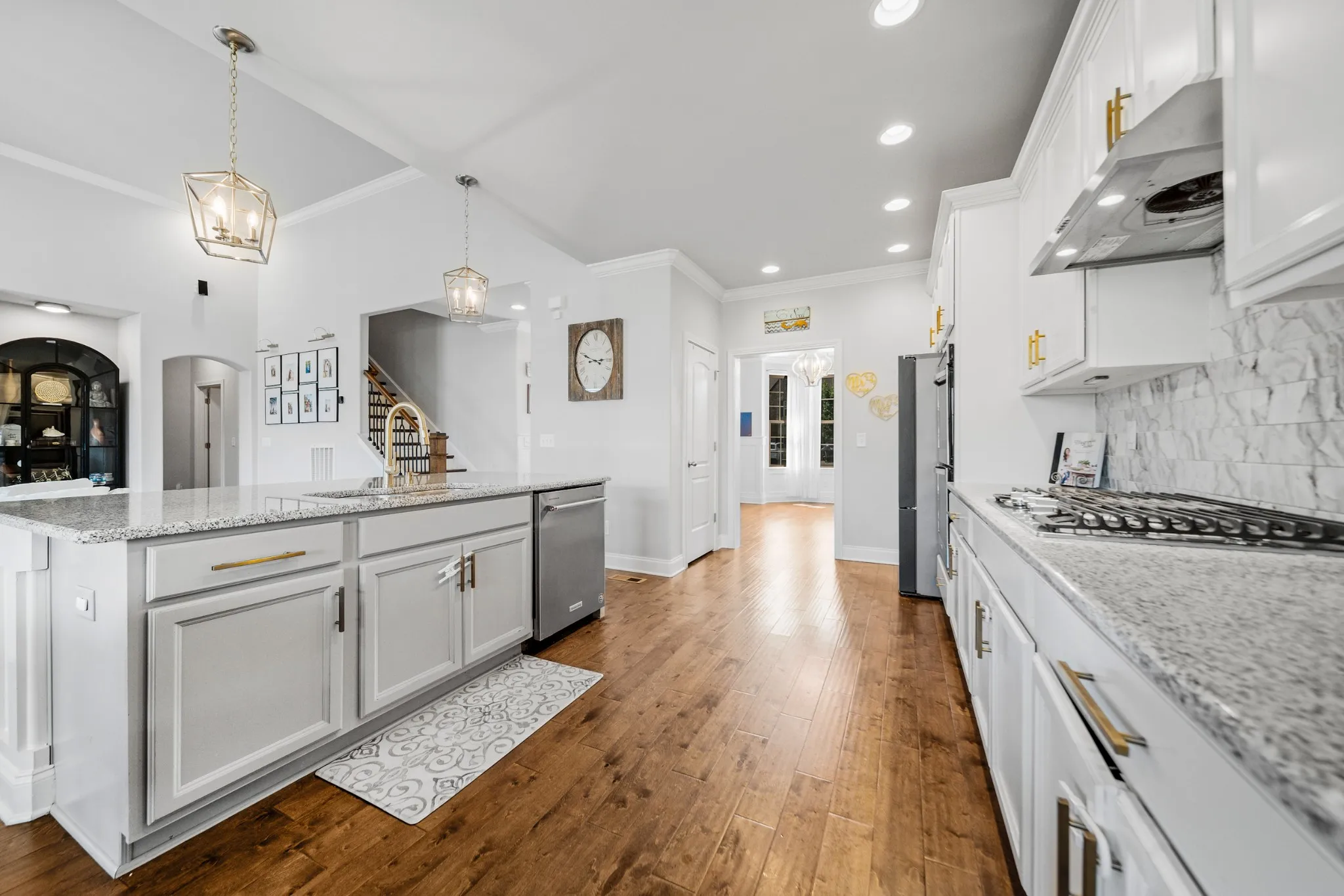This home is loaded with multiple builder upgrades—including upgraded flooring, tray ceilings, enhanced lighting, widened kitchen space, and trim work that elevate the space throughout. An upgraded HVAC system provides modern efficiency and peace of mind. \n