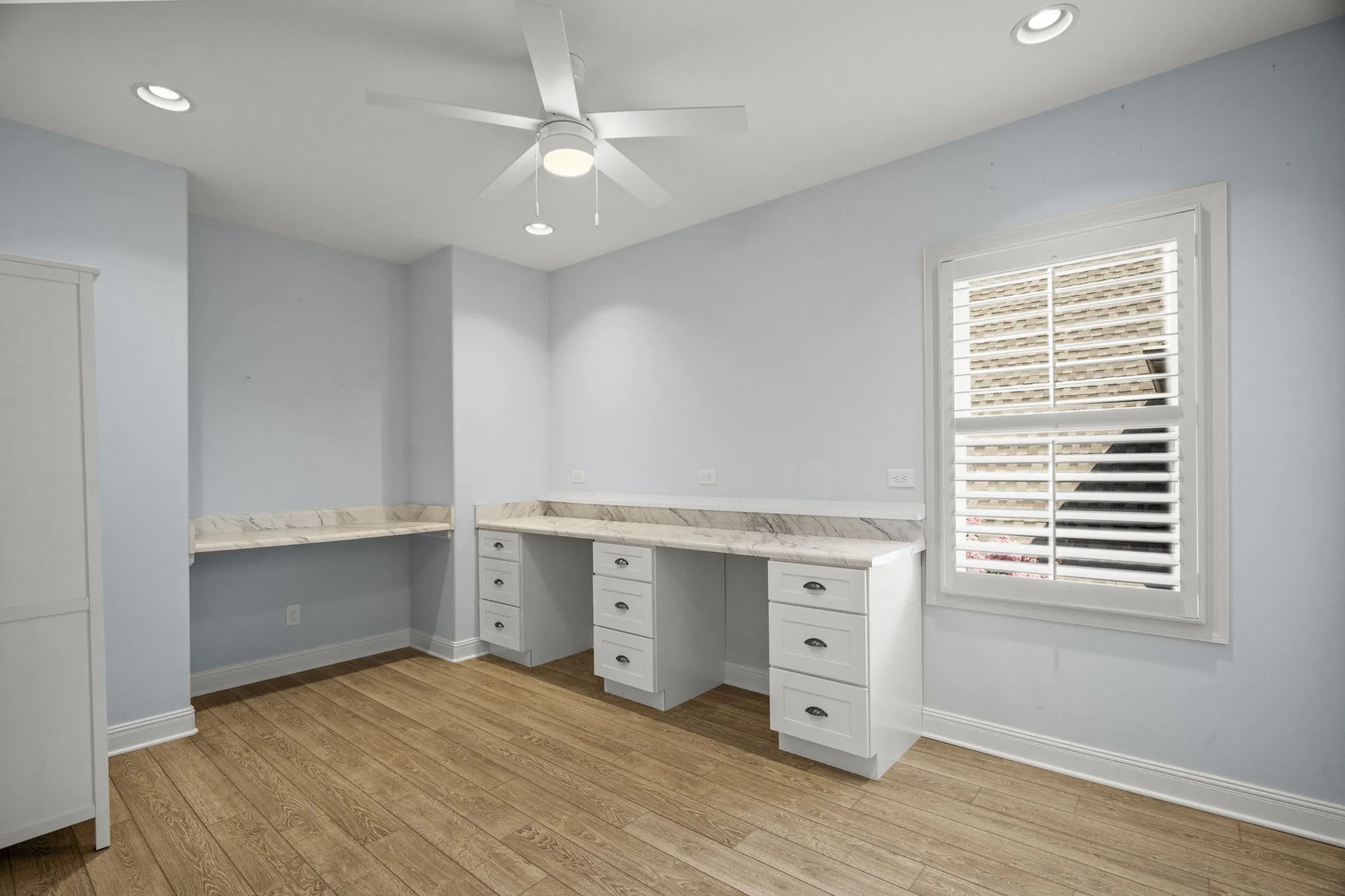 Retreat to the luxurious primary suite with a massive walk-in closet, complete with washer/dryer hookups, and a spa-like ensuite bath. Additional features include a private office, hobby room, and a versatile bonus room with mini fridge, built-in cabinets, and counter space.