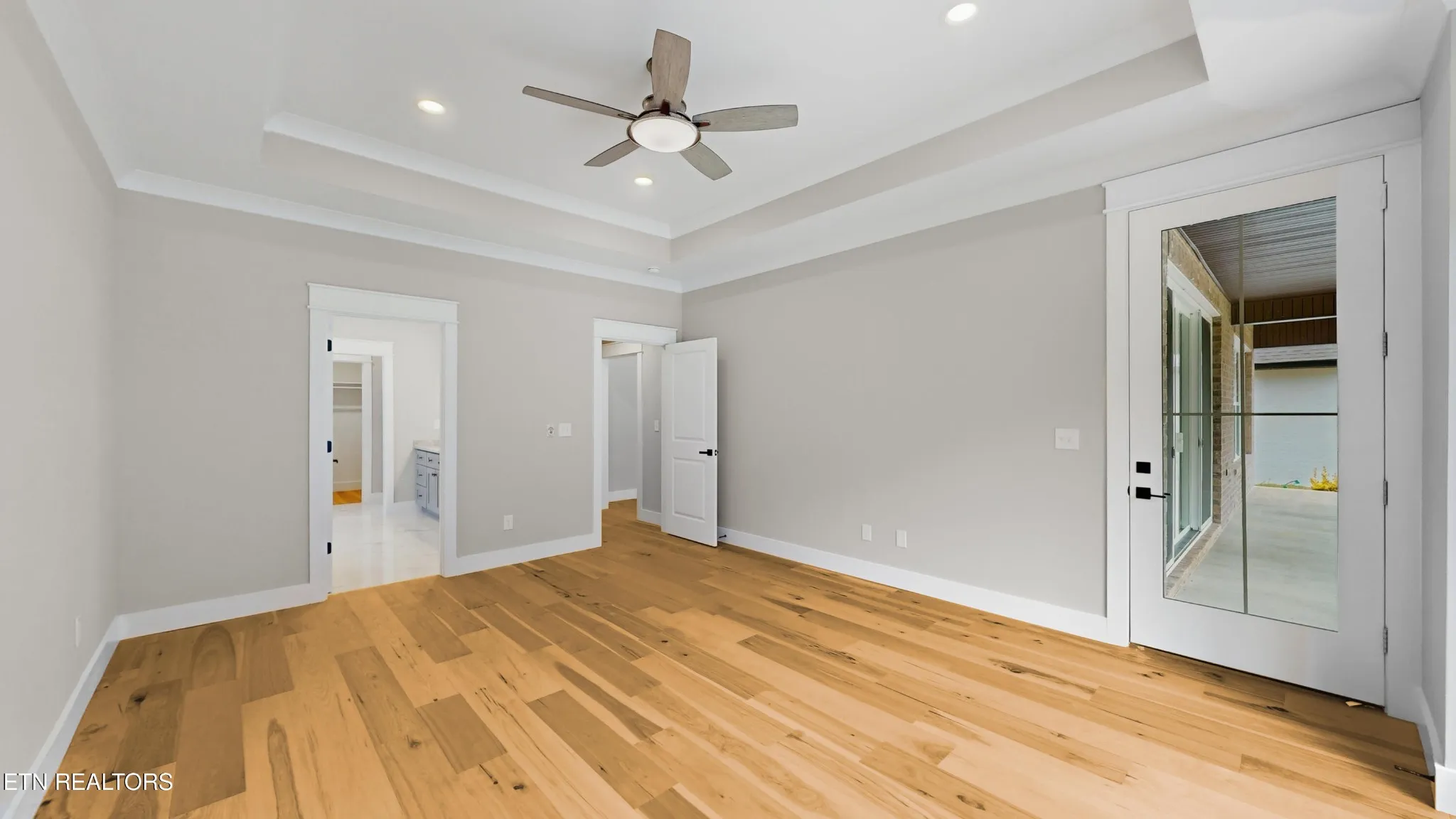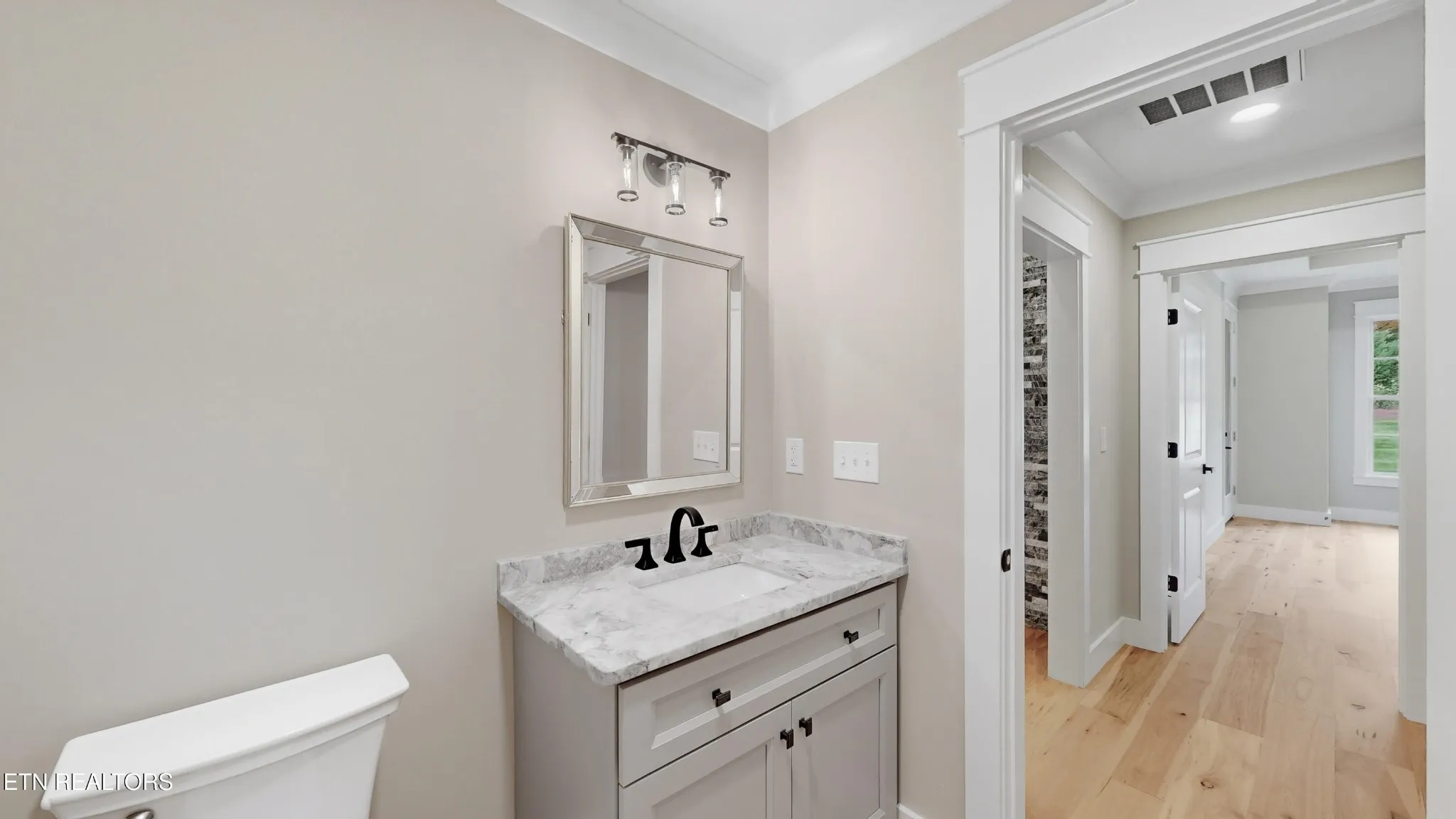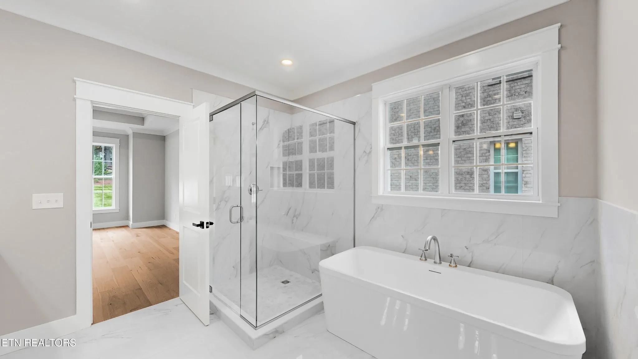 From the moment you step through the front door, you’ll notice the difference. Warm hardwood and tile floors stretch across the entire home, and detailed crown molding adds an elegant touch to every space. The open layout flows effortlessly, perfect for family gatherings or quiet evenings at home. With a main-level primary suite and a second bedroom with its own bath, it’s ideal for guests or multi-generational living.