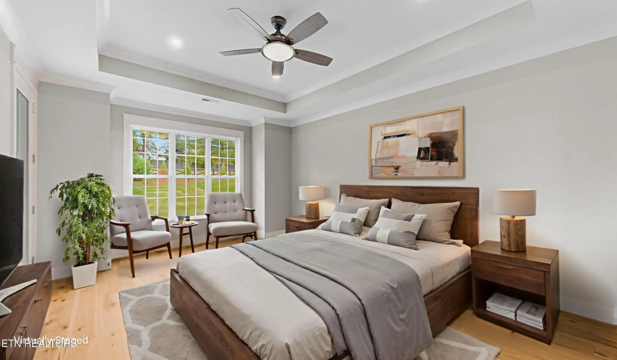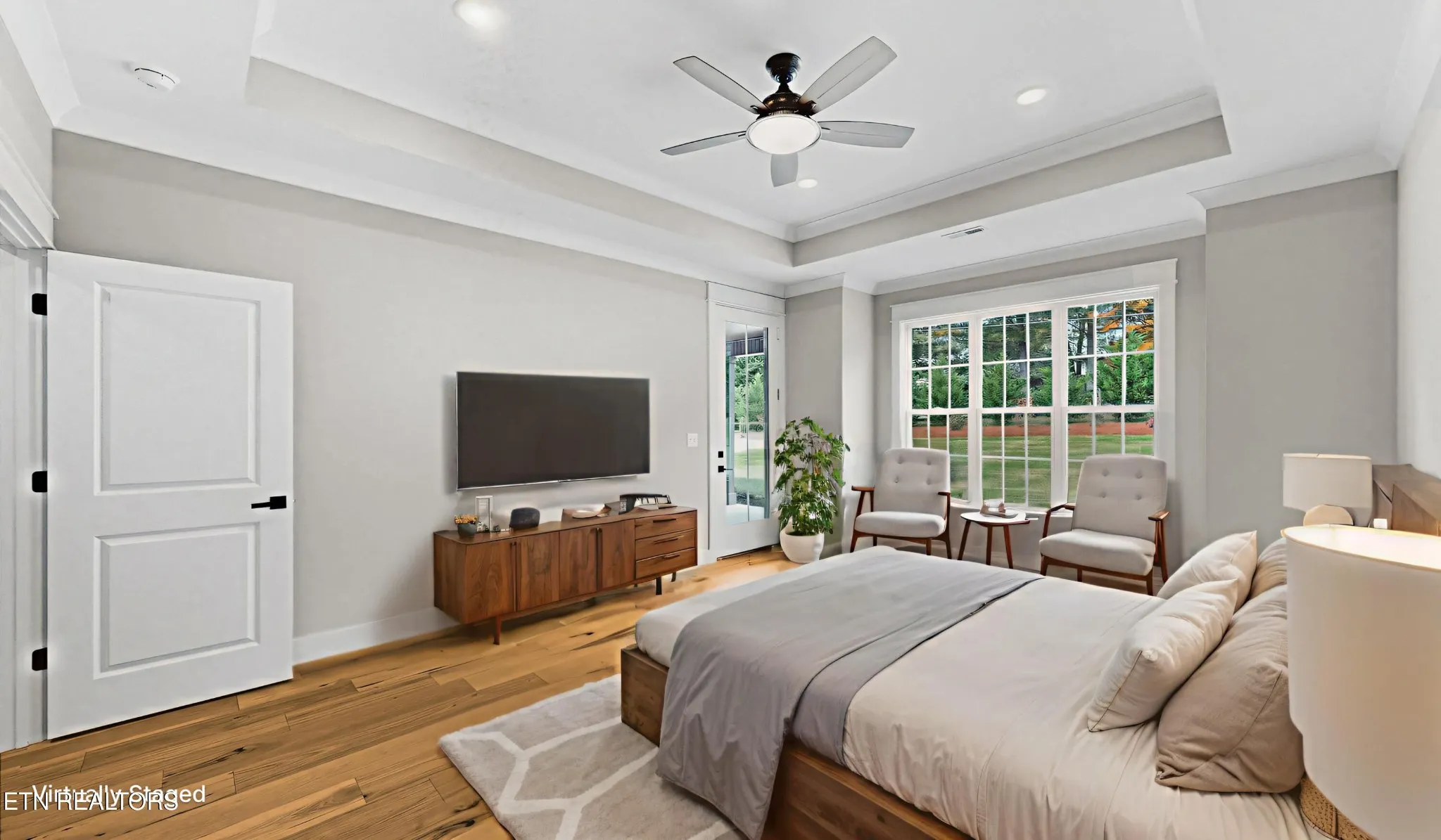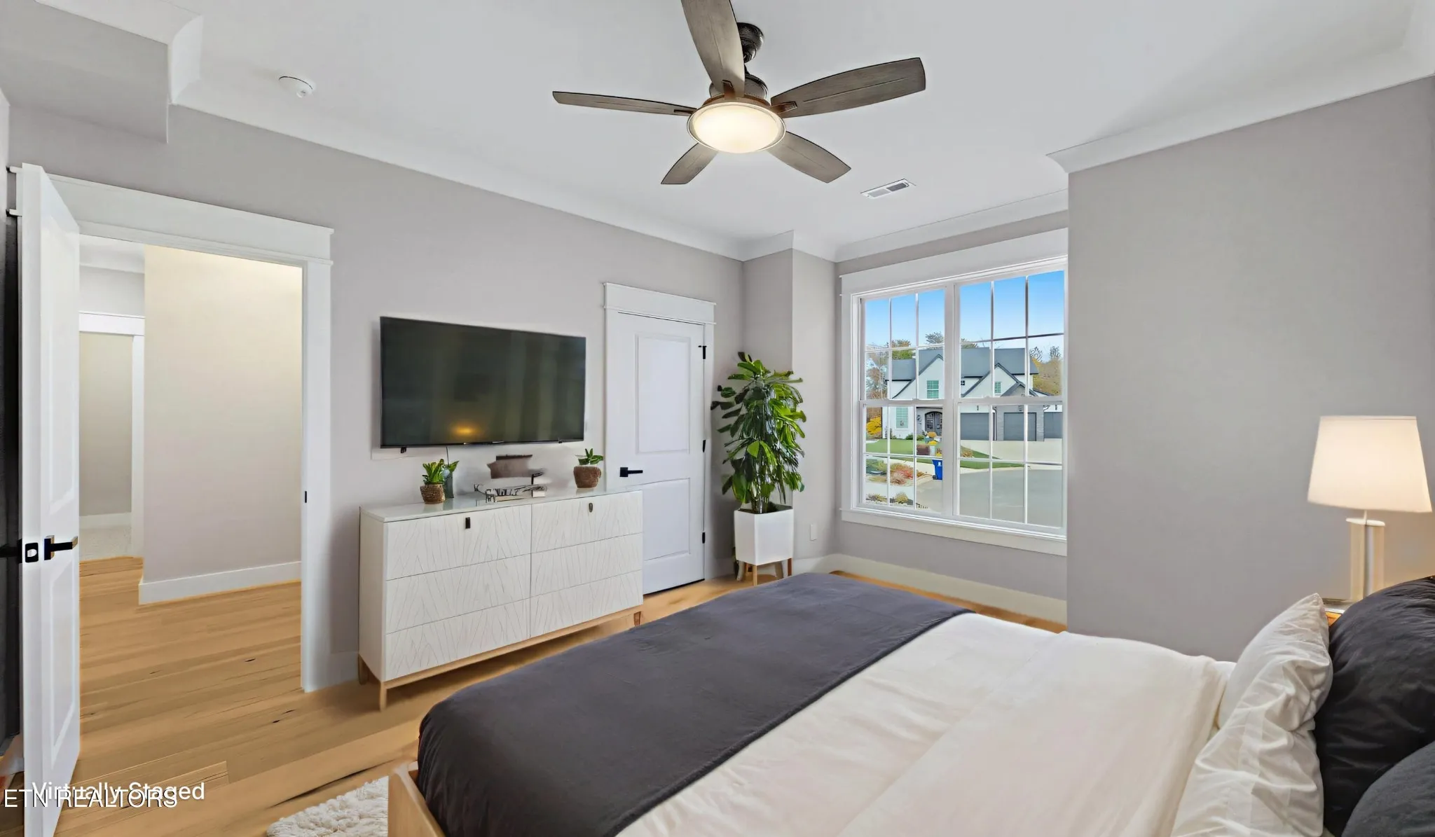 From the moment you step through the front door, you’ll notice the difference. Warm hardwood and tile floors stretch across the entire home, and detailed crown molding adds an elegant touch to every space. The open layout flows effortlessly, perfect for family gatherings or quiet evenings at home. With a main-level primary suite and a second bedroom with its own bath, it’s ideal for guests or multi-generational living.