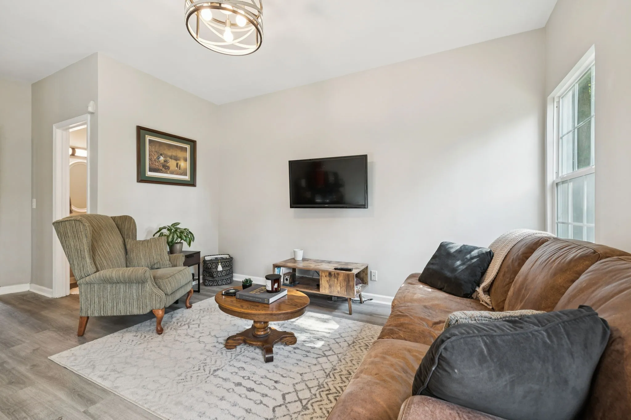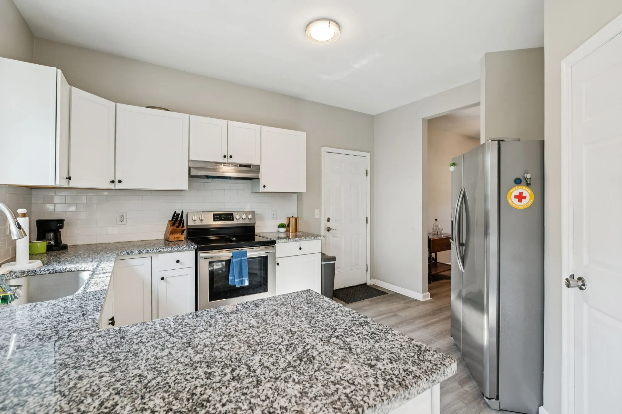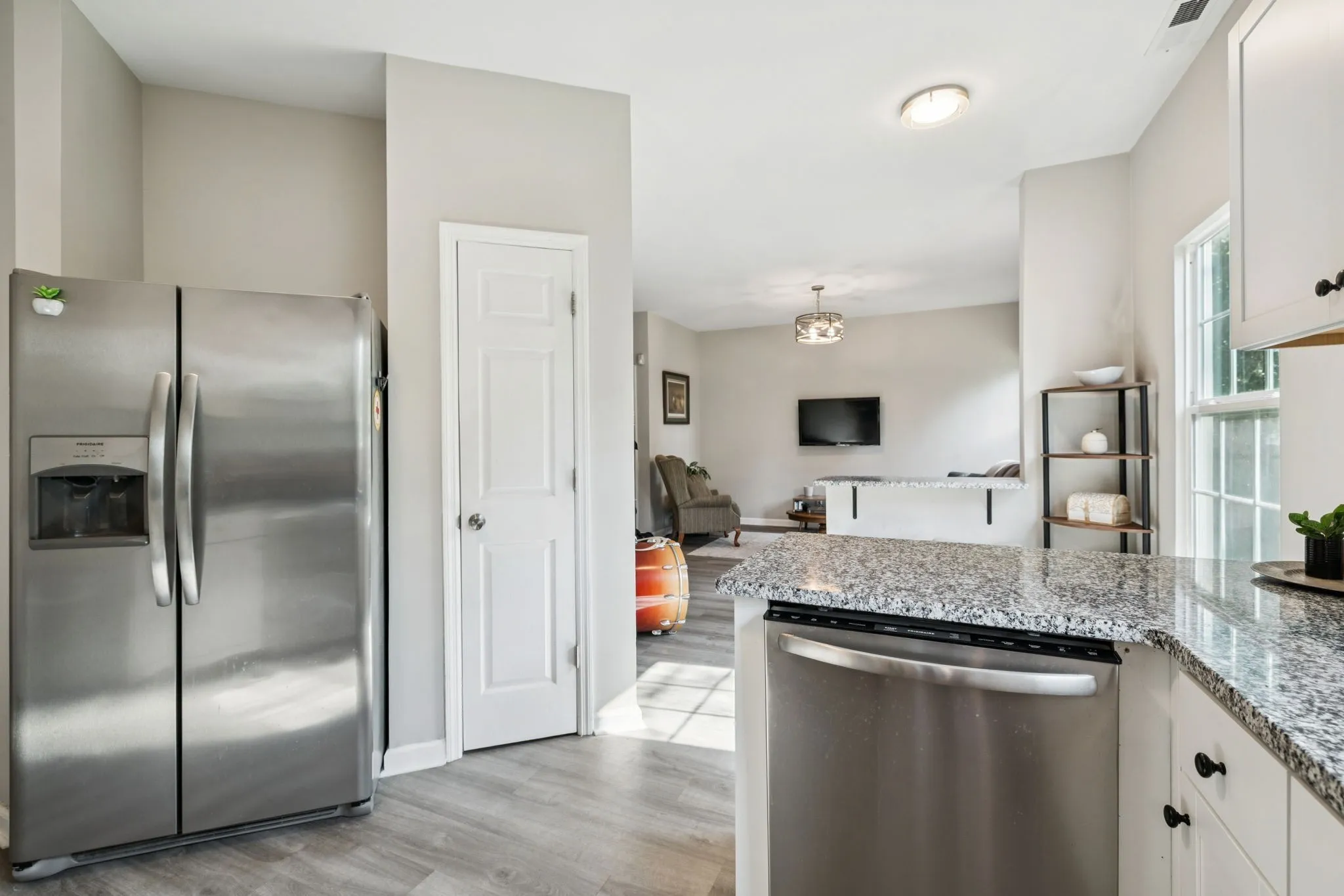 Step into this recently updated residence featuring a modernized kitchen with fresh cabinetry, granite countertops, and appliances. The entire interior boasts new paint and flooring, complemented by upgraded plumbing and electrical fixtures. The exterior showcases a painted brick façade, along with all-new windows and doors. A versatile main floor space is ideal for a home office or playroom. The spacious driveway offers ample parking capacity for several vehicles. Conveniently located laundry facilities are on the second floor, and the primary bedroom includes a sizable walk-in closet for added storage.