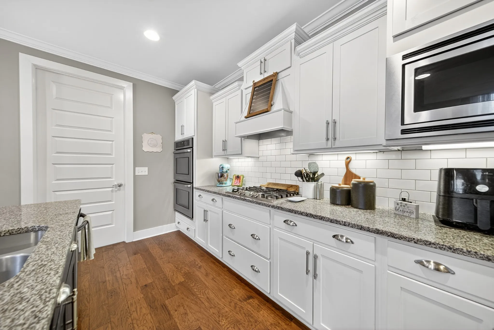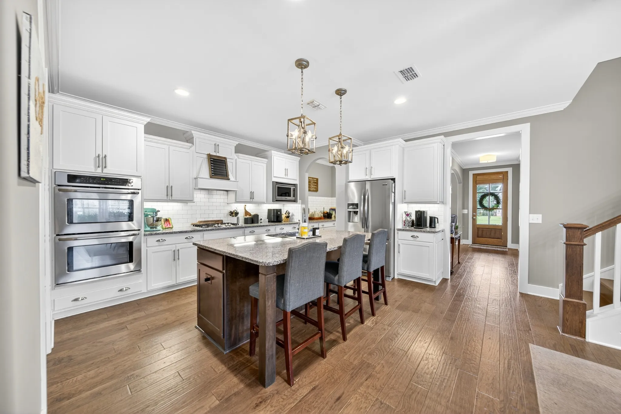 Multi- million dollar lake front – golf course community with amazing Marina being built. Spacious, this 5-bedroom, 4-bath home offers over 3,400 sq ft of stylish living. Features include a gourmet kitchen with granite counters, gas cooktop, and double oven, wood floors, a main-level primary suite, and a large upstairs bonus room. All bedrooms have ensuite bathrooms. Enjoy outdoor living on the covered screened inporch with the plus a patio in your fabulous very private backyard. 3 car side entry garage (lots of driveway parking). Located in the sought-after Foxland Harbor neighborhood with beautiful golf course views and zoned for much sought after award winning schools.