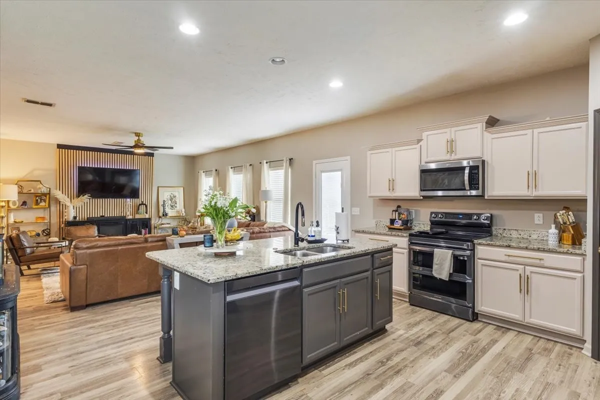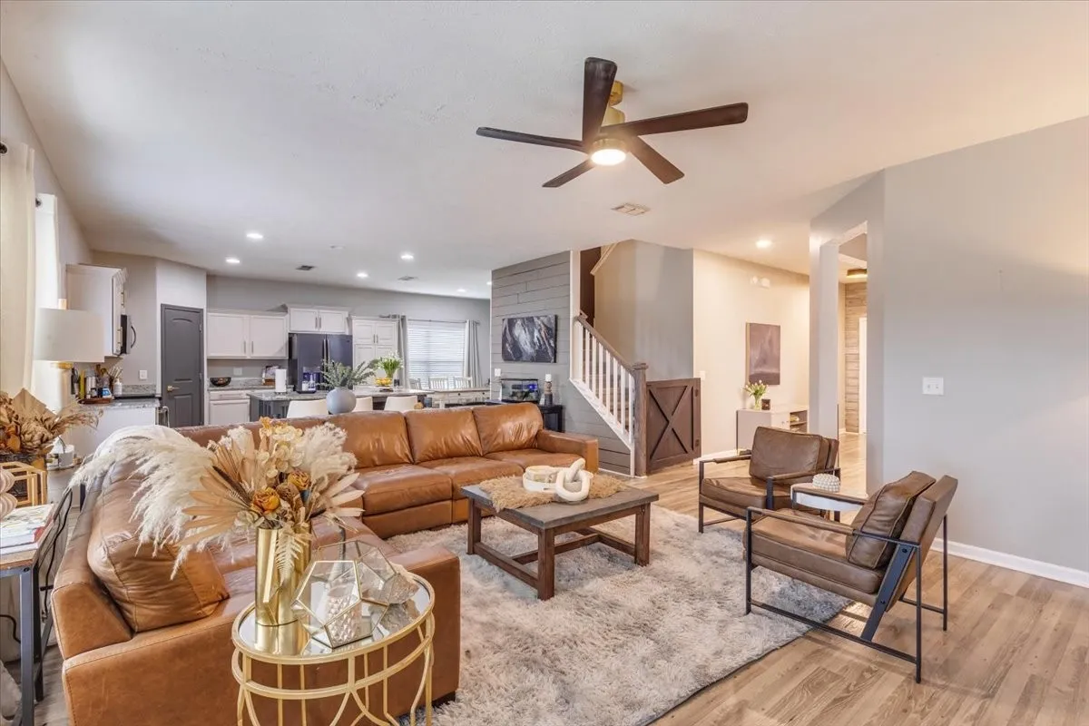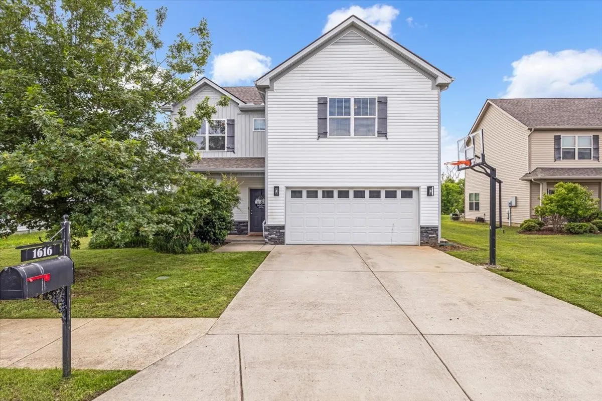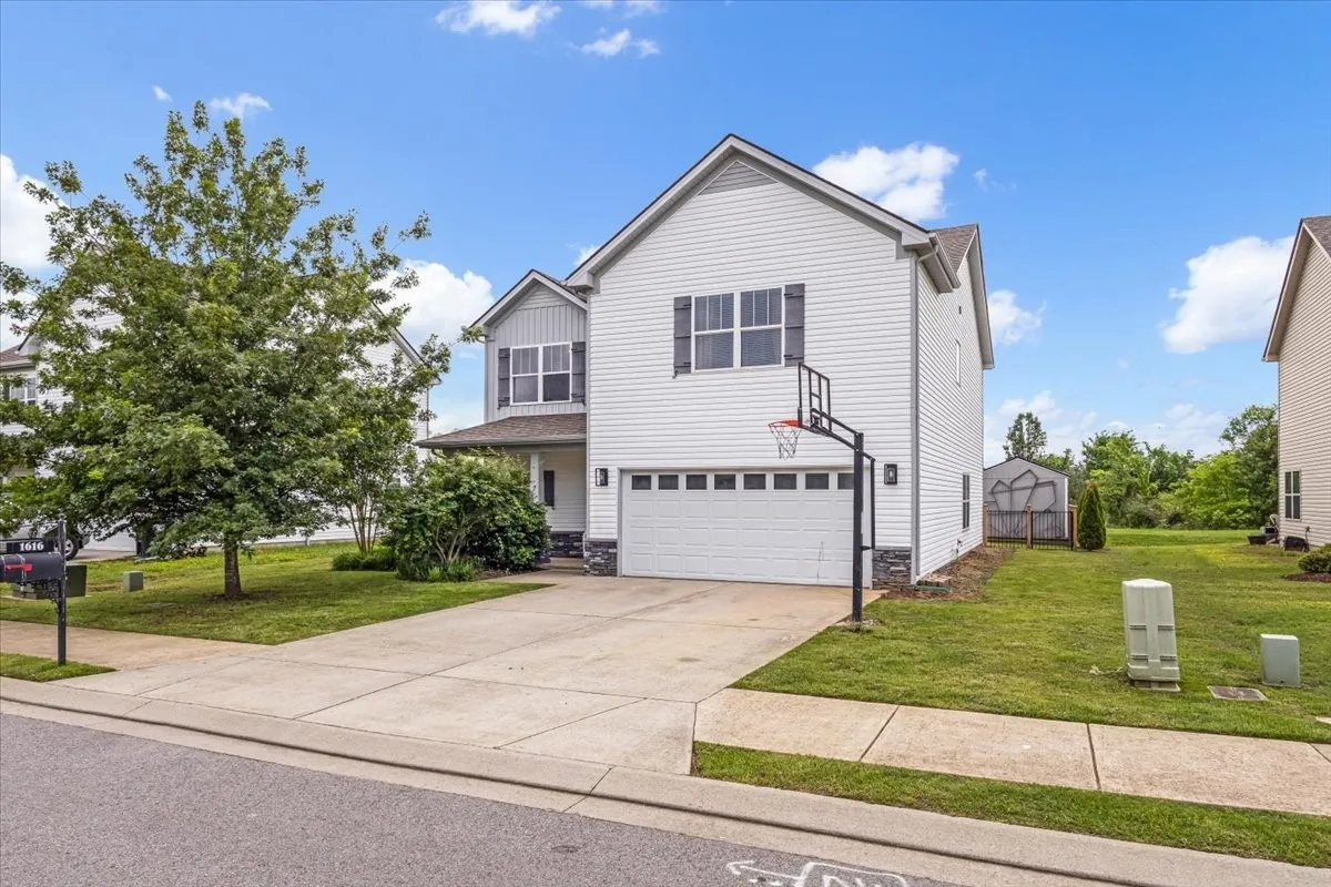Discover this beautiful home full of modern charm, stylish accent walls, and update lighting throughout. It’s perfectly situated on a kid-friendly cul-de-sac just minutes stores, shopping and I-24. Offering the largest floorplan in the neighborhood, this spacious layout features all bedrooms upstairs, plus a versatile bonus room currently used as a fifth bedroom. The kitchen is a chef’s dream with stainless steel appliances, granite countertops, and refinished cabinets with designer hardware. Need space for friends and family? Lots of dining area, formal can be used as a flex room/office. Have pets? There is a custom dog room featuring a sliding entry door. Step outside to your private backyard oasis—no rear neighbors, breathtaking sunset views, and a custom patio surrounded by decorative landscaping, modern fencing, and a back yard shed that is temperature controlled with electricity (potential she-shed or workshop). This home combines space, style, and convenience in one of the most desirable locations. All appliances to stay, including washer and dryer. Garage floor is complete with epoxy coating. Tour today!