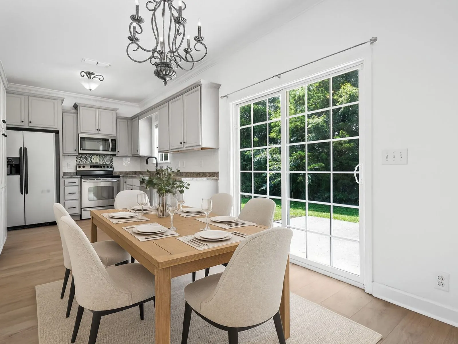 backyard views of a mature tree line providing privacy with no rear neighbors. Recently updated with a new HVAC system (2024) and