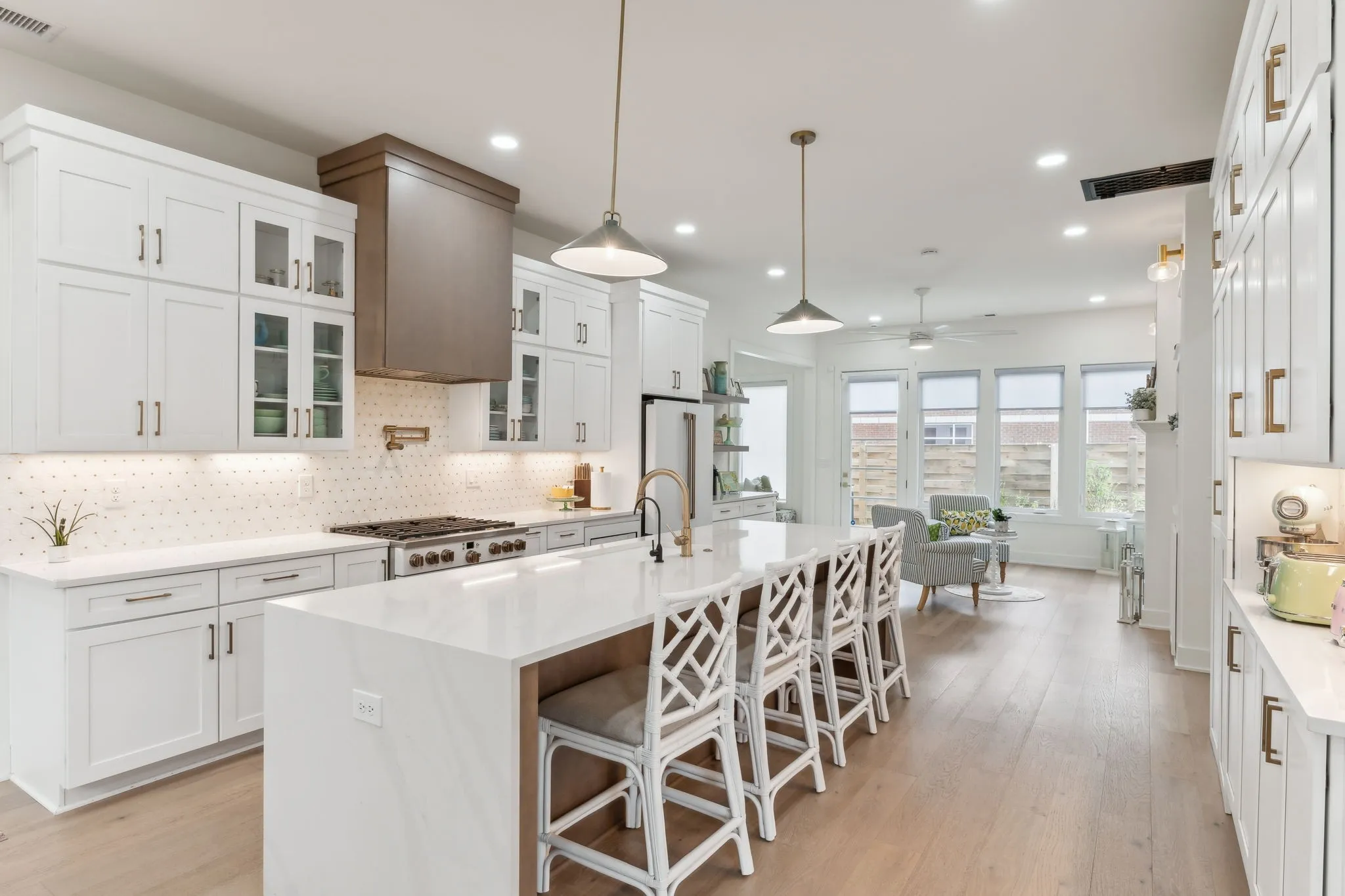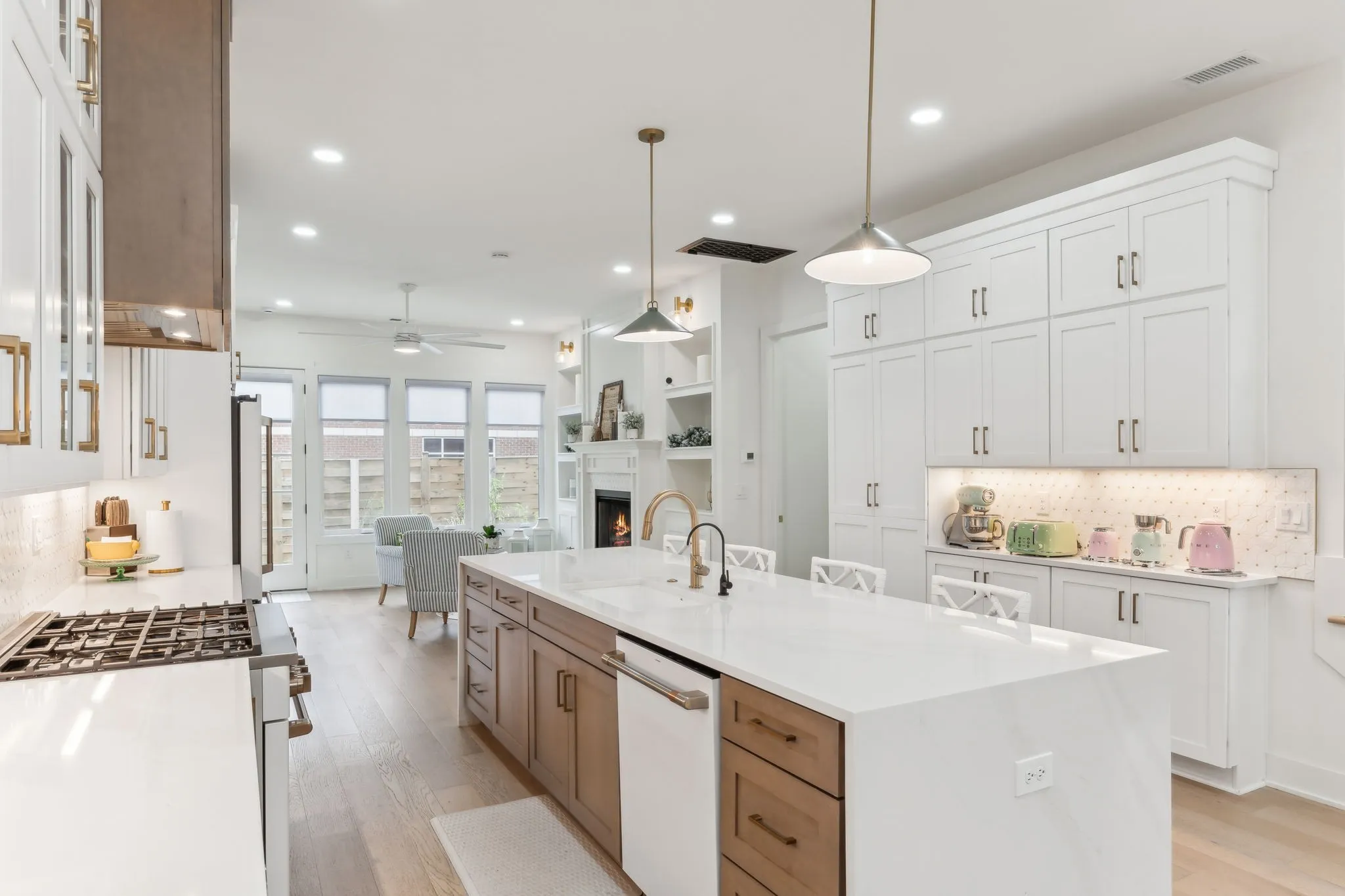 Welcome to this stunning 6-bedroom, 5-bathroom custom-built home, completed in 2024, just steps from downtown Franklin. With 4,360 sq ft of living space, this bright and airy two-story residence is designed for comfort and style, featuring abundant natural light throughout.The home includes a full attached apartment, perfect for multi-generational living. Inside, you’ll find spacious rooms, including a bonus playroom, media room, guest room, or office. Ample storage is provided with a large walk-in pantry and plentiful closet space.The chef’s kitchen is a standout, with a large island as its centerpiece. Enjoy the warmth of three fireplaces in the living and family rooms. The home is also equipped with modern, energy-efficient features like foam insulation in the attic and a tankless water heater. Situated on a fully fenced lot, the property offers front and back yards for outdoor relaxation. The location is ideal for those seeking to be within walking distance to the vibrant shops, restaurants, and attractions of historic downtown Franklin.This home offers luxury finishes, incredible space, and an unbeatable location.