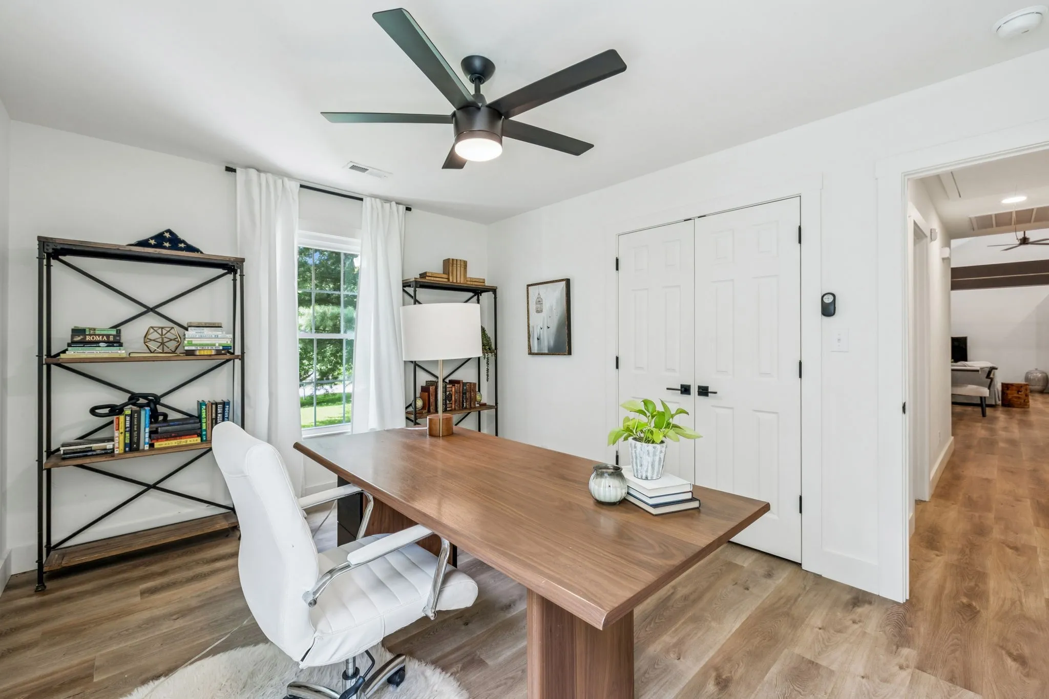 Interior Features Open Floorplan, High Ceilings, Kitchen Island, Ceiling Fan(s)