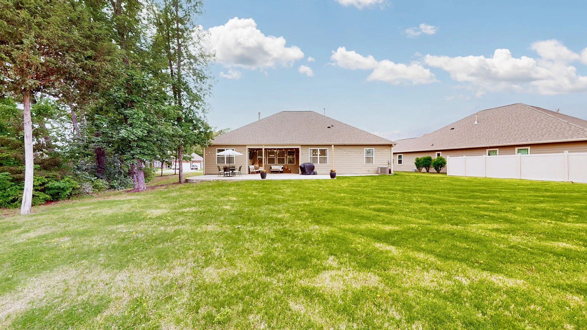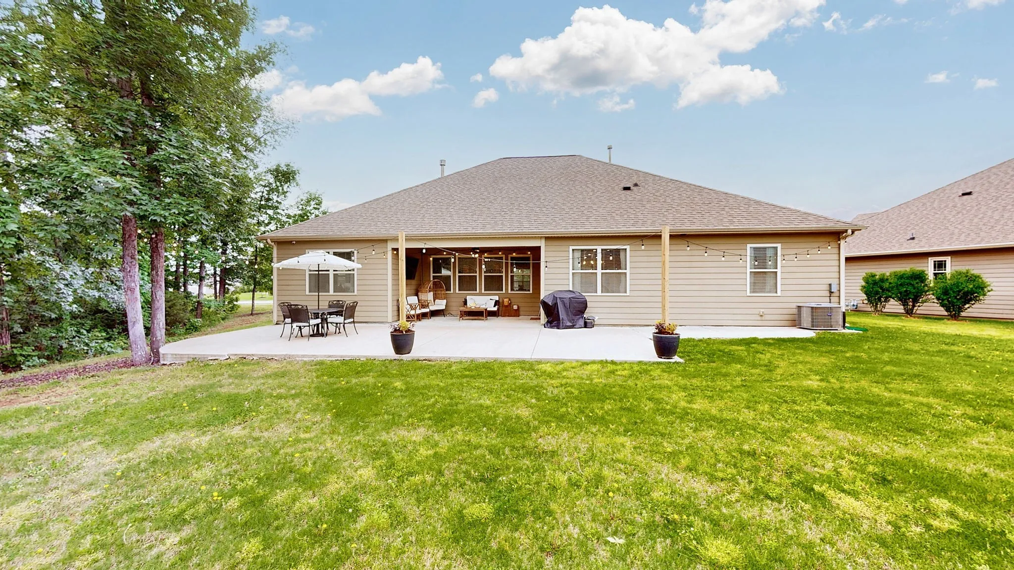 Outdoors, an extended concrete area provides ample space for entertaining, relaxing, or future enhancements. The home is just steps from scenic paved walking trails, a community pool, and a fully fenced playground!