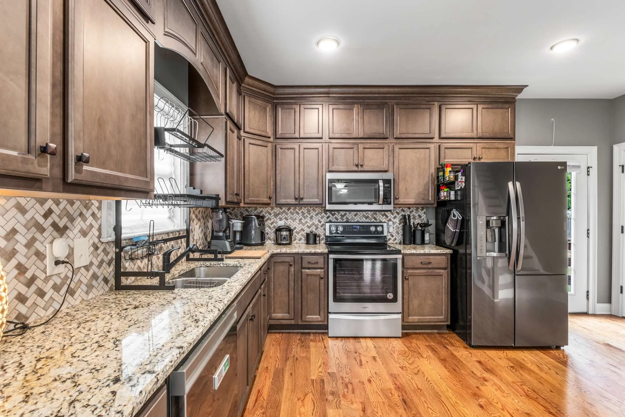 Just minutes from vibrant Downtown Murfreesboro, this stunning 5-year-old home combines modern elegance with move-in-ready peace of mind – PRE-INSPECTED with repairs completed by a licensed contractor. Step onto the charming covered front porch and into a bright, inviting interior with gleaming hardwood floors, neutral designer paint, and an open flow that feels both high-end and welcoming. The gourmet kitchen is a showstopper, boasting custom cabinetry, granite countertops, tile backsplash, stainless steel appliances, recessed lighting, and generous workspace for effortless entertaining. The main-floor primary suite is a private spa retreat with a soaking tub, sleek modern tile shower, double vanities, and a walk-in closet. A laundry room with sink and stylish half bath add main-level convenience, while upstairs offers two additional bedrooms, a full bath, and a spacious bonus room for a home office, media lounge, or guest haven. Outside, enjoy your private patio and fully fenced backyard – perfect for BBQs, gardening, or simply relaxing in your own oasis. A 2-car garage completes the picture with space for vehicles, tools, and projects. Near Central Magnet School, main roads with easy access for commuting, and NO HOA! This Murfreesboro gem blends location, luxury, and lifestyle – schedule your private showing today before it’s gone!
