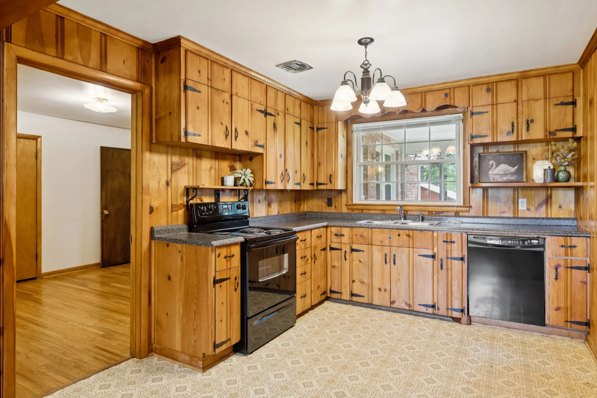 Late 50’s ranch in Graycroft neighborhood! 2 Bedroom PLUS office AND great room provide functionality w/ multiple living areas while maintaining tons of vintage charm and character. Original hardwoods, solid wood panelling, celebrated mid-century pink bathroom with hex tiles and linen closet, exposed beams and beautiful heart pine floors in den. The oversized replacement windows bring beautiful sunlight throughout the home. 50 year roof, newer hvac and thermostat, pvc and copper plumbing, 1 car attached garage could be expansion space, screened in porch, covered patio area in backyard, storage shed, all in park-like setting. These homes rarely come to market in this condition. It is truly a must-see. Selling as-is with inspections welcome. Condition of fireplace is unknown and not warranted.