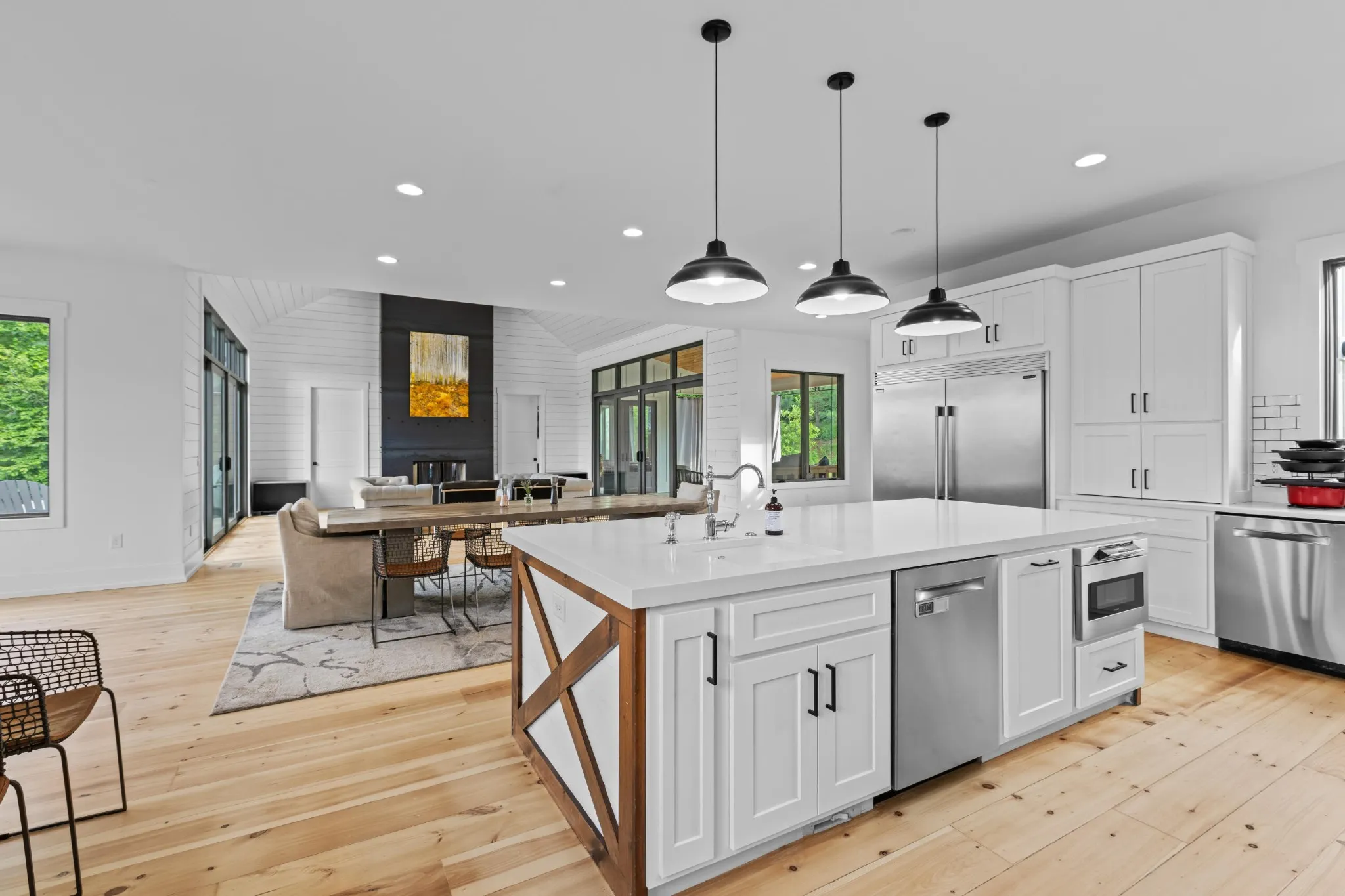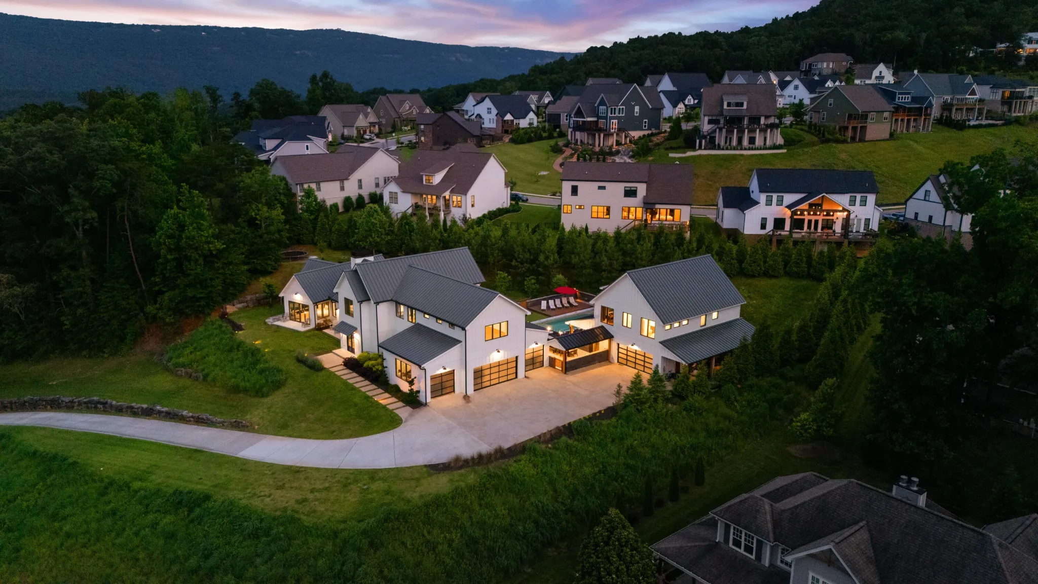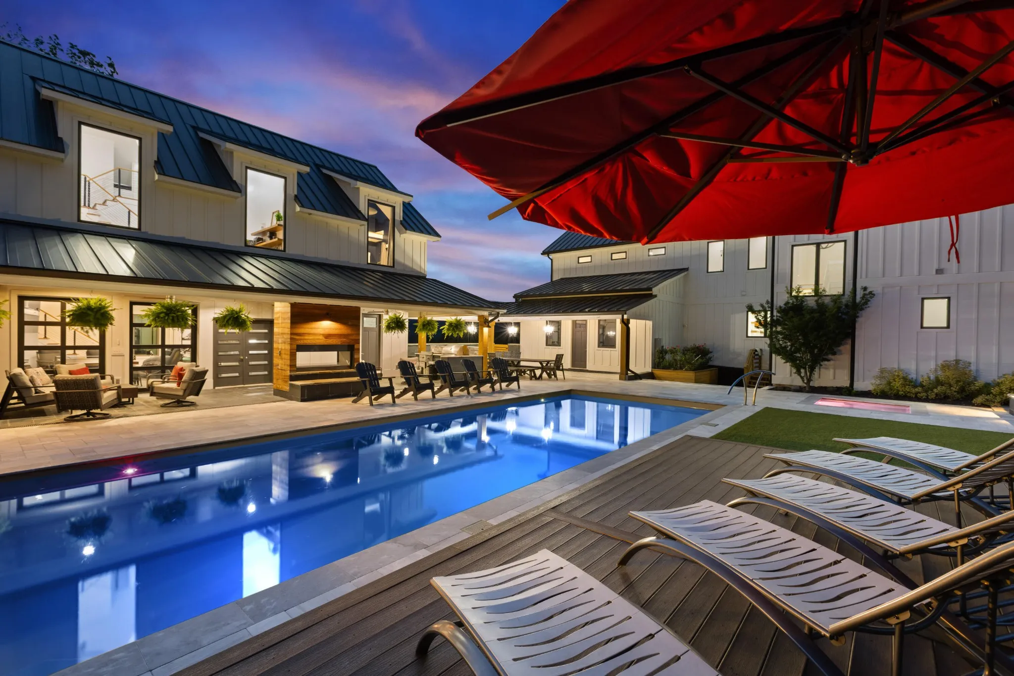 Welcome to 514 Kestrel Lane—an exceptional luxury estate in the heart of Black Creek, nestled on one of the community’s largest lots at 1.76 acres. This thoughtfully designed modern farmhouse offers 6 bedrooms, 6 bathrooms, a bonus bunk room, media room, and over 4,700 sq ft of beautifully finished living space in the main home alone. Step into a bright, open floor plan with high-end features throughout, including a chef’s kitchen with built-in coffee maker, pot filler, dual dishwashers, oversized fridge/freezer, bar and prep sinks. Enjoy the convenience of three separate laundry areas—in the mudroom, upstairs, and inside the master suite. The main house also includes central vacuum, spray foam insulation, individual mini-split HVAC systems, and a wood-burning fireplace. This outdoor living space is a true private retreat, thoughtfully designed for luxury, leisure, and entertaining. At its heart is a stunning heated saltwater pool, flanked by two hot tubs—including a custom in-ground spa—and a sauna, all surrounded by 2,600 square feet of expansive pool decking. Overlooking this resort-style setting is a spacious covered porch complete with a fireplace, perfect for year-round enjoyment. The culinary centerpiece is a custom-designed poolside kitchen, featuring a top-of-the-line built-in grill and a professional-grade griddle. Meticulously crafted with premium materials and sleek finishes, this chef-worthy setup delivers an unparalleled alfresco dining experiencefrom seared steaks to teppanyaki-style feastsjust steps from the water’s edge.