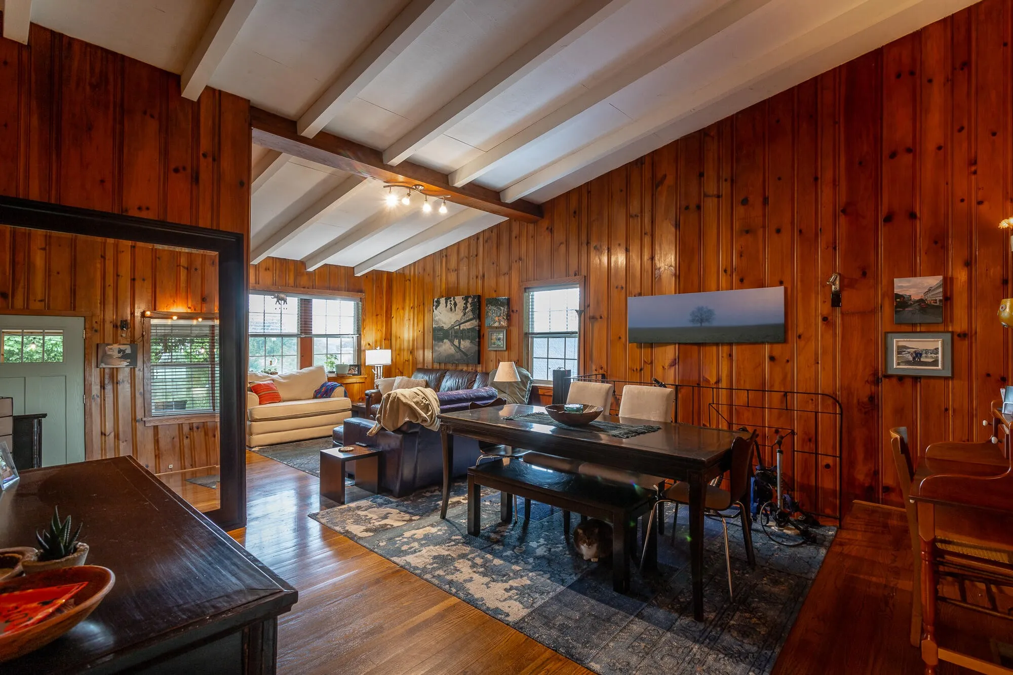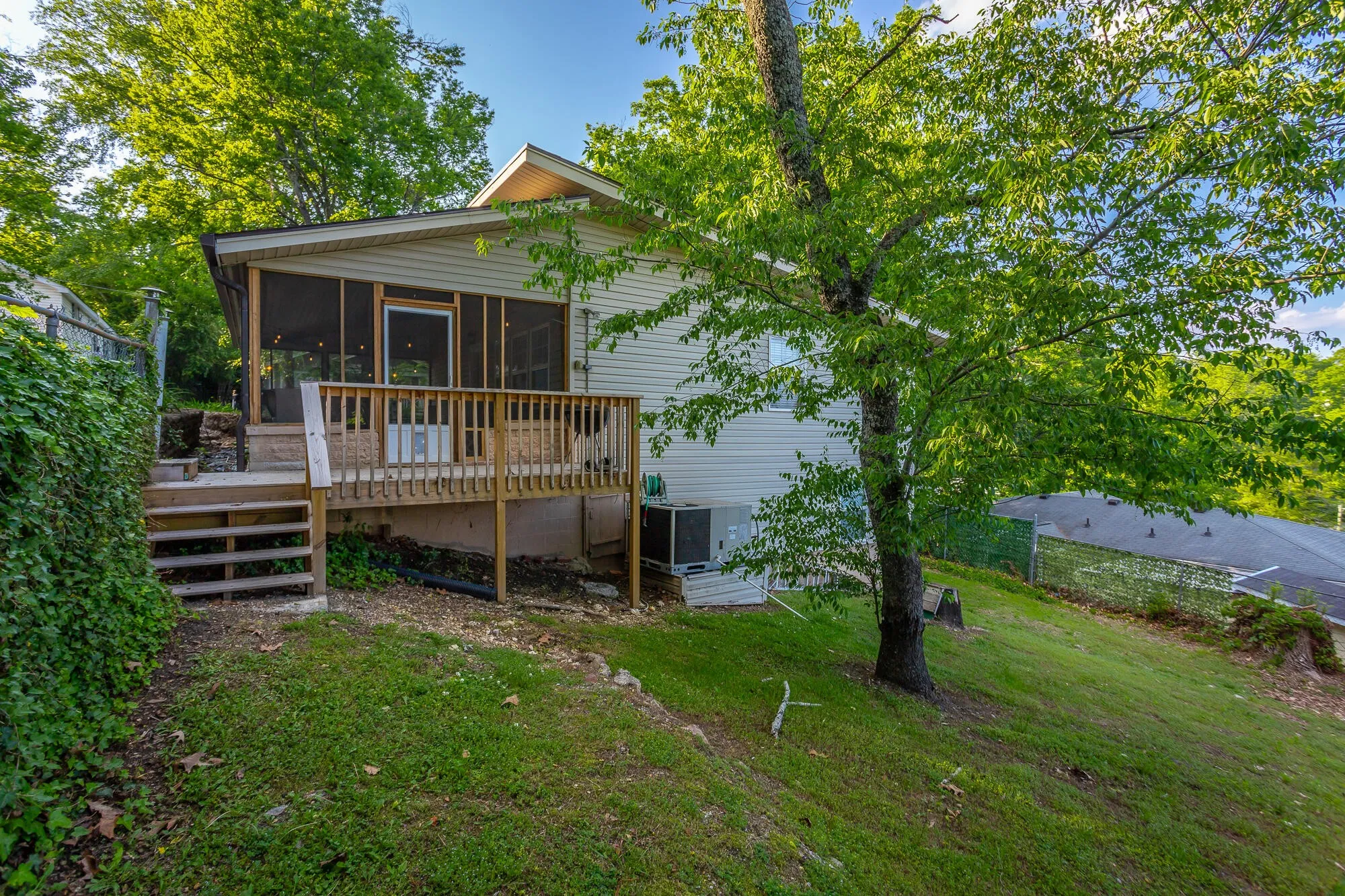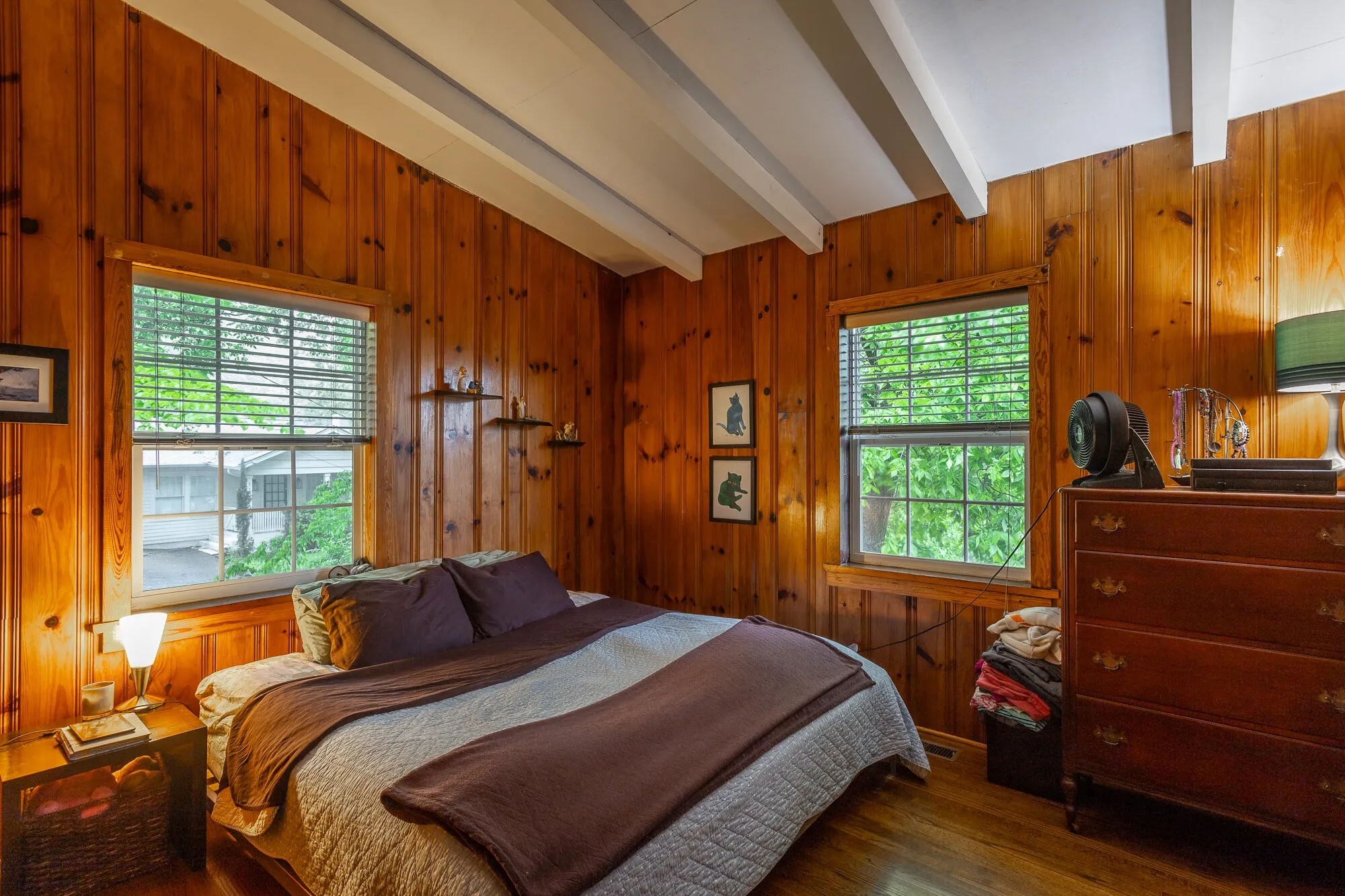 Charming North Shore Cottage with Rustic Flair – Step into timeless character and comfort in this warm and inviting 2-bedroom, 2-bathroom cottage, ideally located in Chattanooga’s sought-after North Shore. Blending classic cabin vibes with functional updates, this home is a rare gem for those who crave personality and proximity to it all. Inside, you’ll find a cozy living space wrapped in original knotty pine walls and hardwood floors, creating a woodsy, retreat-like feel just minutes from downtown. The bedrooms feature manufactured hardwood, while the kitchen offers low-maintenance vinyl and the main bathroom is accented with classic tile. A large screened-in front porch with a beautiful stone floor welcomes you home—perfect for relaxing or entertaining. The stone masonry foundation, charming shingle-covered roof, and quaint front entry door add to the storybook appeal. The home features updated aluminum-frame windows installed in 2005, offering improved energy efficiency and natural light. The kitchen is fully equipped with a refrigerator, stove, microwave, and dishwasher—all included with the sale. The home is outfitted with central air conditioning, a gas heating system, and a gas water heater for year-round comfort. It’s connected to public sewer and water and offers a rolled driveway with space for multiple vehicles. Nestled in a peaceful setting, the property is still just a short walk to local parks, restaurants, shops, and everything North Shore has to offer. This North Shore cottage offers the perfect balance of character, comfort, and convenience—ideal for weekend nesters, downsizers, or anyone craving a unique home in a vibrant community. Hurry and schedule your private showing today!