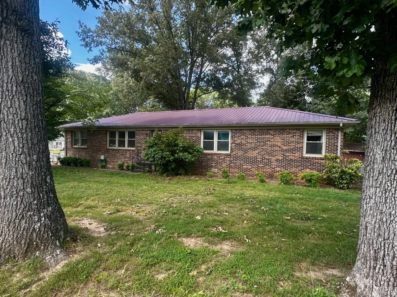 Low maintenance all brick home! This home has a metal roof, half circle asphalt drive, completely fenced back yard, and sets on a corner lot with mature trees on half acre. Priced to sell, this 2000+ sqft residence has a traditional interior layout with large sunroom and a flex room that would make a great office, workout space, or home business – formerly used as a home beauty shop.