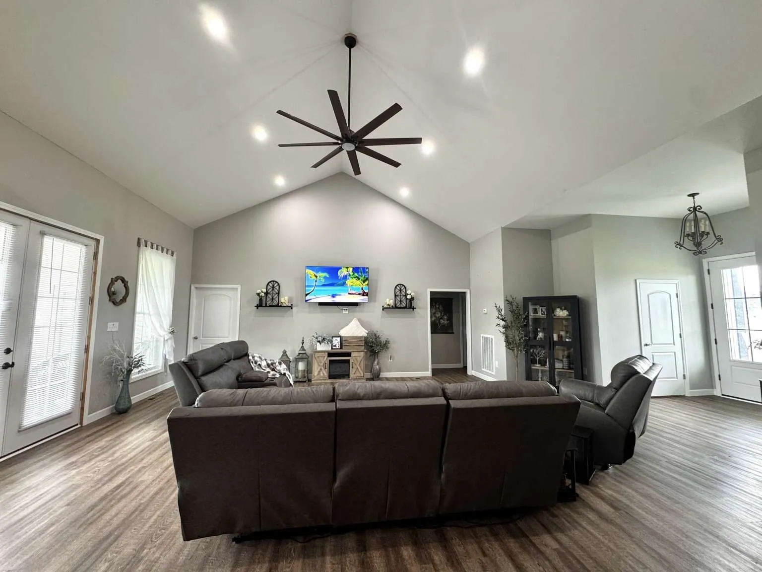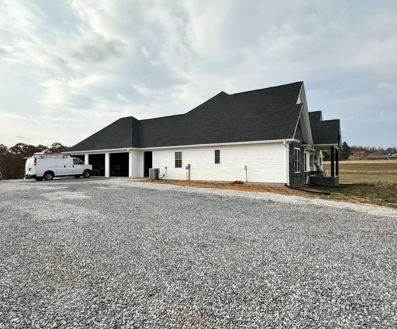 Beautiful modern home on 8.6 acres of flat to gently rolling land. Main level offers 3,058 sq ft of living space with an expansive open floor plan and 2,700 sq ft of unfinished basement. Grand living room with a cathedral ceiling that flows into an expansive kitchen with a large island, abundant cabinetry, and walk-in pantry. Primary suite features dual walk-in closets and a luxurious bath with a whirlpool tub and tiled walk-in shower. Additional highlights include an office, oversized laundry room, a private bedroom and full bath located just off a hallway on the north side of the home, 4.5 bathrooms (including an exterior pool bath), and a 3-car carport. Ideal location with quick access to I-81 and an easy drive to Sevierville, Knoxville, and Bristol. Buyer representation welcome