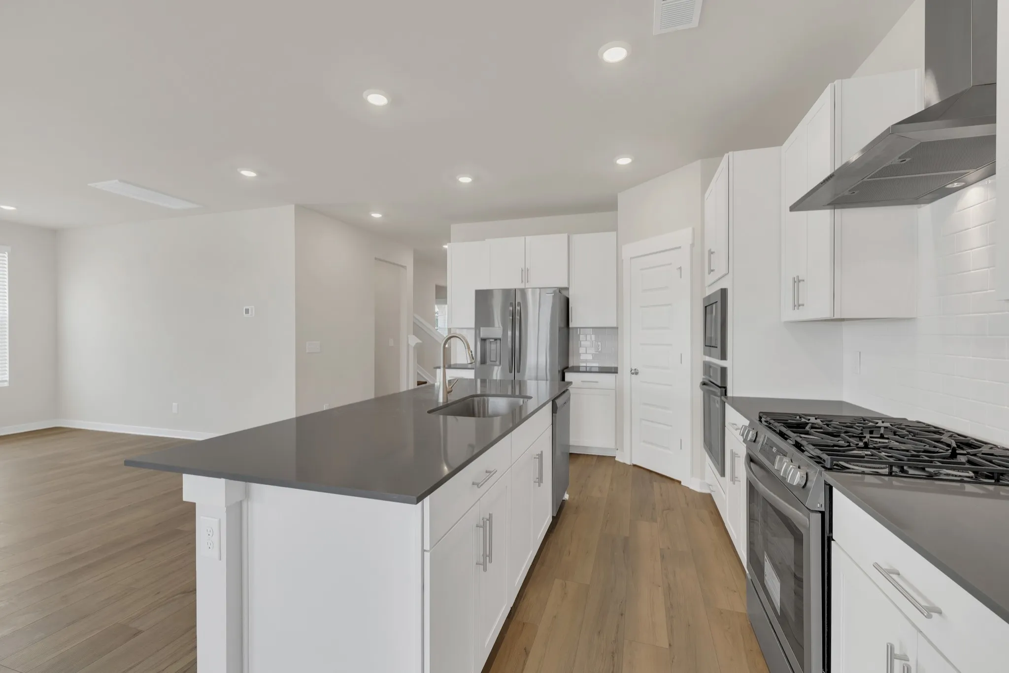 LOT #55 – Hawthorne floorplan. 5 BED / 4 BATH / 2 CAR GARAGE. This new two-story home is designed to accommodate modern lifestyles with an inviting open floorplan and a convenient covered patio, perfect for entertaining. A secondary bedroom off the foyer is ready to be used as a guest suite or office, with a beautiful owner’s suite tucked into a private rear corner. Three bedrooms on the second level surround a versatile bonus room, providing a shared living space upstairs.