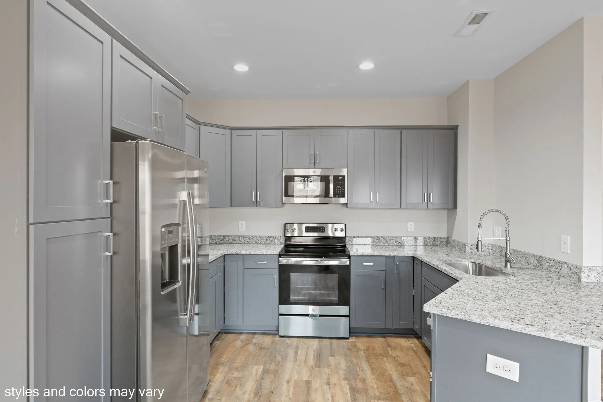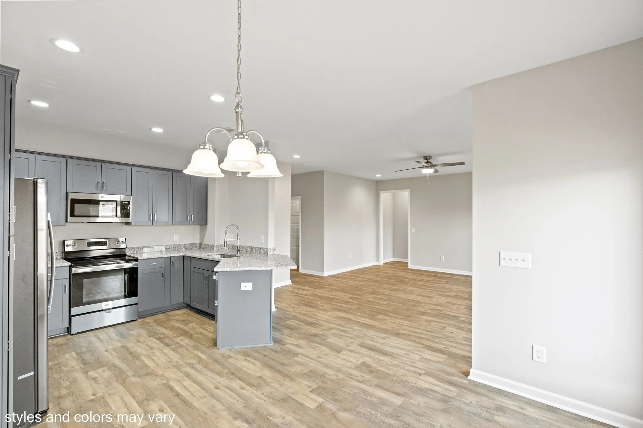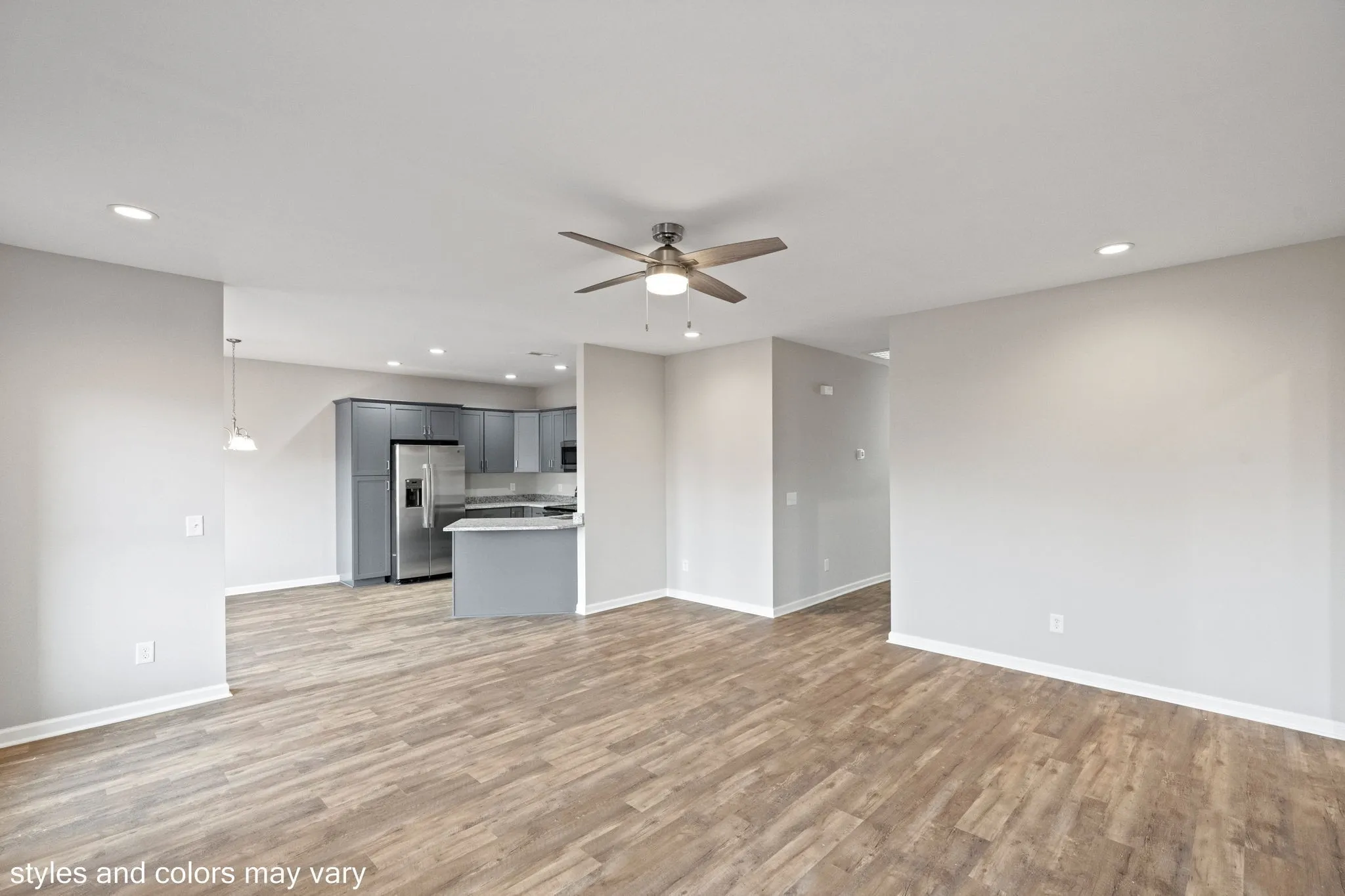 BRING YOUR BUYER! Brand new privacy fence just added! Last home currently available that is ready to go! These homes offer quality upgrades without upgrading the price such as: finished out oversized attached garages, custom closets, upgraded fixtures, NO CARPET THROUGHOUT & NO STEPS, high ceilings and more! NO HOA, but located right across from Richland Park offering playground, picnic pavilions, walking trails, disc golf and newly approved splash pad when completed.