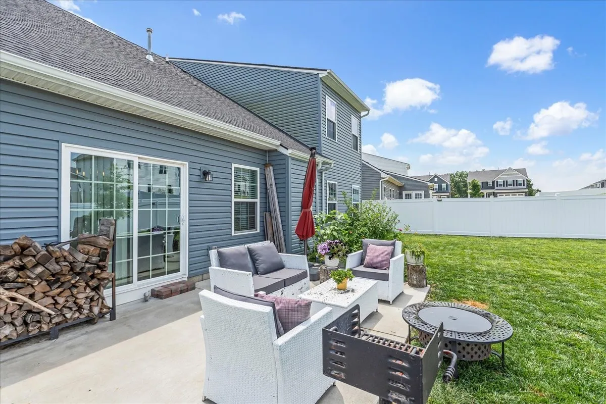 Step outside to your private backyard retreat—fully enclosed with a vinyl fence and featuring a patio with a built-in grill, ideal for summer barbecues and outdoor gatherings.\n