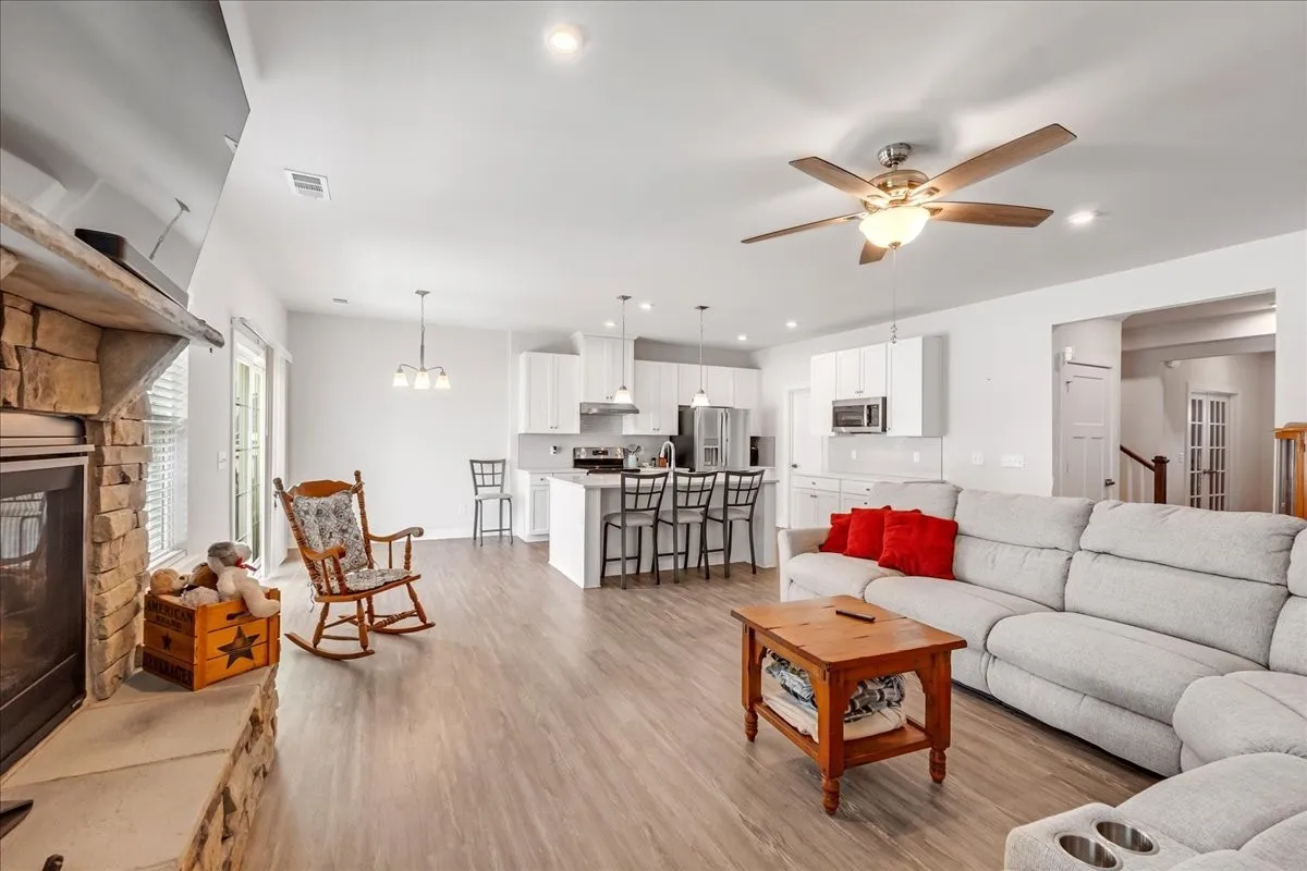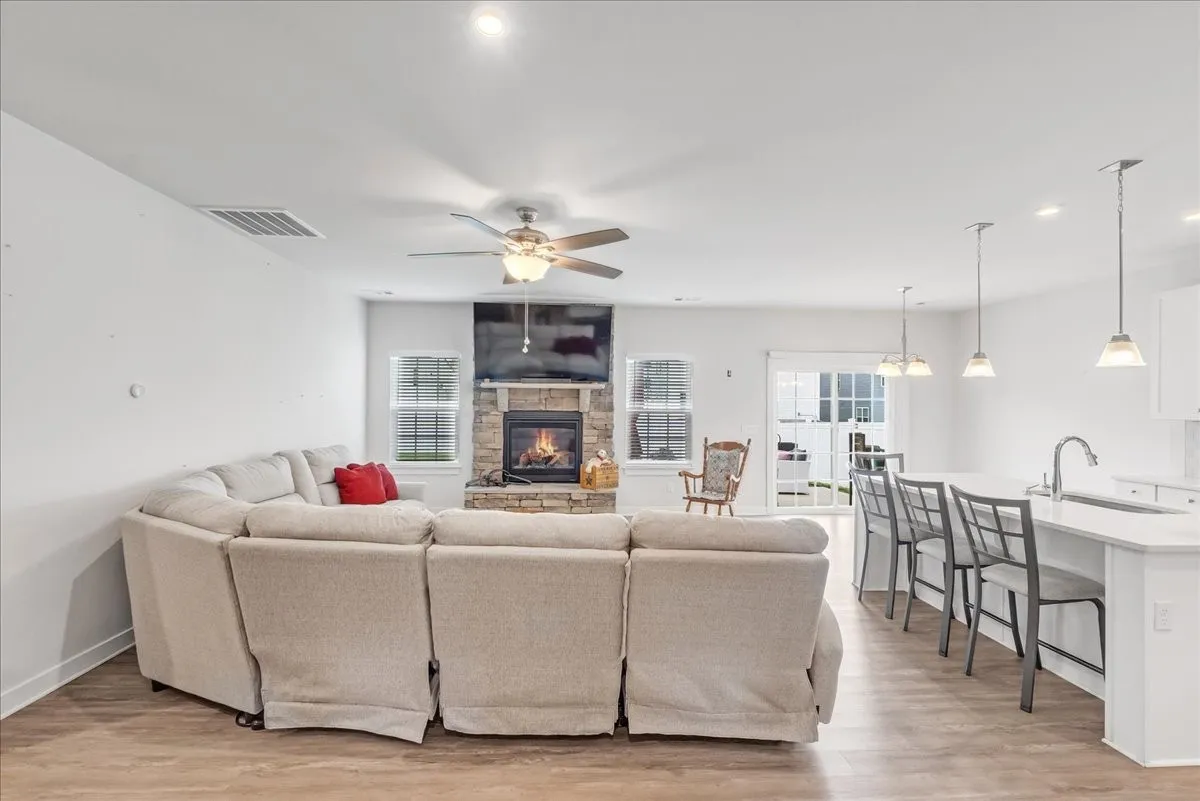 SPECIAL - PREFERRED LENDER OFFERING 1% OF LOAN AMOUNT CREDIT TO BUYERS. Welcome home to the sought-after Cedar Hills community! Built by Ryan Homes this spacious and beautifully designed Genoa floorplan includes 4-bedrooms, 2.5-baths and more. The primary suite on the first floor has a walk-in shower, double sinks, and a LARGE walk-in closet. Just inside the front entry the home features a dedicated office with french doors PLUS a massive bonus/rec room on the 2nd floor with a closet that could easily serve as a 5th bedroom, this home provides flexible space for every lifestyle. The open-concept layout centers around a chef’s kitchen complete with stainless steel GE appliances, quartz countertops, a walk-in pantry, soft-close drawers, slide-out cabinets, gooseneck faucet with built-in soap dispenser, and a large island with bar seating—perfect for entertaining. The adjoining great room, dining, and living areas showcase a cozy stone gas fireplace, creating a warm and inviting atmosphere.\n