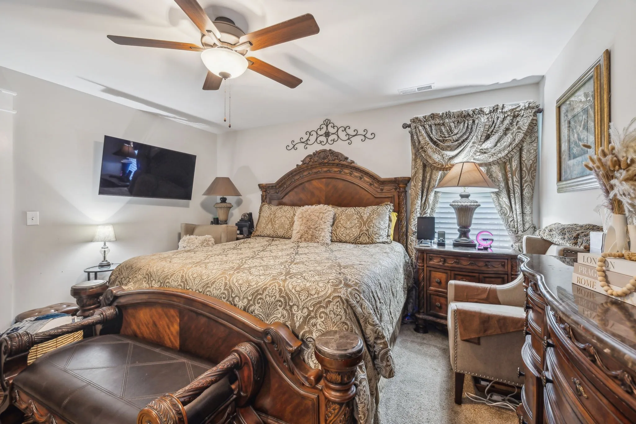 The kitchen is equipped with stainless steel appliances, granite countertops, and flows into the living area with a cozy fireplace and eat-in space—perfect for entertaining. A formal dining room adds elegance for special occasions. Upstairs includes three additional bedrooms, two full bathrooms, and a large rec room over the garage—ideal for a playroom, home office, or media space.
