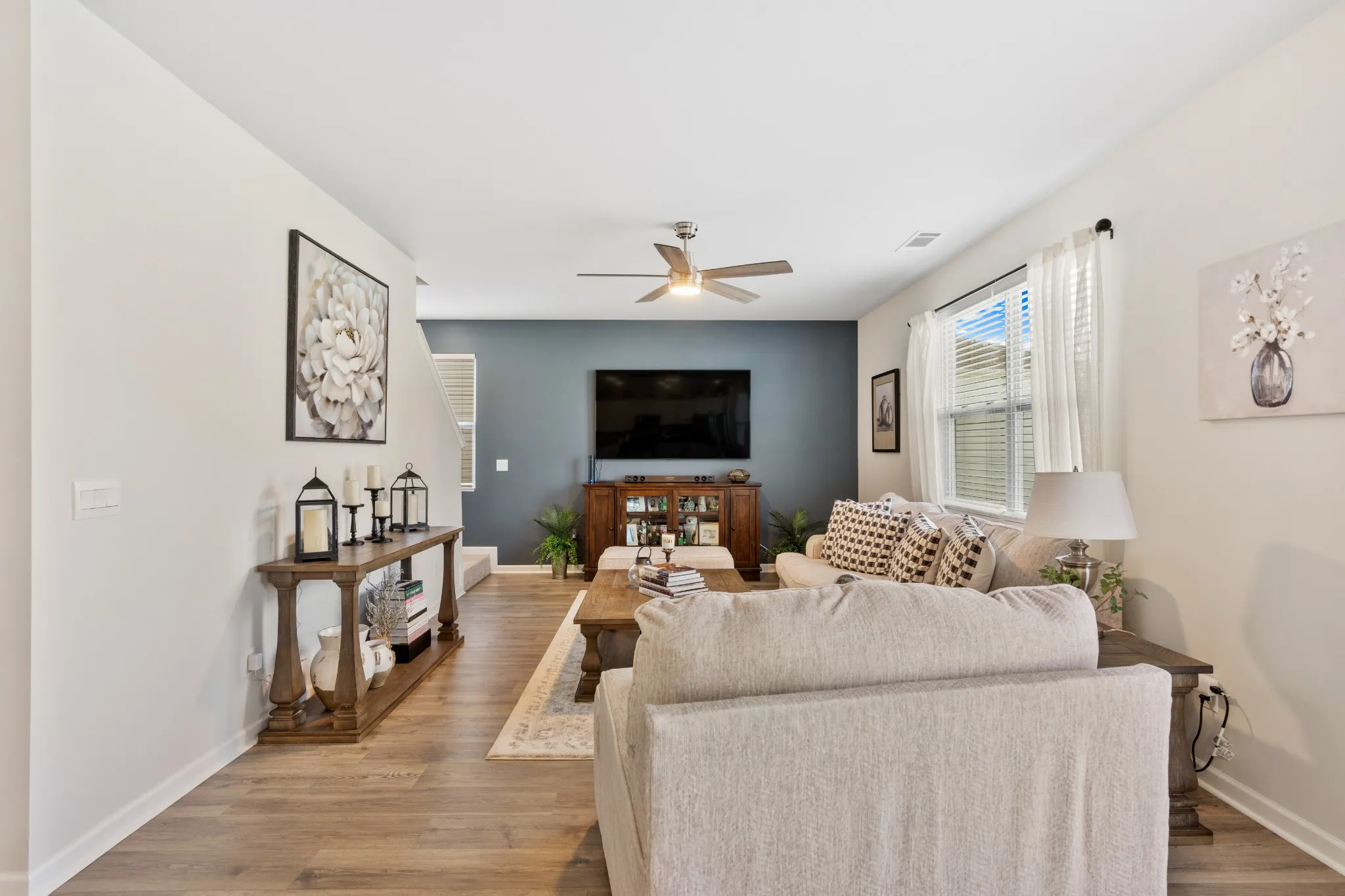 Qualifies for 100% financing +10K grant that does not need to be paid back from Old National Bank! From the beautifully landscaped yard to the inviting covered front porch, the minute you step inside every detail is literally designed to impress. You’ll discover an open floor plan that seamlessly blends style and functionality. A versatile flex space at the entry offers endless possibilities—perfect for a home office, playroom, or guest suite. The upgraded kitchen is the heart of the home, featuring a spacious island, sleek designer backsplash, upgraded finishes, granite countertops, an extra-large walk-in pantry, and ample storage. Hard-surface flooring flows throughout the main living areas, and a convenient powder bath adds extra functionality for guests. Upstairs, you’ll find 3 oversized bedrooms, AND a bonus gathering area—ideal for a media room, playroom, or second living space. Need an extra bedroom? This flexible space can easily be converted into a 4th bedroom or outfitted with a pull-out couch for additional sleeping space. The primary suite is a true retreat, offering a walk-in shower, a generous walk-in closet, and a granite double-sink vanity for added luxury and convenience. Tucked on a quiet cul-de-sac with a playground just steps away, this turn-key gem offers the ultimate lifestyle for homegrown locals, or anyone relocating to the area looking for more! Whether you’re commuting to Nashville, M’boro, or the airport, you’ll love being just minutes from I-840—making every destination easily accessible.Equipped with technology that includes a Z-Wave programmable thermostat and door lock, a touchscreen control hub, a video doorbell, Deako switches and MORE! Wrap up your day and enjoy evening sunsets on the private back patio, ideal for grilling and entertaining, or explore the walkable community with family friendly amenities, and a welcoming neighborhood vibe. This home delivers everything you desire and more, your new adventure and lifestyle awaits!