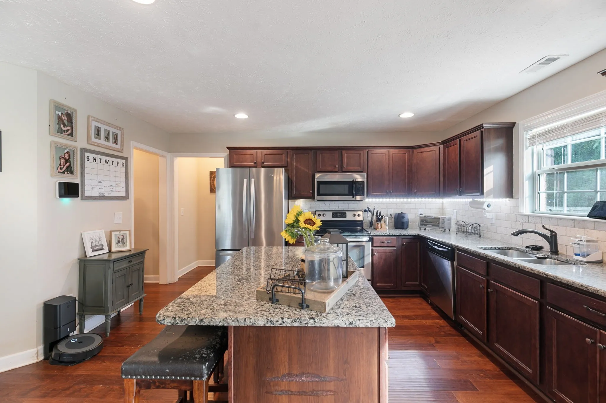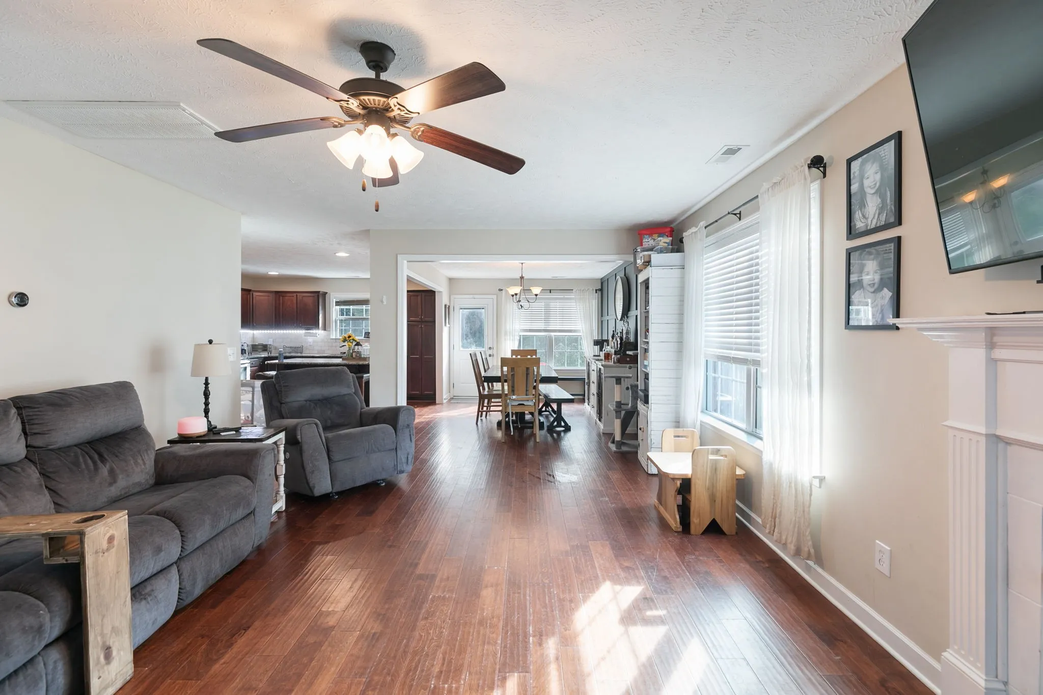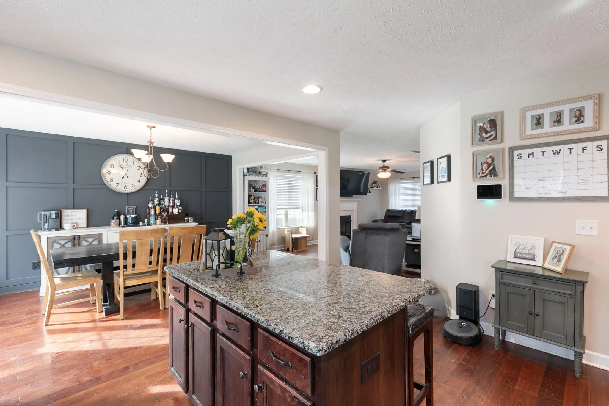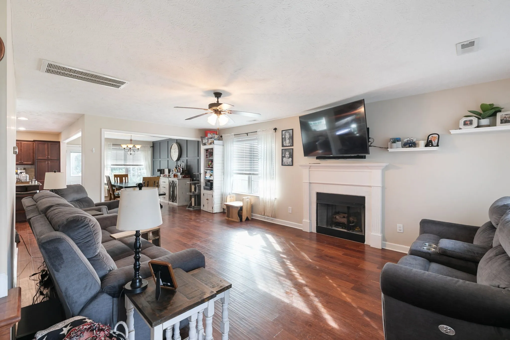 Welcome to this charming 3-bedroom, 2-bath home in a vibrant, activity-filled neighborhood with no HOA! This home features a spacious layout with fresh paint throughout and a massive rec room perfect for movie nights, play space, or entertaining. The kitchen and dining area showcase a beautiful accent wall with modern dimension—adding warmth and character to the heart of the home. Step outside to your fully fenced half-acre backyard, offering rare privacy and space to enjoy. The community is known for its friendly atmosphere, regular food trucks, and neighborhood events—you’ll love being part of it!