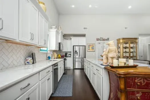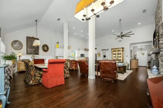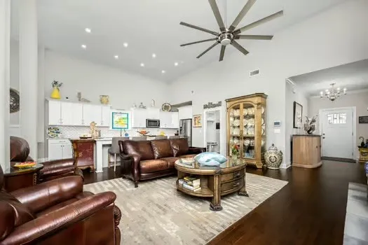 Welcome to one-level living at its finest…2,884 sq ft. of thoughtfully designed living space featuring 4 spacious bedrooms and 3.5 bathrooms.This beautifully maintained home offers a seamless open-concept layout with soaring vaulted ceilings, custom built-ins, and an inviting living area perfect for both everyday comfort and welcoming family & friends.