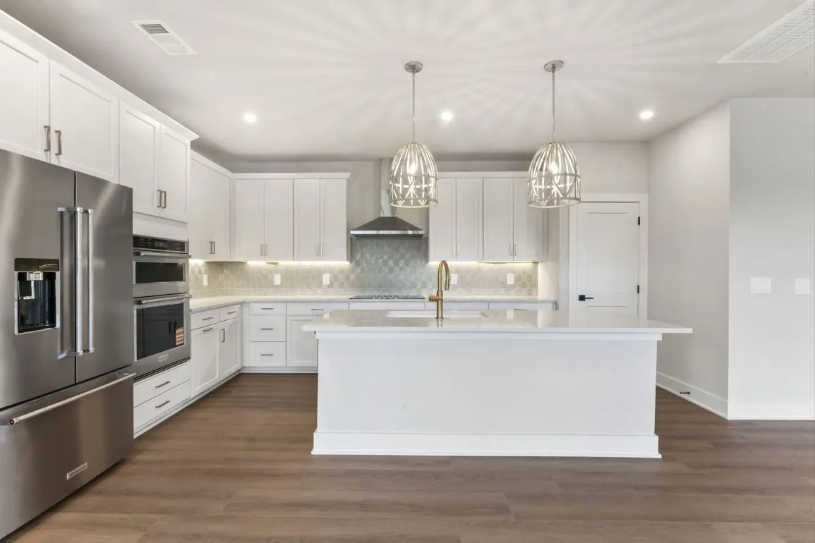 The stylish Goldfinch is a move-in ready home, offering a bright open floor plan for modern living throughout. The home opens immediately into the chic main living space, featuring an elegant great room and charming casual dining area. The thoughtfully planned L-shaped kitchen includes a large center island with breakfast bar, a useful pantry, and plenty of counter and cabinet space. The lovely primary bedroom has dual walk-in closets and a beautiful primary bath with a dual-sink vanity, a luxe shower, linen storage, and a private water closet. Secondary bedrooms with share a nearby full hall bath with a separate vanity area. The fourth additional bedroom has a private bath, perfect for guests. Other highlights of this home include an everyday entry, a first-floor powder room, convenient bedroom-level laundry, and extra storage throughout.