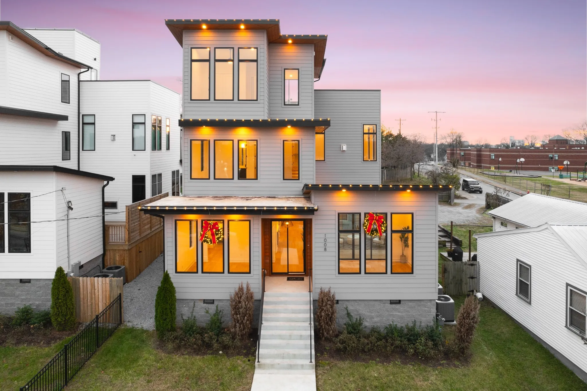 Modern luxury home in one of East Nashville’s most desirable neighborhoods. Across from Lincoln Tech’s redevelopment with a new park, restaurants, and shops primed for long-term appreciation. Inside, enjoy 10–12 ft ceilings, designer finishes throughout, and a double-sided fireplace connected to the private outdoor courtyard. Multiple wet bars make entertaining seamless. The rooftop Lookout Tower offers a view of Downtown Nashville, perfect for New Year’s & 4th of July fireworks. A guest suite with a separate entrance is fully OOSTR-ready for Airbnb or private hosting. Known for its walkability to Publix, Orange Theory, and top restaurants. Superior insulation ensures a quiet, peaceful interior. Incentives: 1.5% Rate Buydown and Free Appraisal with Preferred Lender.