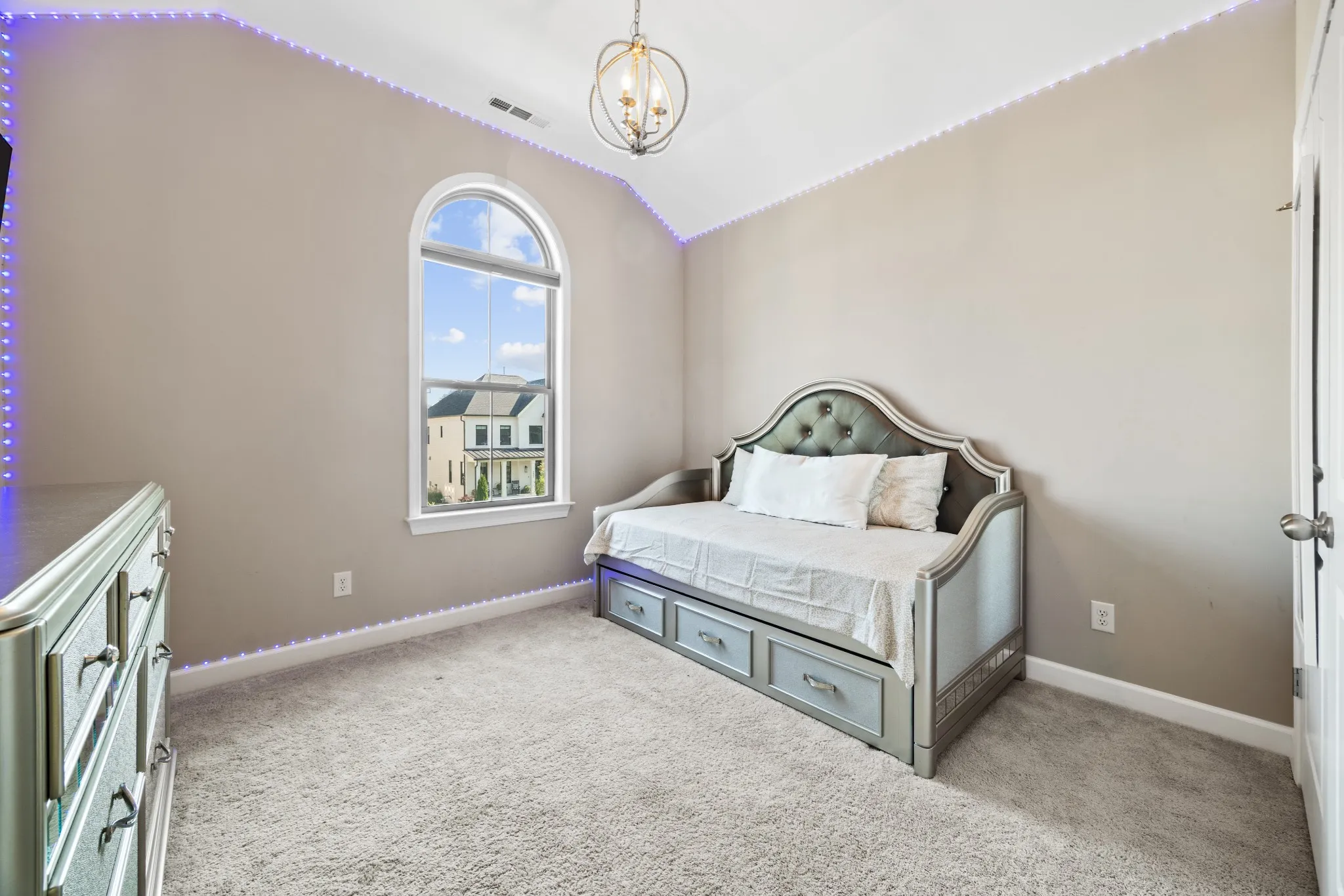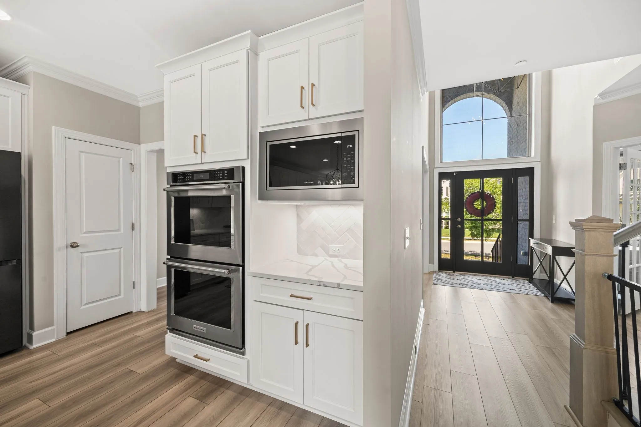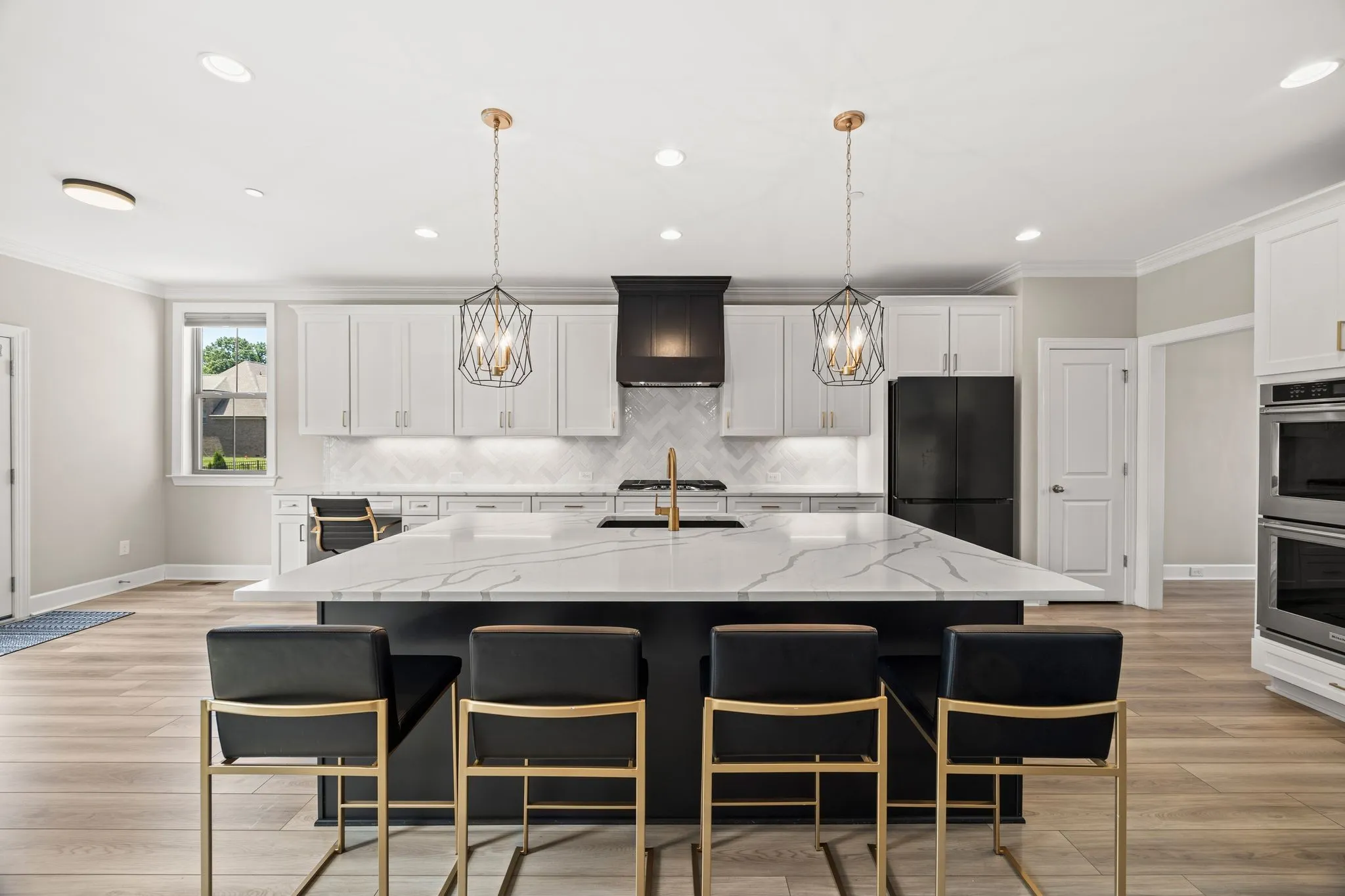 Built in 2022 and meticulously maintained, this 3,177 sq. ft. residence offers an open, light-filled layout ideal for modern living and effortless entertaining. The grand two-story great room captivates with a breathtaking stone fireplace and dazzling chandelier, flowing seamlessly into the chef’s kitchen featuring sleek quartz countertops, high-end appliances, a custom range hood, and an expansive island perfect for gatherings.