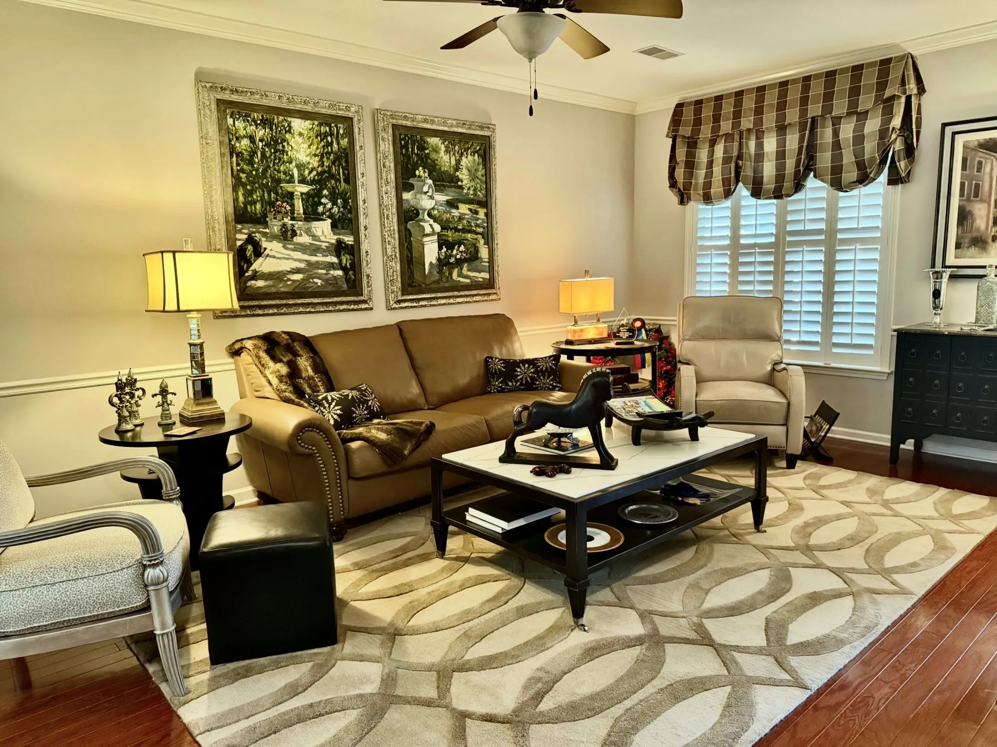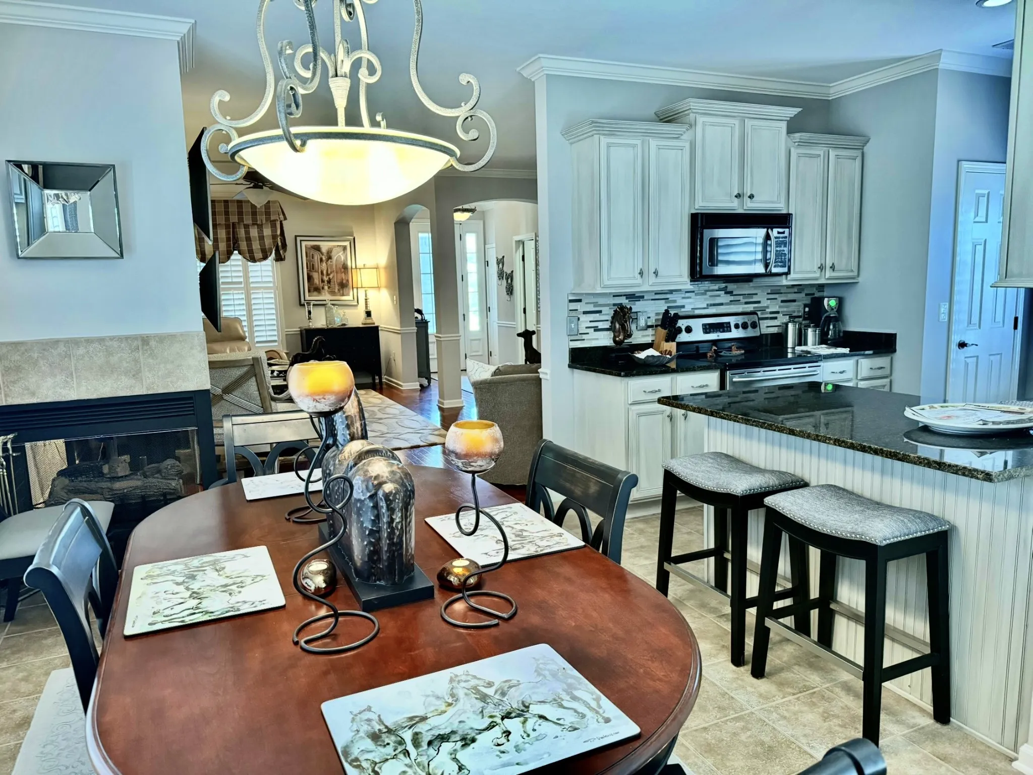 Private Gated Community and close to everything in Shelbyville! Professional Decorated with very high end Furnishings THAT ALL STAYS! Easily over $60,000 in Furnishings with original Swain Chairs, custom made Quartz Cocktail Tables, Custom made Leather Sofa, hand painted and beautifully frame Oil Paintings and so many more alluring features! This Home is Elegant, Beautiful, Tasteful, and Comfortable in Private Gated Community. Very Pet Friendly with your backyard completely fenced with 6FT Privacy Fencing. Upstairs covered Balcony is freshly tiled and painted. Everything is beautiful and runs perfectly!