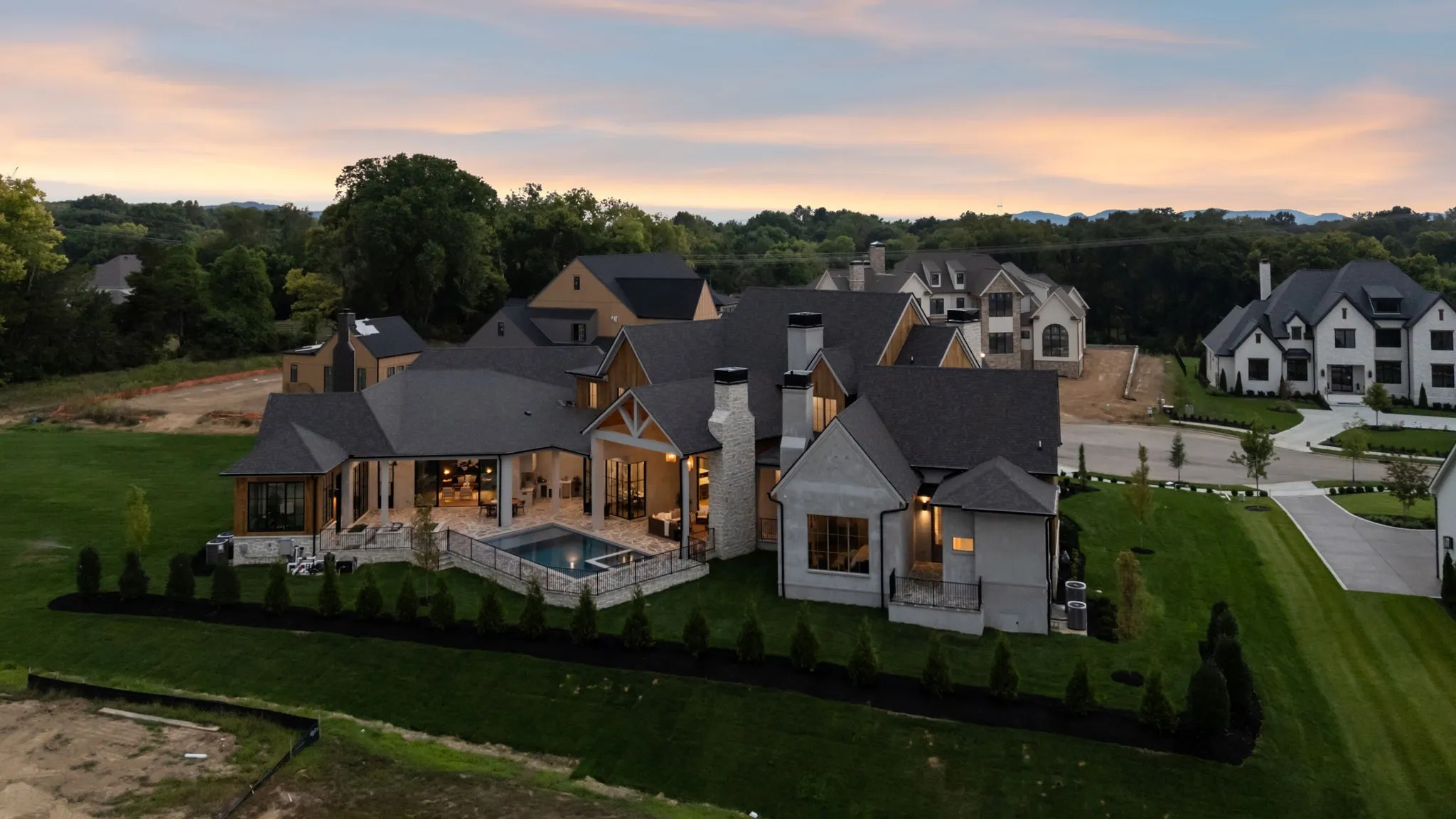 Your Dream Home Awaits on a large .97 acre homesite in convenient Brentwood location, minutes to shopping, restaurants and interstate. No detail has been missed from the Pool to the Greenhouse/Art Studio. Step into timeless elegance in the prestigious Primm Farm community, in this exclusive enclave of just 24 estate homesites. This magnificent masterpiece, built by Award Winning Landon Development, is the epitome of refined living, offering an unparalleled blend of luxury, comfort, and charm. From the moment you enter, you’ll be captivated by the grandeur—3 spacious bedrooms on the main level, a chef’s dream kitchen with dual islands, a 36” refrigerator & separate freezer, and a wine room perfect for intimate gatherings. Entertain in style with multiple covered porch/courtyard areas and an outdoor kitchen and outdoor fireplace leading to the pristine pool. Unwind in the primary suite, complete with a cozy fireplace, a spa-inspired bath with a sauna, and a private coffee/beverage bar. An elevator effortlessly connects both levels, while a main level exercise room and a media room with a wet bar ensure every convenience is met. Warm and cozy upstairs suites have their own private baths and walk-in closet. A bonus bunk area and loft for homework or reading complete the upstairs. No detail is overlooked—vaulted & 10′ ceilings, laundry/craft room with a built-in desk and dog wash, solid core doors, a 4-car garage with epoxy floors and quick access to the exercise room, and dual staircases complete this masterpiece. Don’t miss the large yard that is perfect to add an impressive sports court, in-ground trampoline or playset. Too many exquisite features to list—this extraordinary home is a must-see!