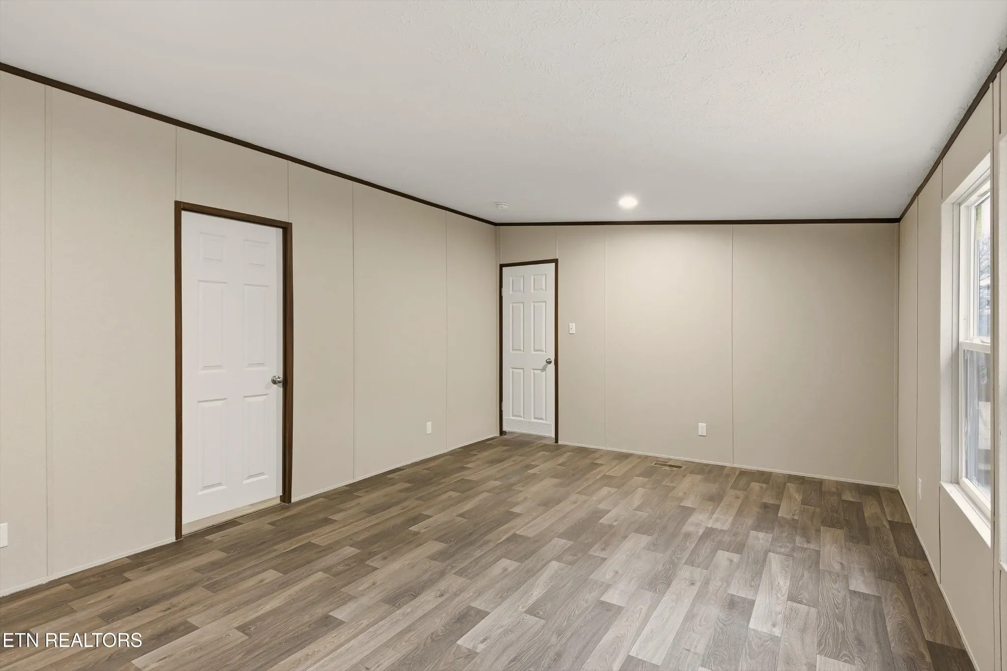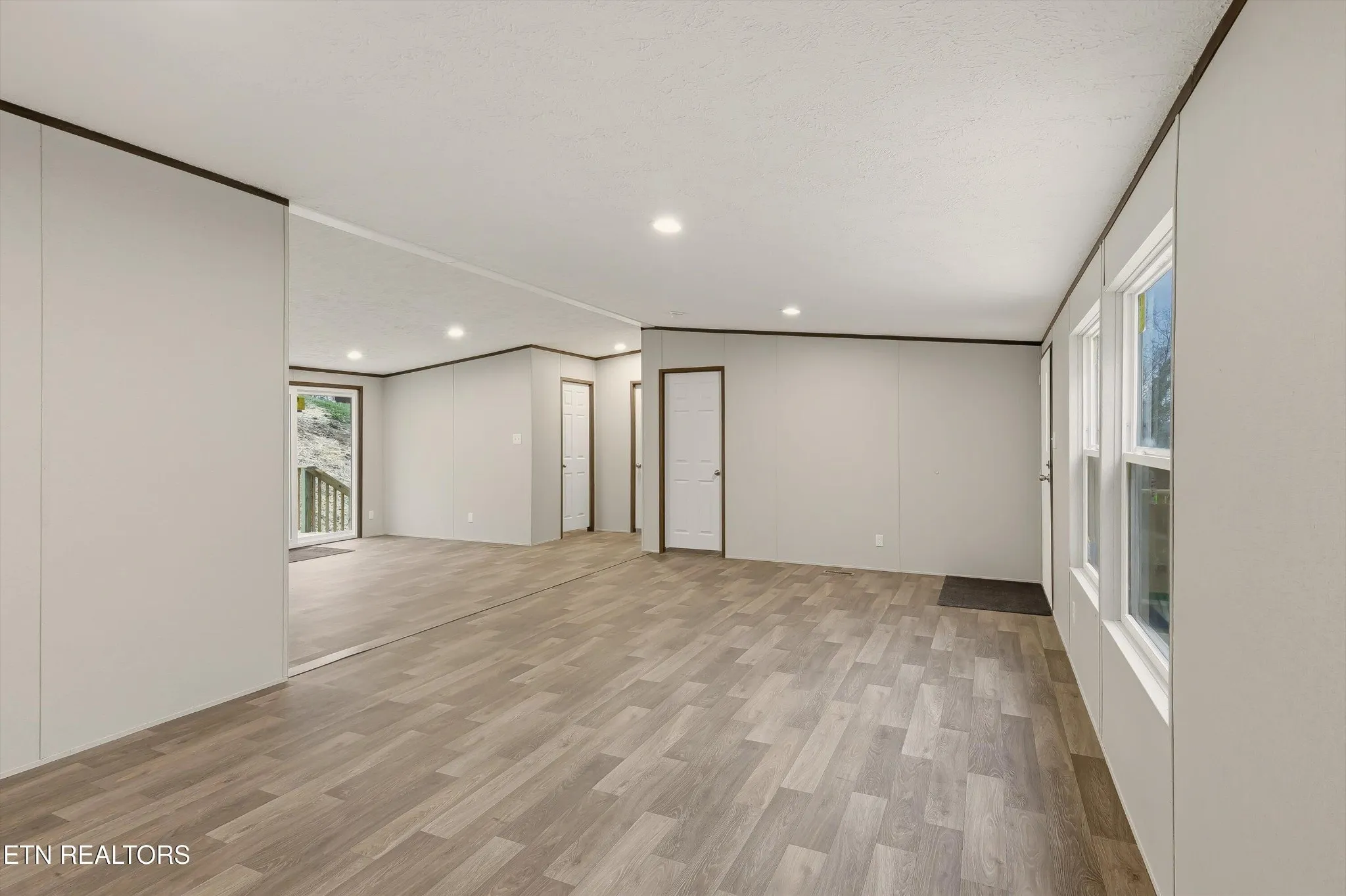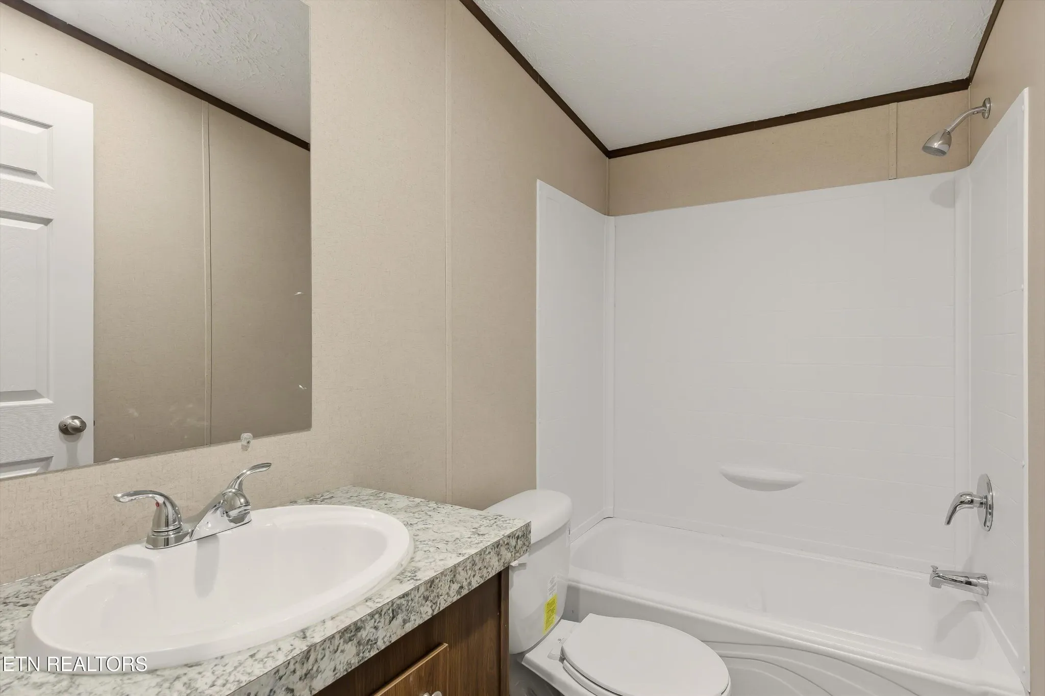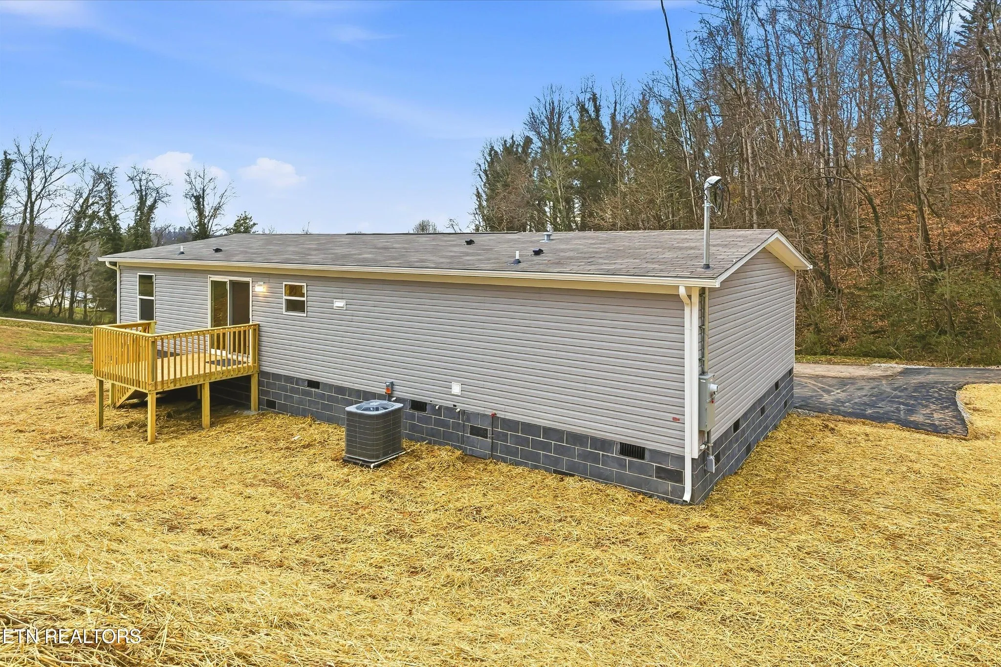 Discover your chance to own a brand new TRU Thrill model home on Short Street in LaFollette, TN, offering 1,568 sq ft of modern living with an open floor plan. The exterior features gray vinyl siding with dark shutters, giving this home timeless curb appeal. Large front windows fill the living area with natural light, creating a bright and inviting space.