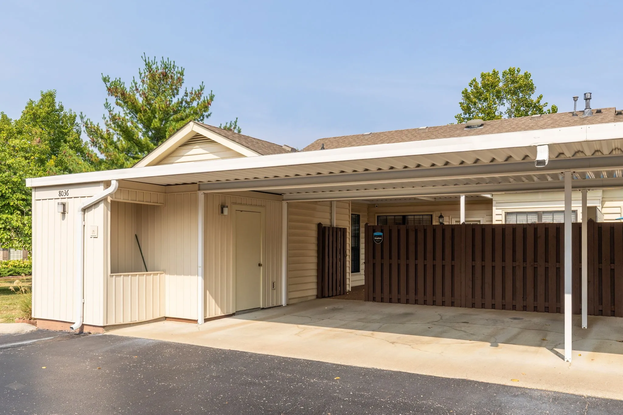 "LongDescription" => "Covered parking for two, and outdoor storage closet."