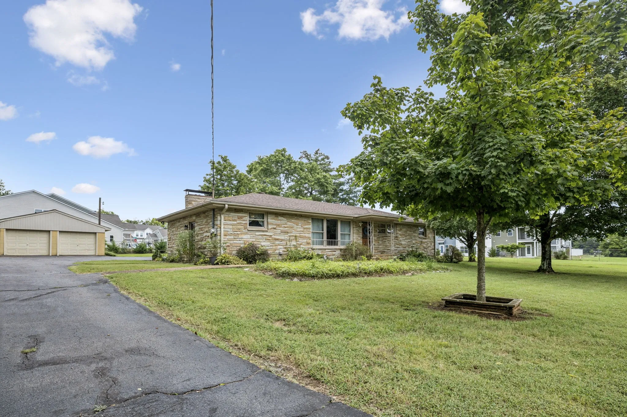 First time on the market! A piece of land was sold behind this home but this home has never been on the market. A one owner home that has been taken care of for sure! Such a sweet home in fast and growing Smyrna! First time on the market! This precious home was built by the seller with Crab Orchard stone from their family quarry. This home has stone that is unique and one of a kind for a home in Smyrna. This 3 BR, 1 BA home has Living Room with Hardwood floors, Kitchen with eat in bar, Dining Room with hardwood floors, large Den with stone fireplace and gas logs, all 3 bedrooms have hardwood floors. There is a 720 square foot detached garage with garage door opener and a mural that just adds special charm to this home. From the stone from their family quarry to the mural on the side of the garage, the garden spots and landscaping you feel at home. All this sits on over an acre lot. The yard is fenced even in the front yard and has an electric gate. Great for kids or pets. The paved driveway is great with plenty of parking space and all behind the gated property. This home has a new development being built behind it but is not in a subdivision. Such a special place to call home.