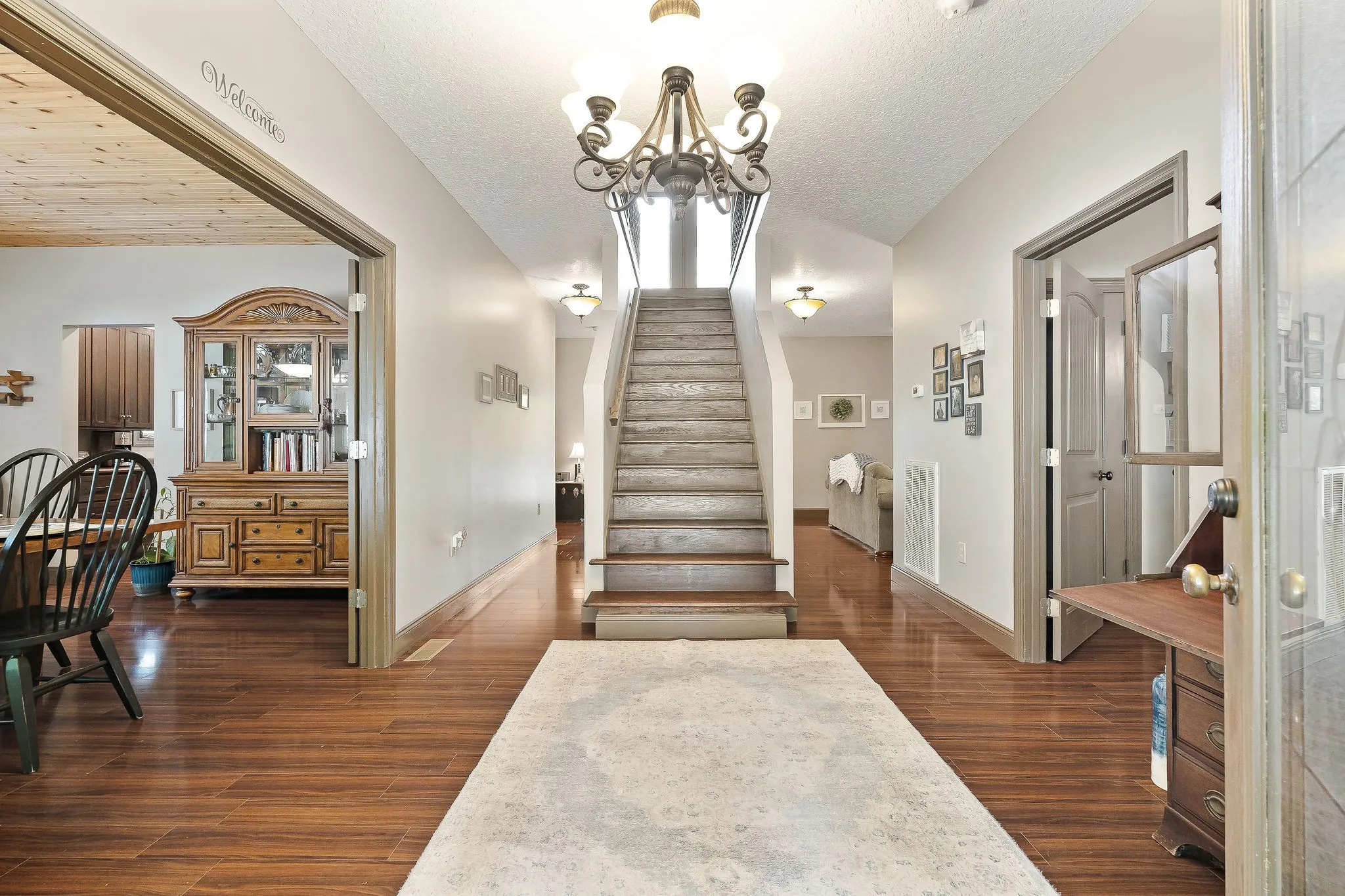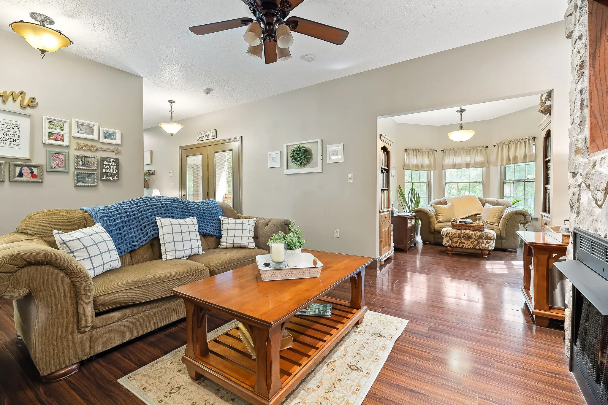 Escape to Center Hill Lake with this unique and spacious home, thoughtfully designed with the charm and functionality of a bed and breakfast in mind. Backing directly to Corps of Engineers property, the lake feels like an extension of your backyard. With over 4,200 square feet of timeless design and traditional style, this home features a grand foyer and a spacious dining area with tongue-and-groove ceilings and double doors that open to a sunny grilling patio. The open-concept living area boasts a floor-to-ceiling stone fireplace and accent wall, while the kitchen and casual den area offer additional gathering spaces and access to the covered deck. The main-level suite includes a private full bath, and upstairs you’ll find two more suites—each with its own full bath and private deck access. The fully finished basement lives like a private apartment, complete with a bedroom, full bath, full kitchen, game room, and living space, all opening to a covered patio. Whether you’re searching for a lake getaway, multi-generational retreat, or an income-producing property, this home offers flexibility and potential. There’s plenty of space to park your boat, and you’re just next door to Pates Ford Marina—one of the lake’s top-rated marinas featuring live music, a waterfront restaurant, and unbeatable access to the water. Shown by appointment only—come experience the best of Center Hill Lake living!
