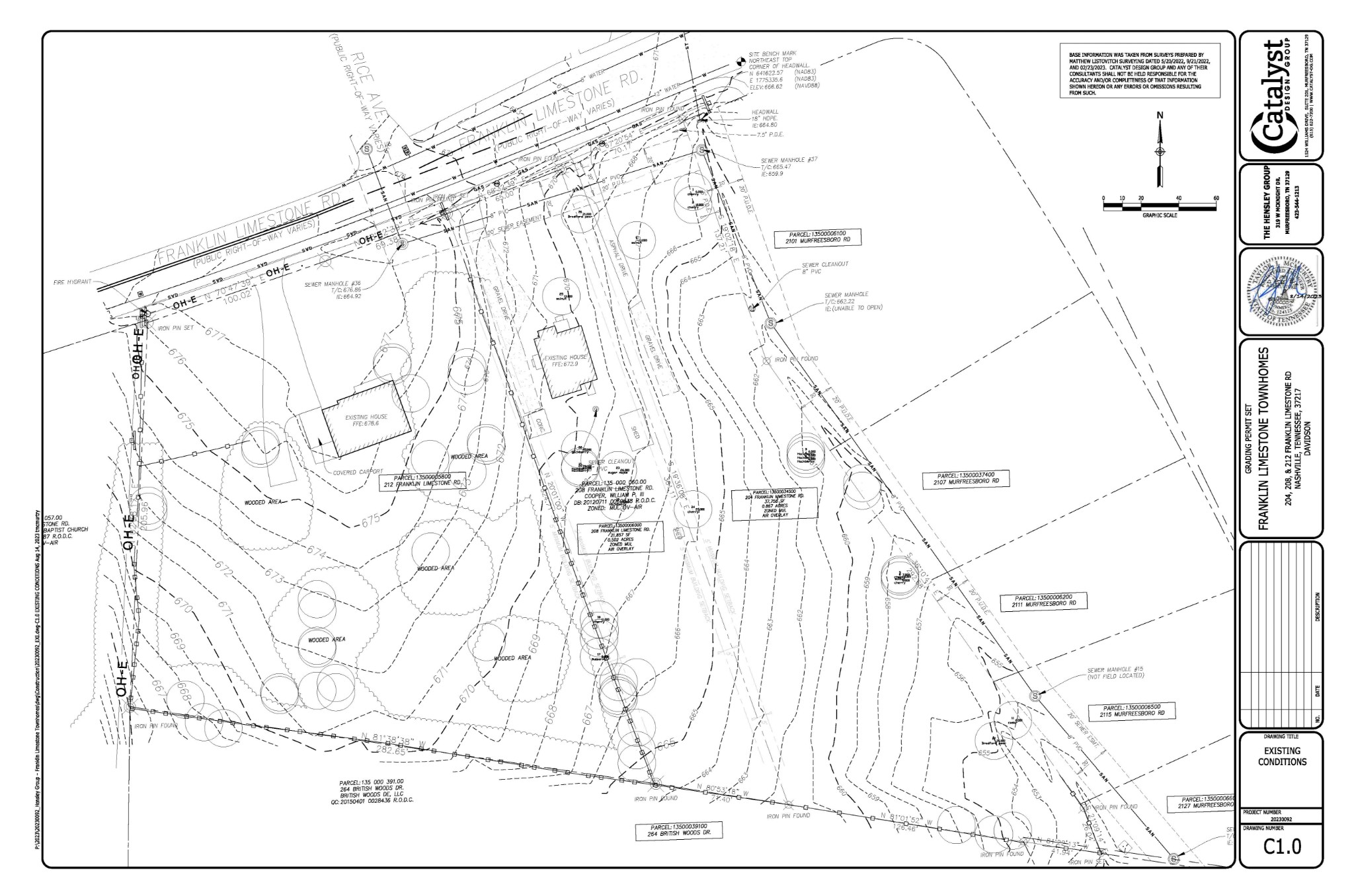 Selling for lot value. Land is cleared and ready for development. This listing is for the sale of 3 parcels located at: 204, 208, 212 Franklin Limestone Rd. Under 9 miles and less that 20 minutes to downtown Nashville. Total acreage = 2.66 acres. Total units = 40, Total units available for short term rental = 30. Catalyst Design Group created the preliminary design that will be included with the purchase, along with the completed grading permit.