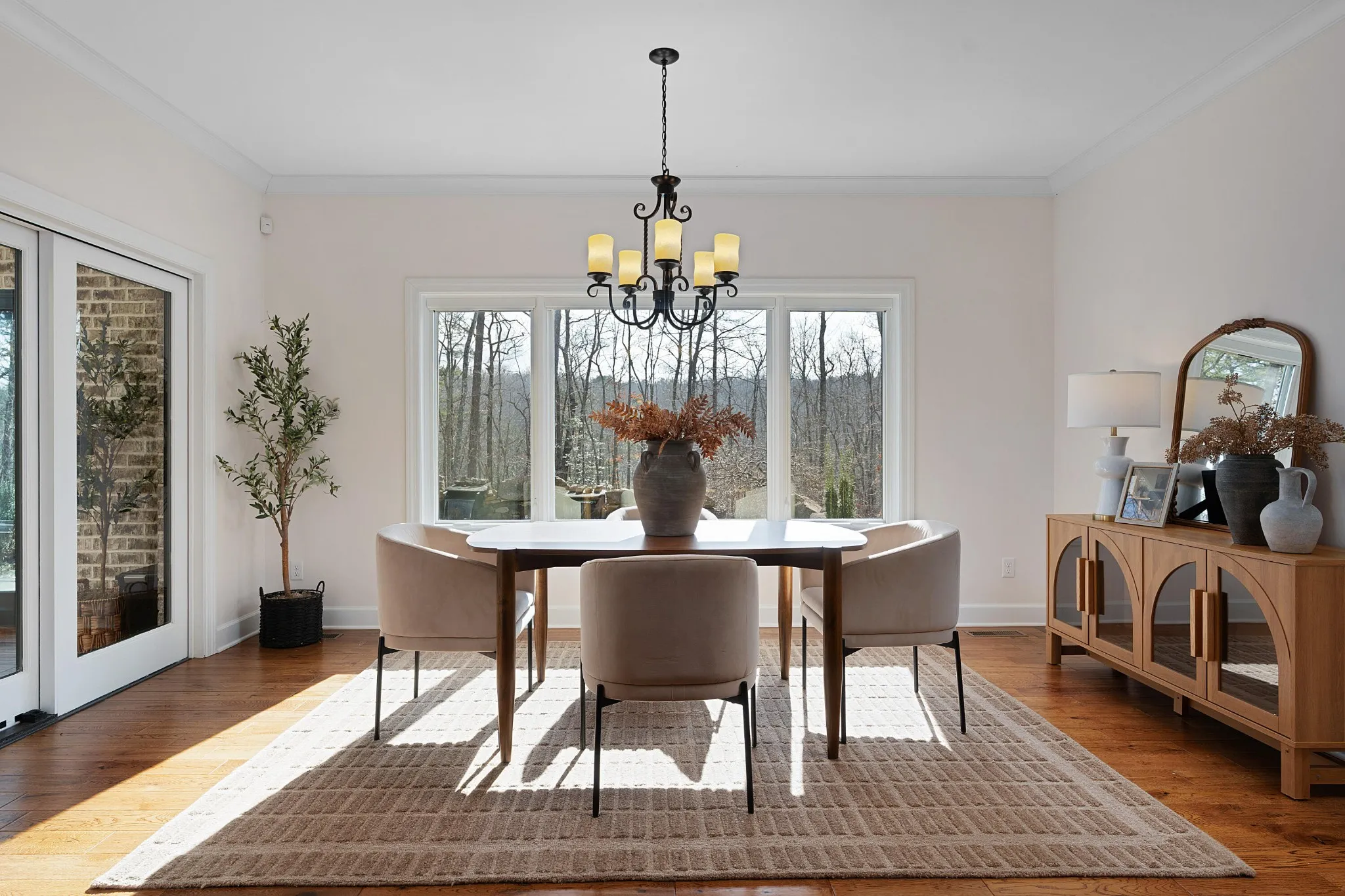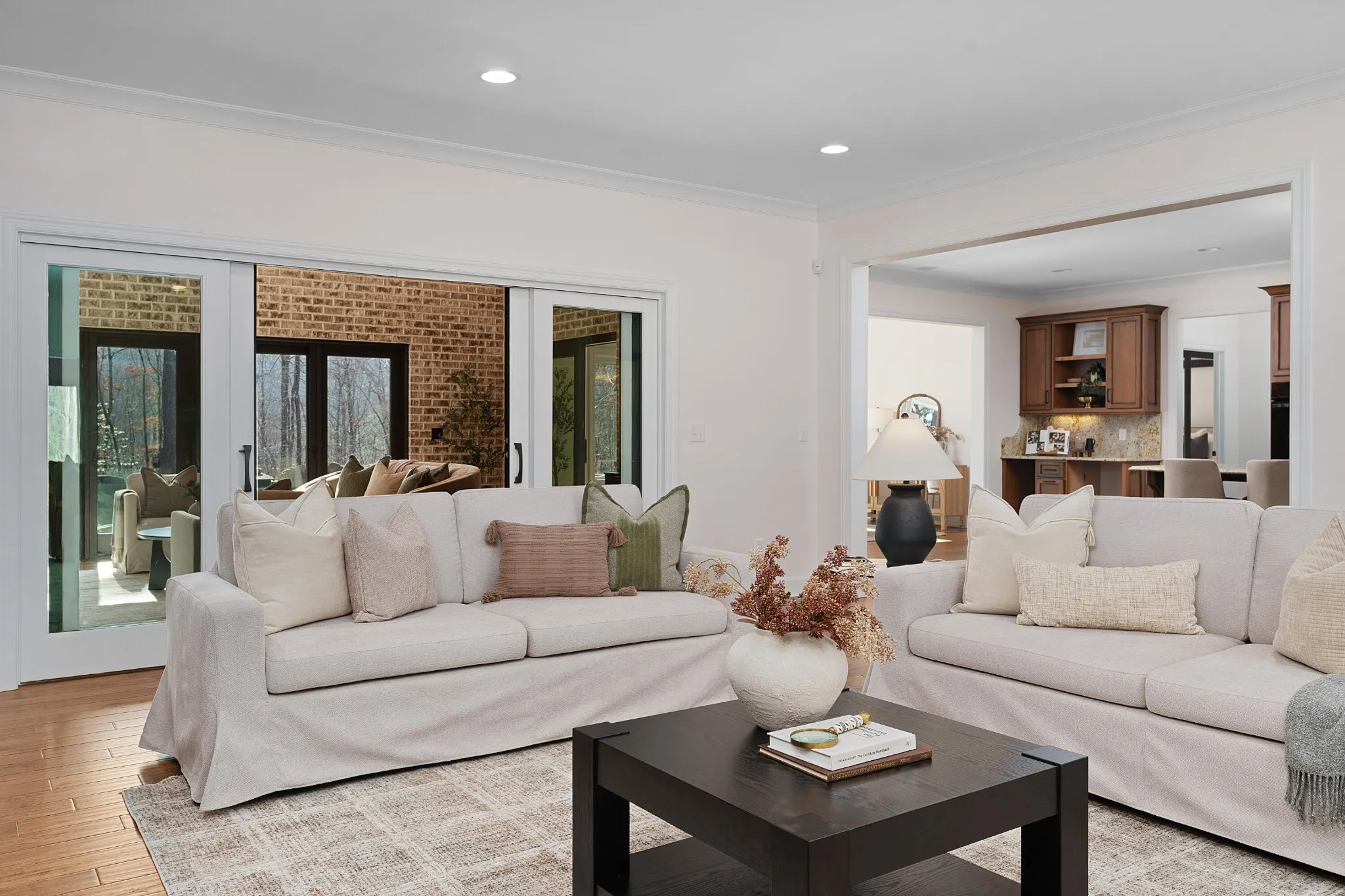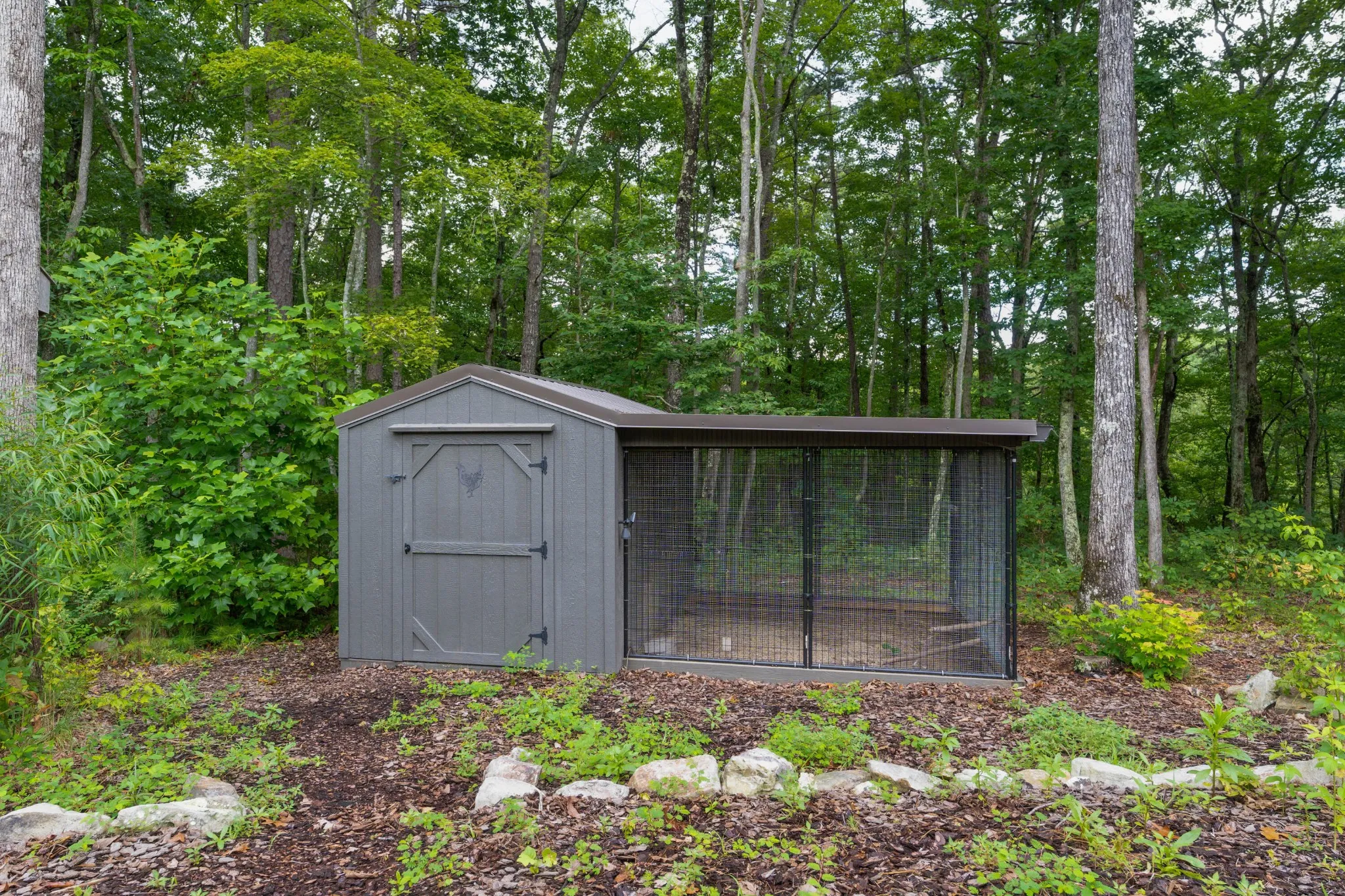 All brick home with a coveted private setting including a gated entry and an extra lot in the desirable Grandview neighborhood on Signal Mountain. This one-level 3 bedroom, 2.5 bath home with a 3-bay garage was built in 2019 and boasts premium finishes and a fantastic floor plan for both entertaining and everyday living and is positioned on a 5.11+/- acre lot. The second lot is wooded and provides an additional 5.44 +/- acres for a total of 10.55 +/- acres. Soil testing has just been completed – build a second house, keep it natural for the privacy or add additional green space for kids or pets – you choose! This custom home offers so many desirable features, including tall ceilings, hardwoods and crown molding throughout, recessed and decorative lighting, clad windows with retractable screens, granite countertops, custom cabinetry, convenient closet systems, central vacuum, whole house water filtration system, a generator, and wonderful outdoor features such as a Koi pond with waterfalls, a wonderful spot for your firepit and outdoor seating area, a green house, a chicken house/coop and professional landscaping. Your tour begins with entry to the foyer via beautiful metal and glass front doors. The foyer opens to a spacious great room with a stone, wood burning fireplace with a gas starter and built-ins on either side. The formal dining room is just down the hall, and it has access to the office which can be closed off via pocket doors. Sliding interior doors lead to a rear family room with a vaulted ceiling, brick walls and a woodburning stove. This room overlooks the water feature and is also accessible from the breakfast room. The breakfast room is light-filled and opens to the gourmet kitchen with an oversized center island, granite countertops and backsplash, soft close and pull-out drawers, drawers, under-cabinet lighting, gas cooktop and convection double wall ovens, a pantry and a built-in beverage center.