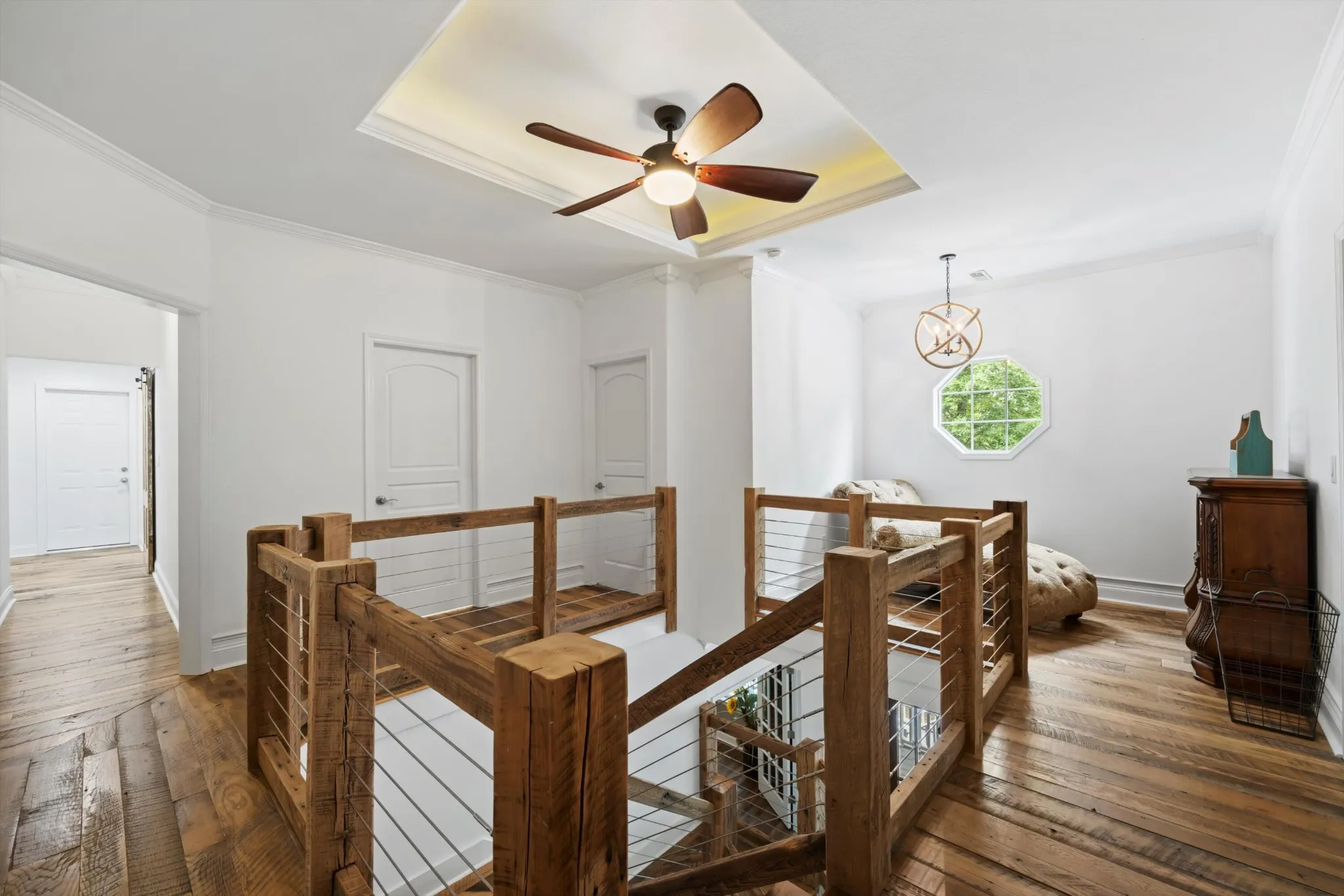 Exquisite custom estate nestled on 3.59 tranquil acres within a serene neighborhood offering exclusive riding trails for horses and ATVs. This elegant 5-bedroom, 3.5-bath residence spans 4,133 sq ft and showcases stunning reclaimed hardwood floors and bespoke finishes throughout. The gourmet chef’s kitchen features dual refrigerators and an expansive layout perfect for sophisticated entertaining. A fully appointed mother-in-law suite provides refined multigenerational living, complemented by dual laundry rooms on each level for ultimate convenience. Abundant storage includes a remarkable 1,200 sq ft walkout attic space with endless potential for a luxurious finished living area. Experience unparalleled privacy, timeless craftsmanship, and exceptional versatility in this rare and distinguished offering.