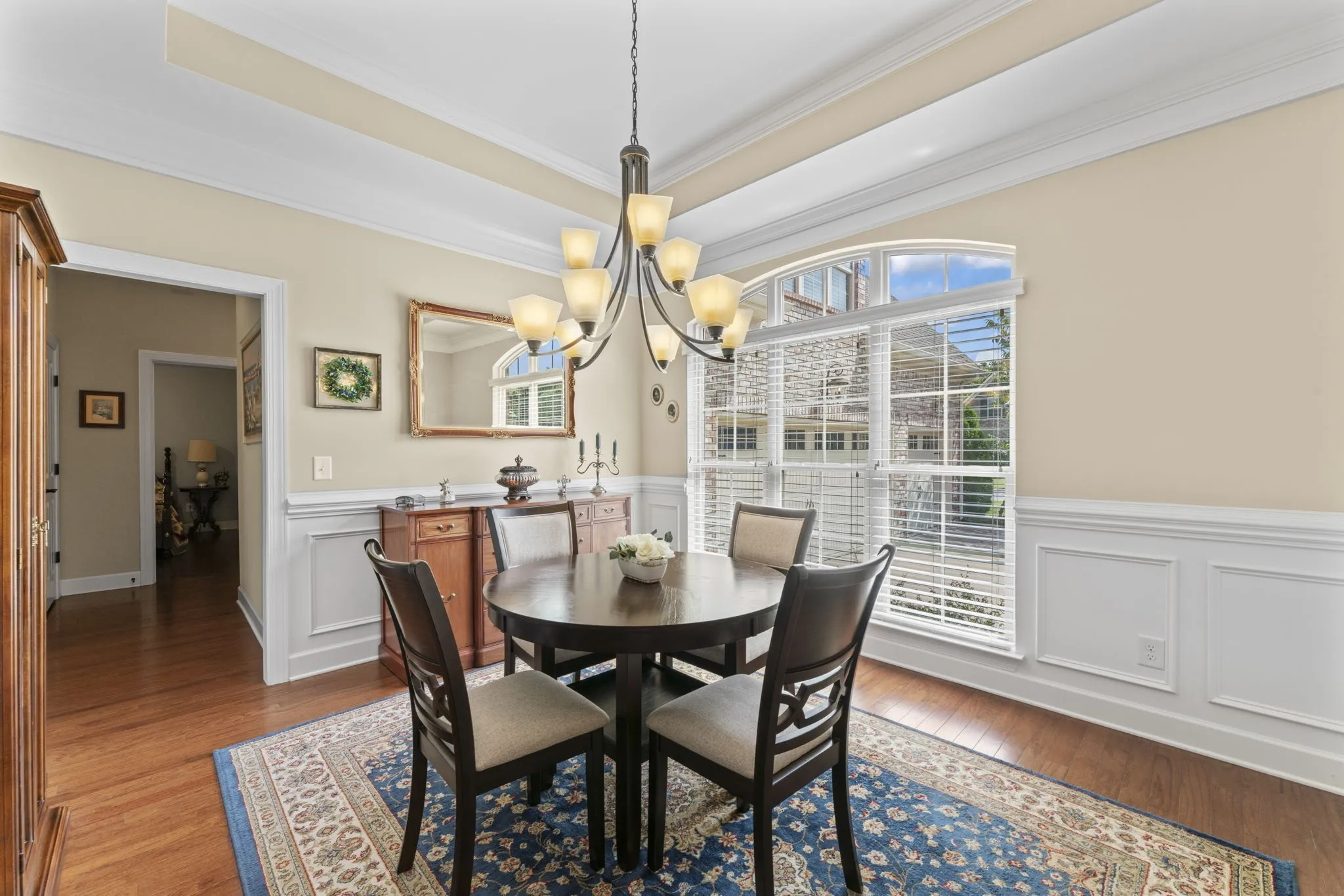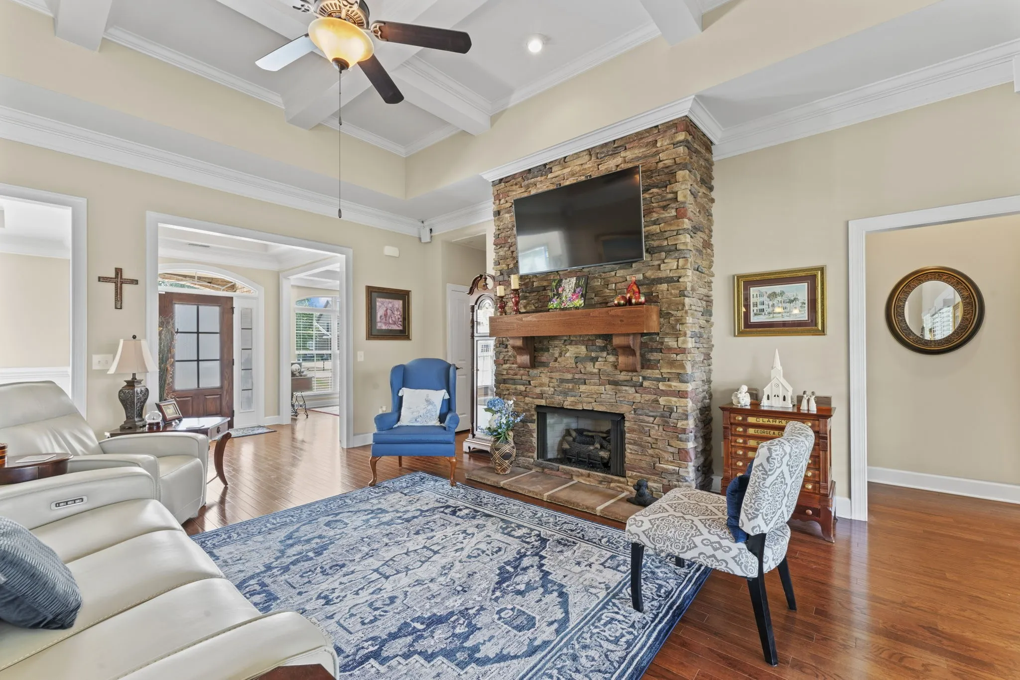 This stunning all-brick home offers space, style, and smart features throughout. Inside, you’ll find hardwood flooring throughout, coffered ceilings in the office and living room, while the formal dining room has a trey ceiling, plus beadboard accents in both the dining and eat-in kitchen areas for added character. The flexible Rutledge floor plan includes a dedicated office/flex room, formal dining room, and a large bonus room that could serve as a 5th bedroom.