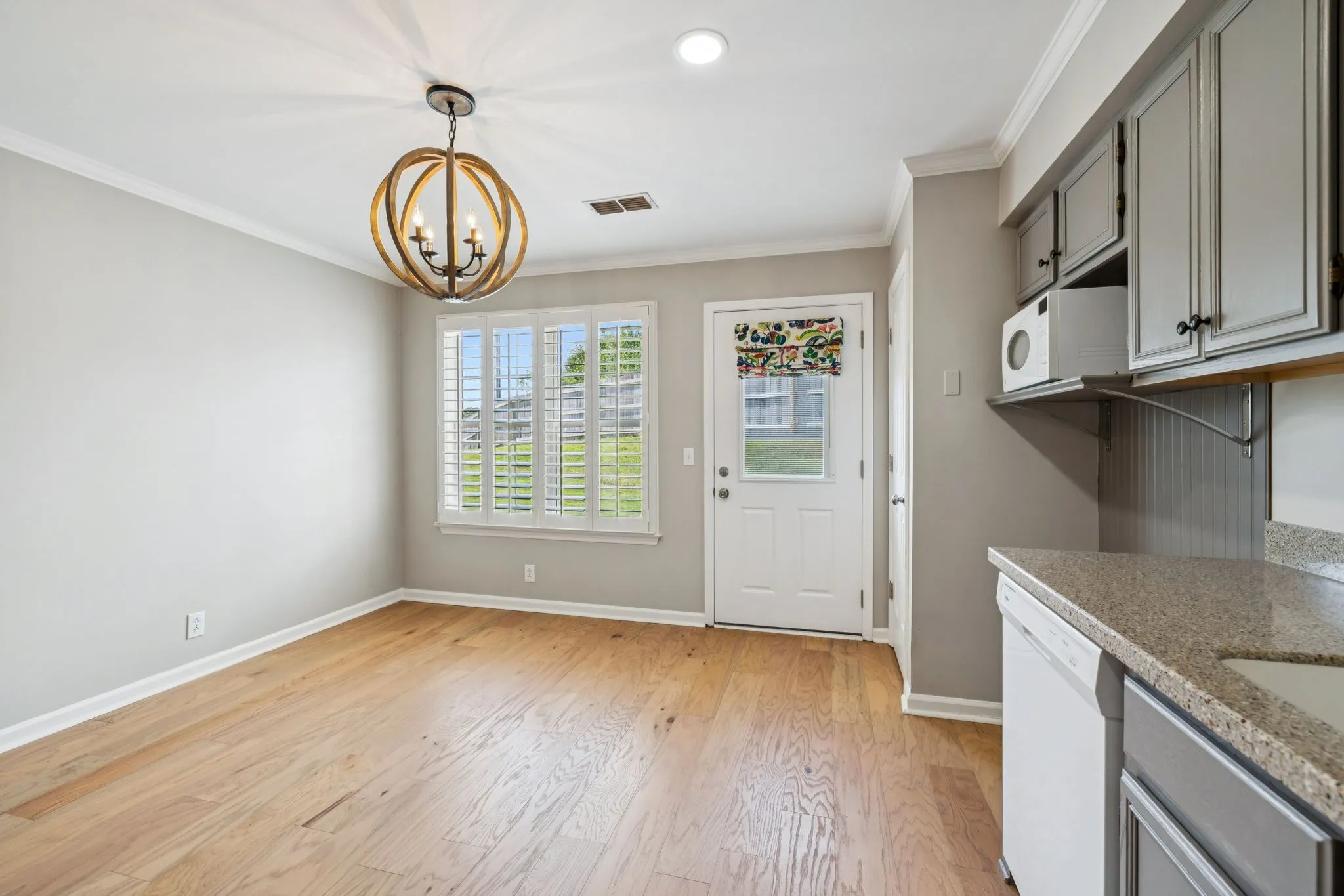 Adorable cottage with tons of charm.This home is conveniently located and offers a large living area, primary bedroom downstairs with remodeled bath, large eat in kitchen with granite countertops , 1 Bedroom suite upstairs with sitting room/nursery and large bath. Plantation shutters,new flooring, carpet, light fixtures and fresh paint throughout. One car garage w/ paneling and shelving. Spacious backyard that could be easily fenced in – nice patio perfect for entertaining.HOA takes care of lawn maintenance.Security system in place. This is a perfect 10!!!
